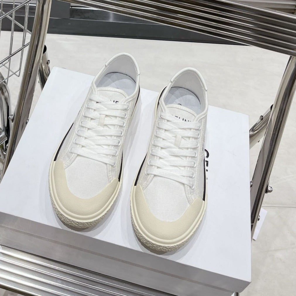 JANE SNEAKERS LOW LACE-UP WITH TRIOMPHE PATCH IN CANVAS AND CALFSKIN WHITE