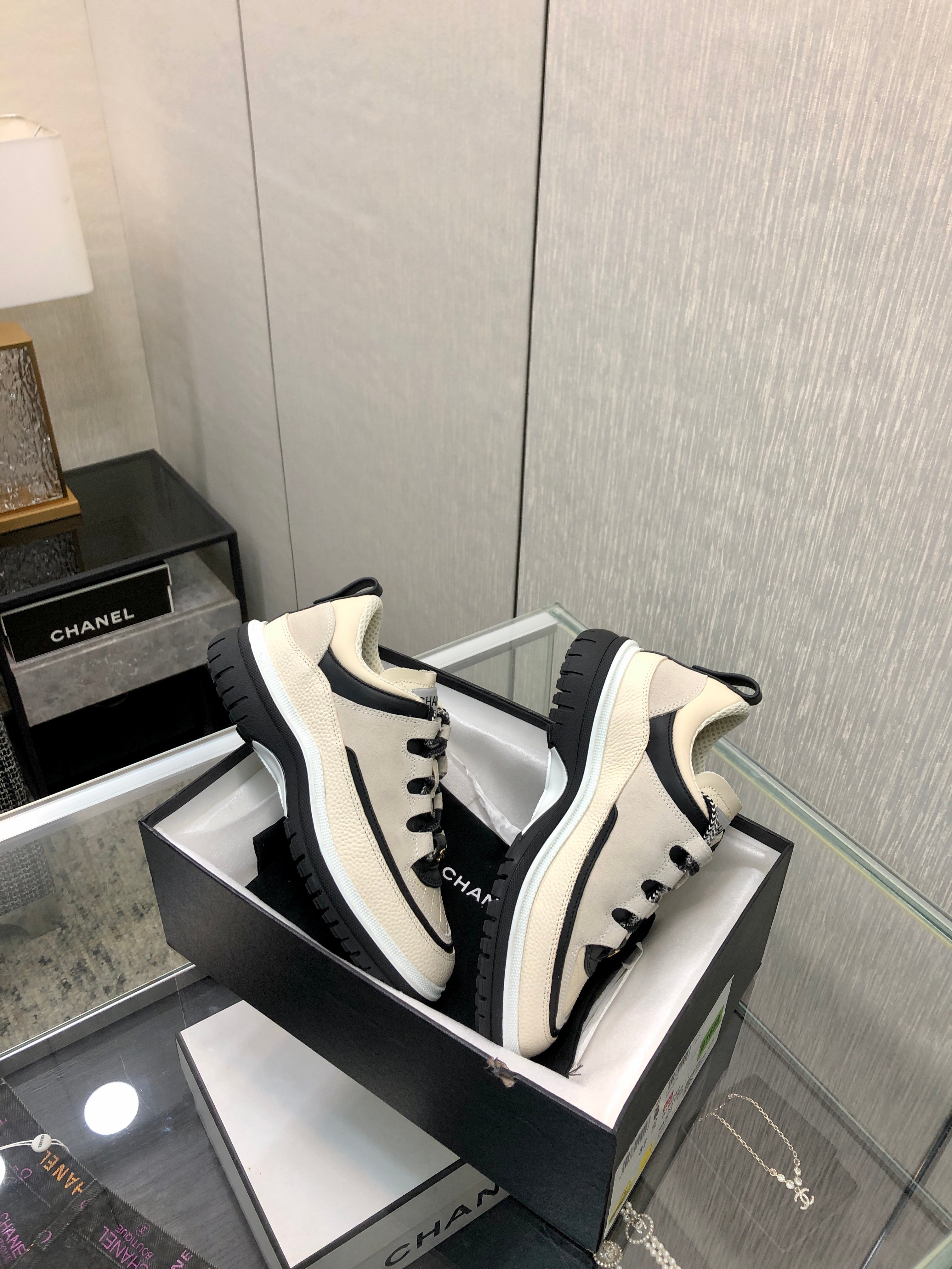 LOW TOP CASUAL SHOES IN BISQUE BEIGE LAMBSKIN AND SUEDE
