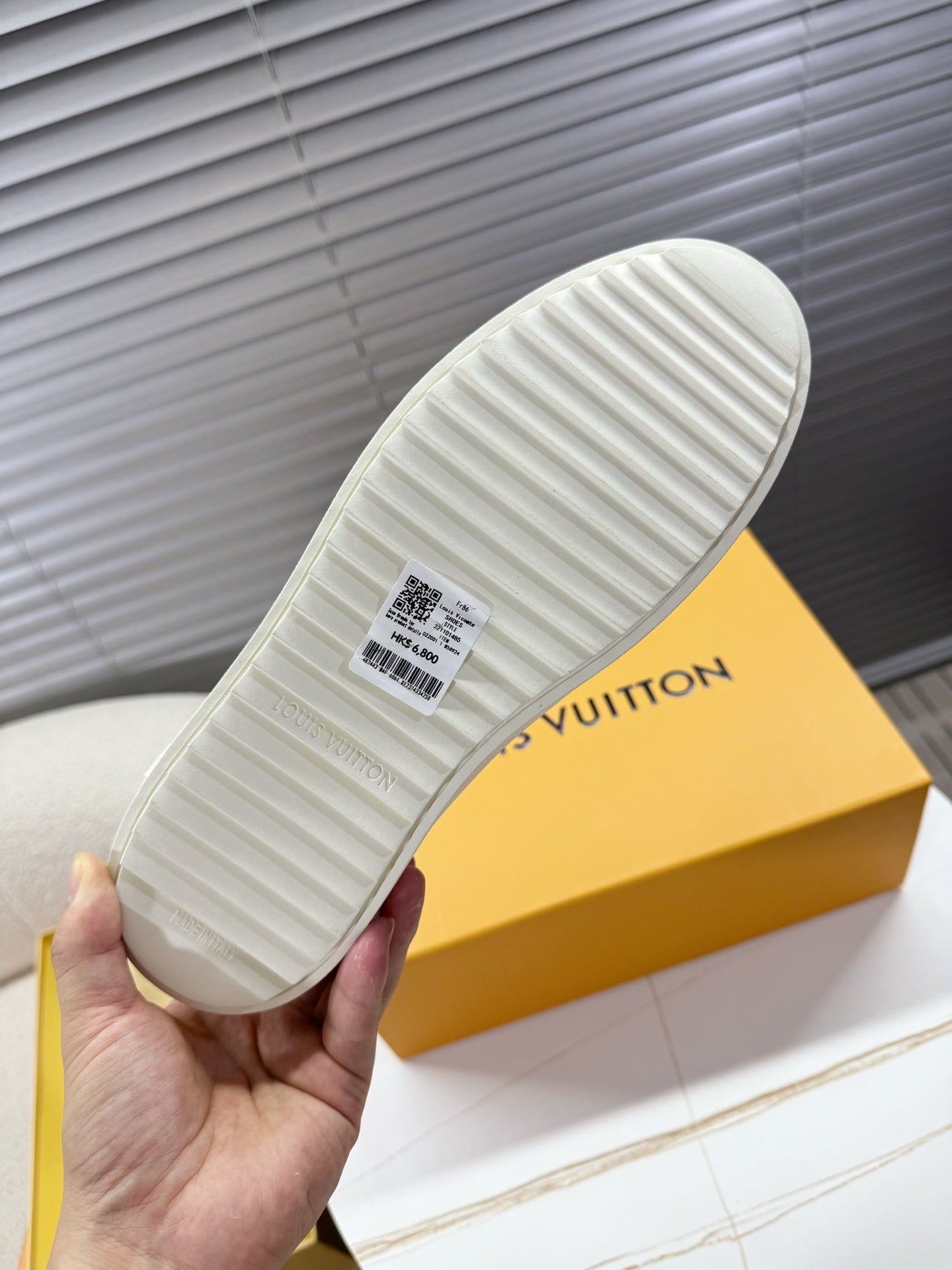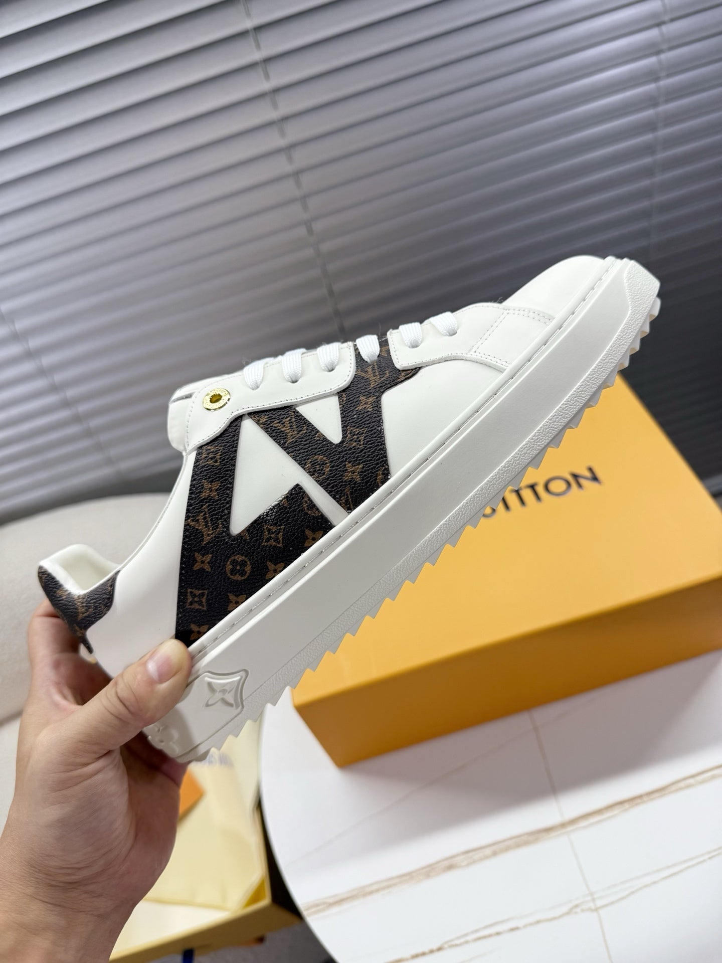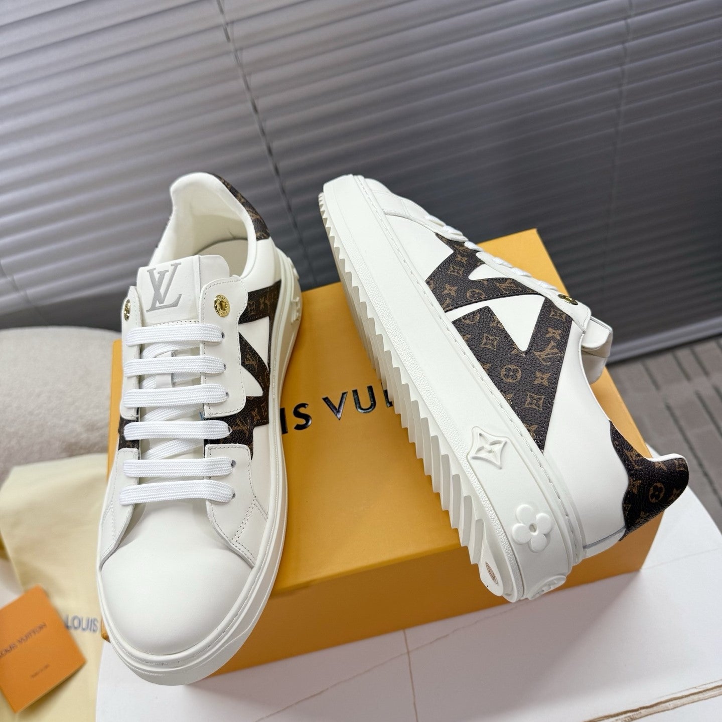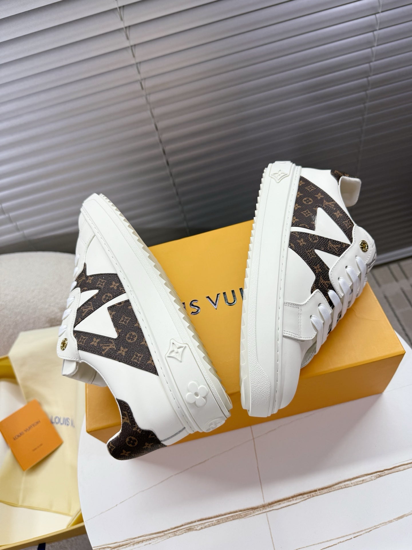 LV 1AIEFF Time Out Sneaker White Cowhide Brown Monogram Canvas 511748