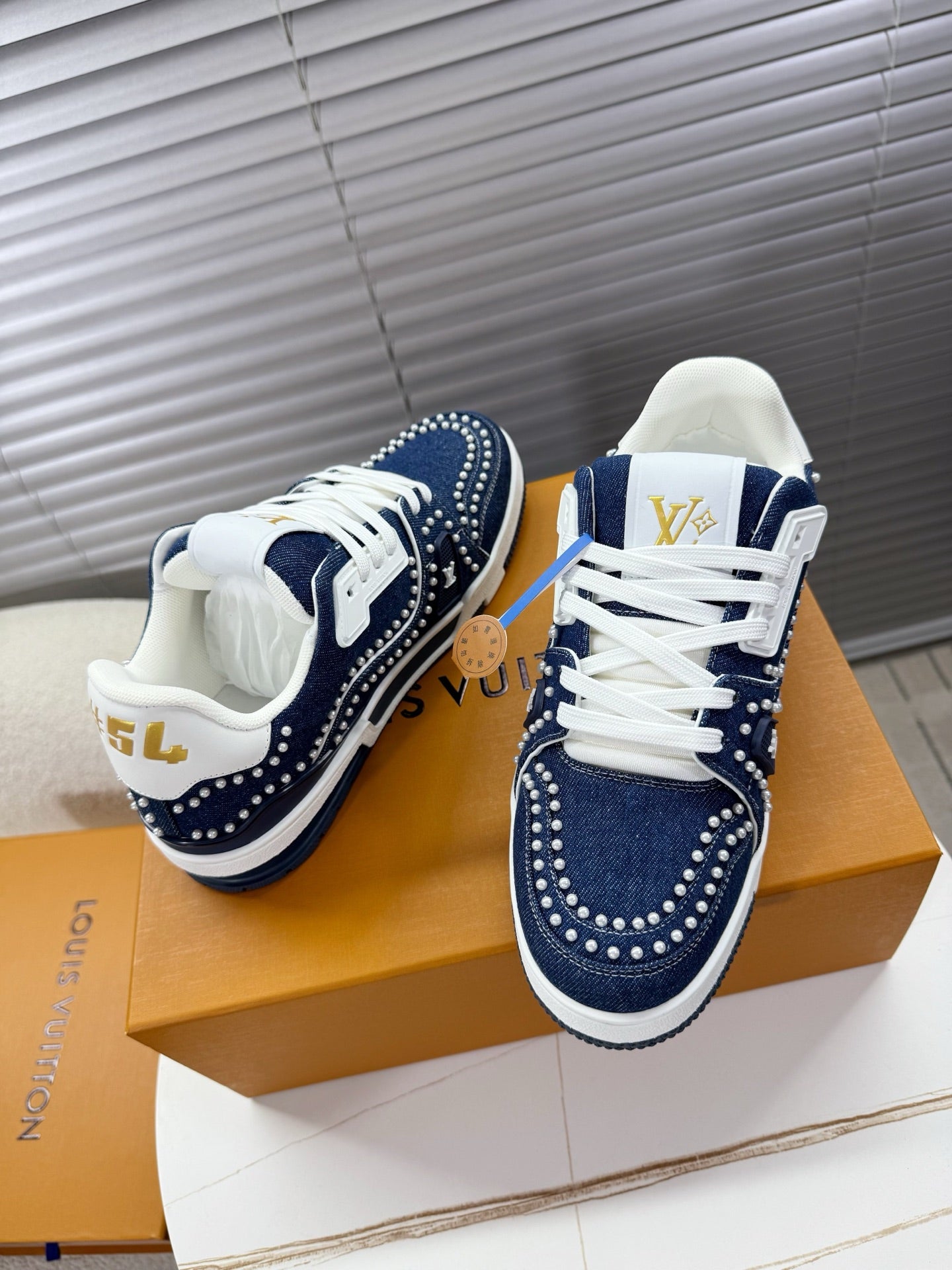 LV 1AJ512 Trainer with Swarovski™ Pearls Indigo Blue Denim 511761