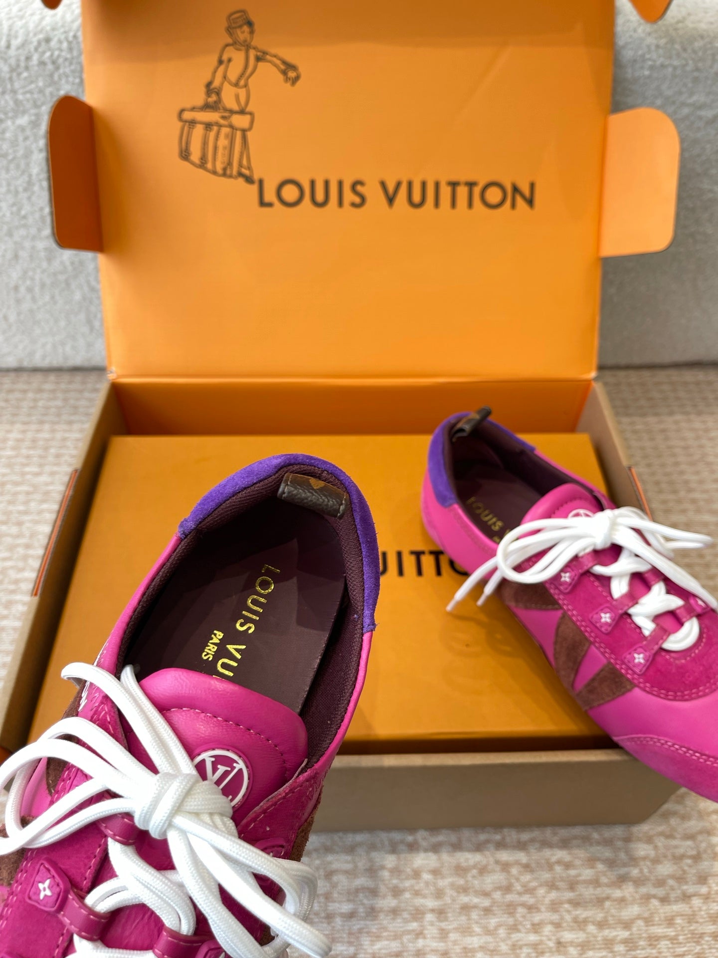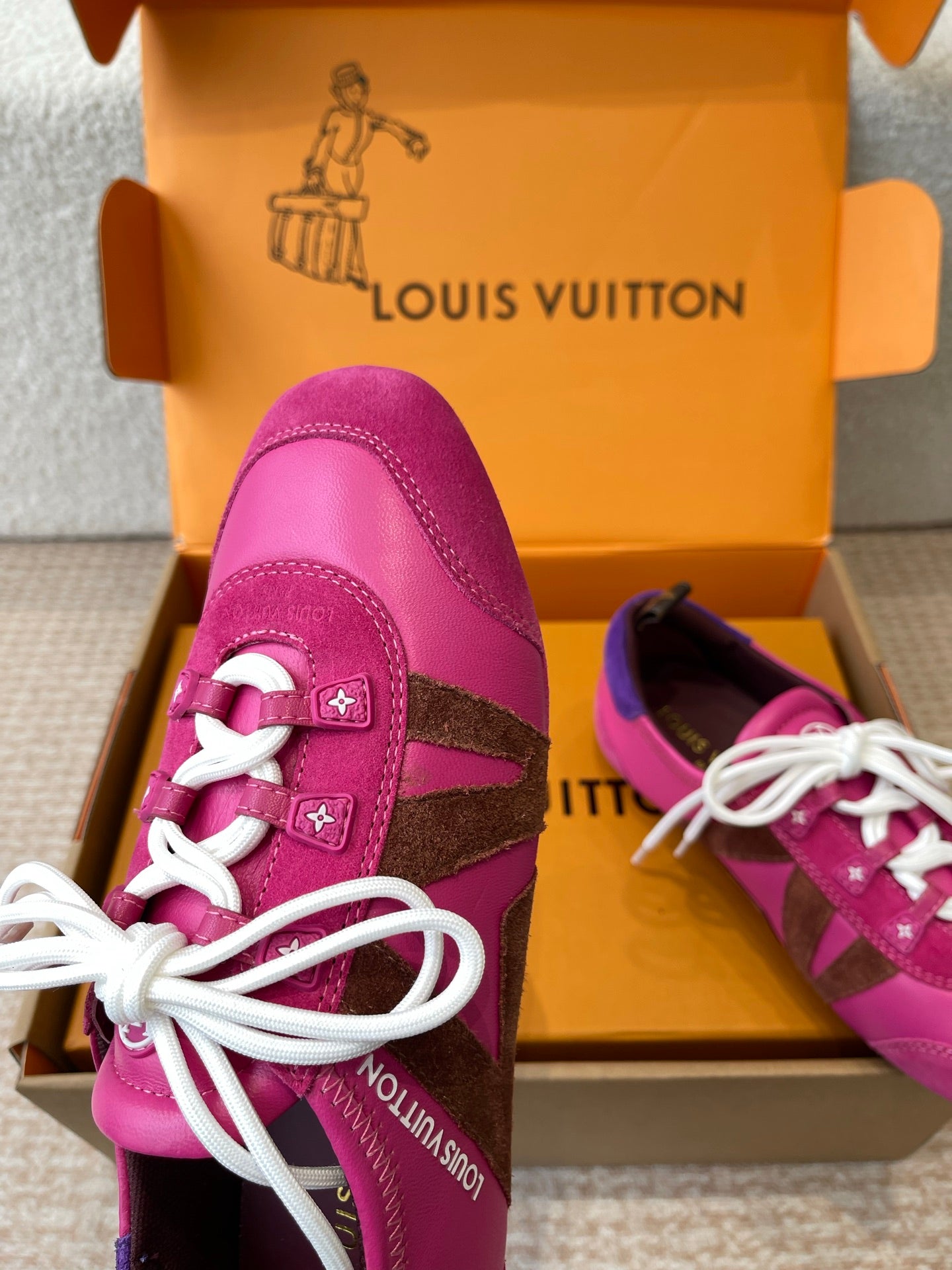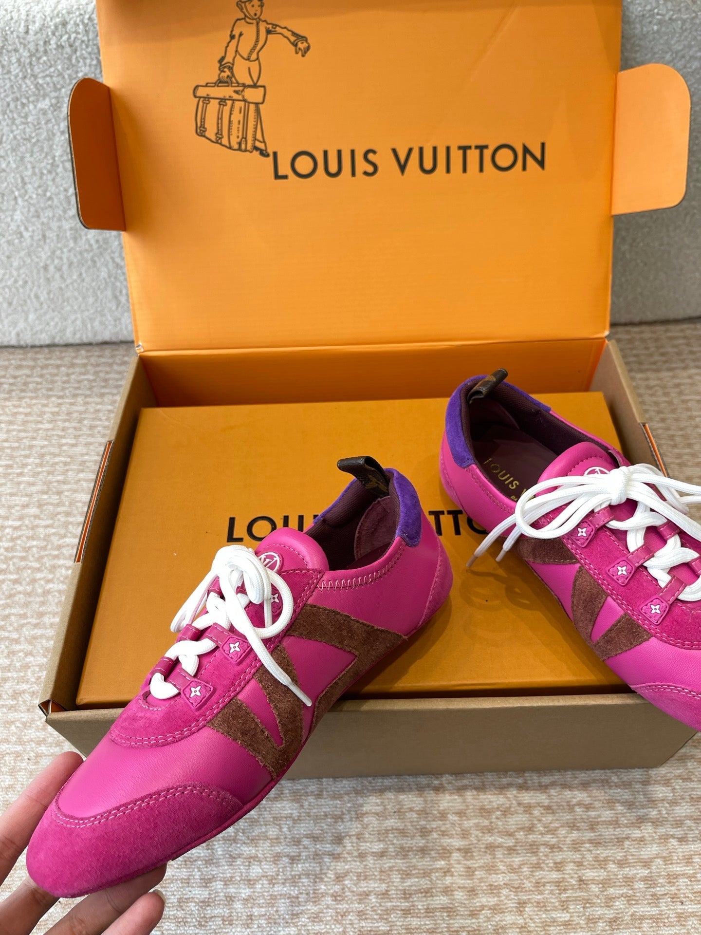 LV Sneakerina Hot Pink Mix Brown Mix Purple Suede Calfskin With Hot Pink Lambskin 298822