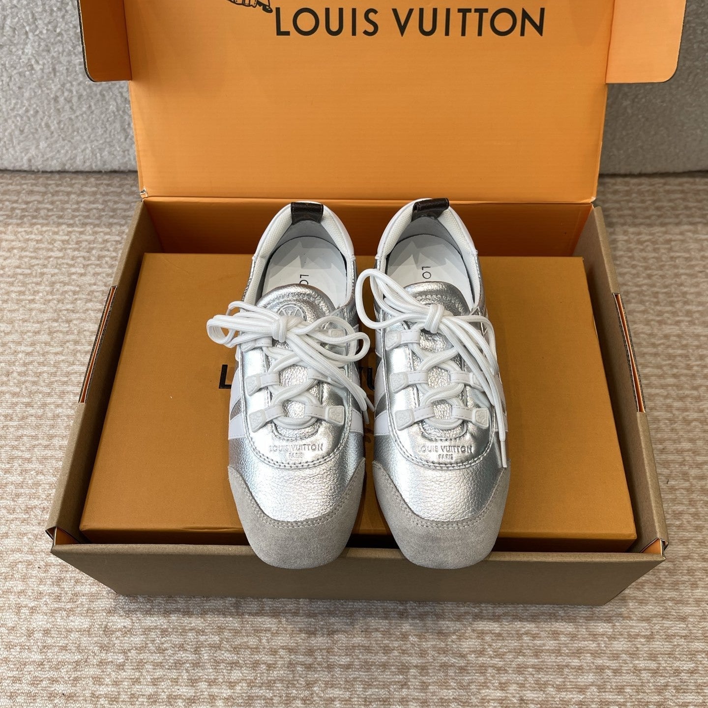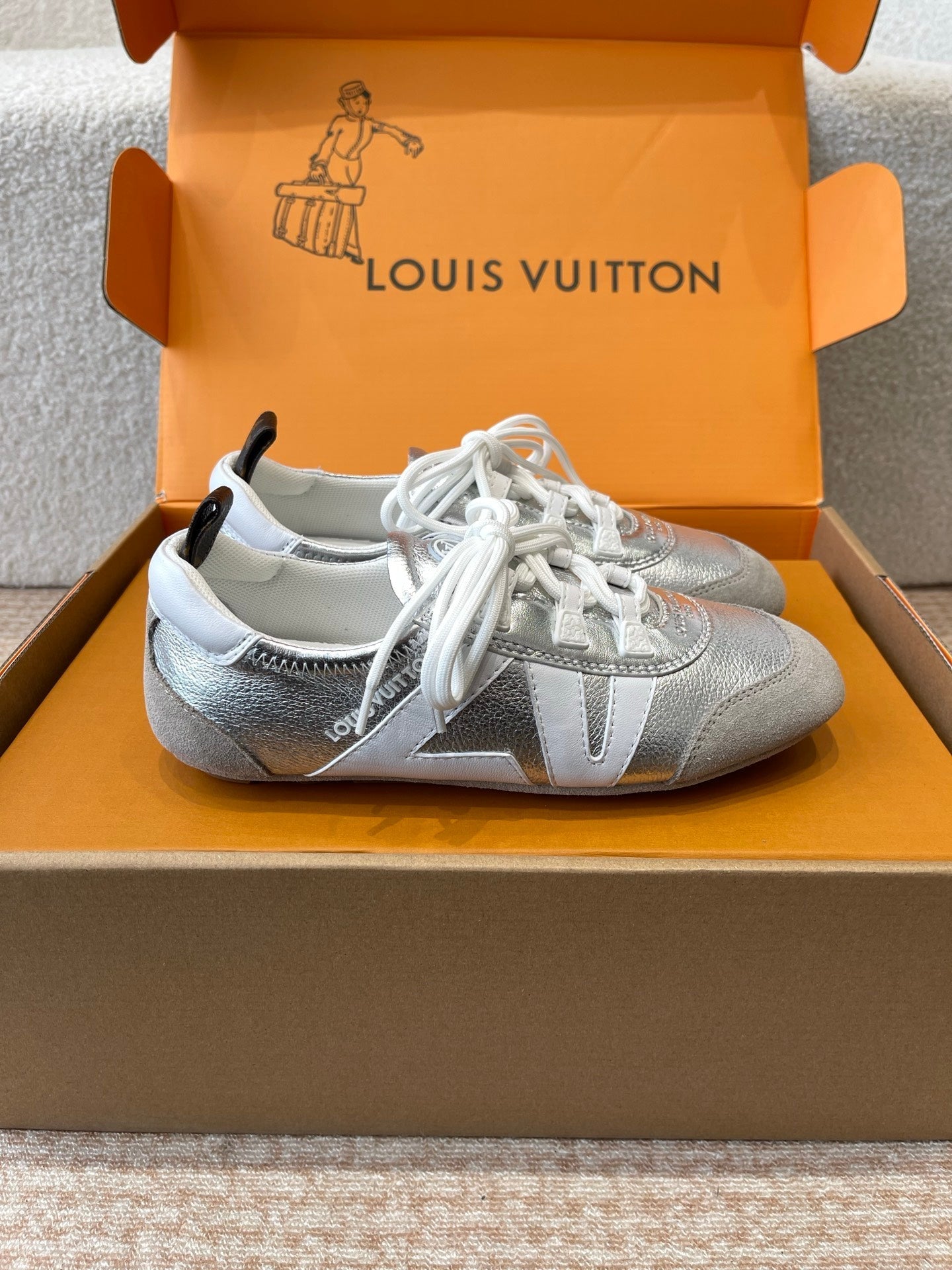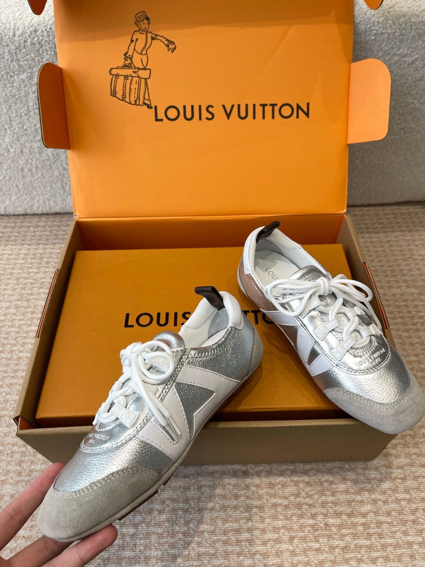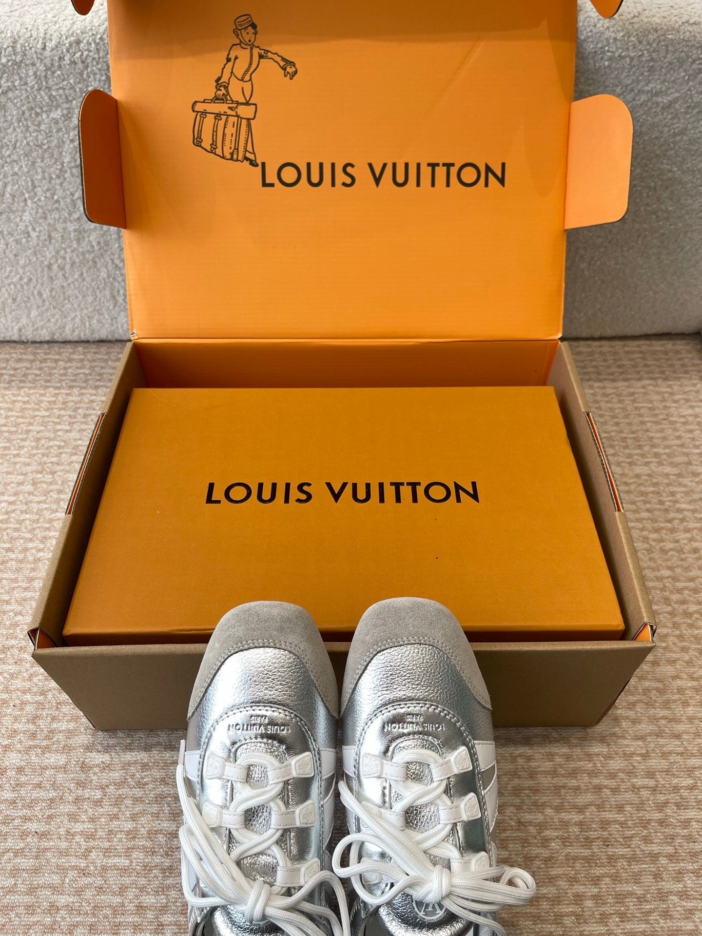 LV Sneakerina Light Brown White Mix Silver Metallic Calfskin With Grey Suede 298825