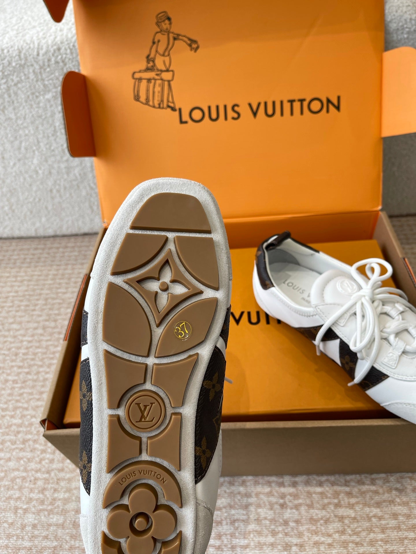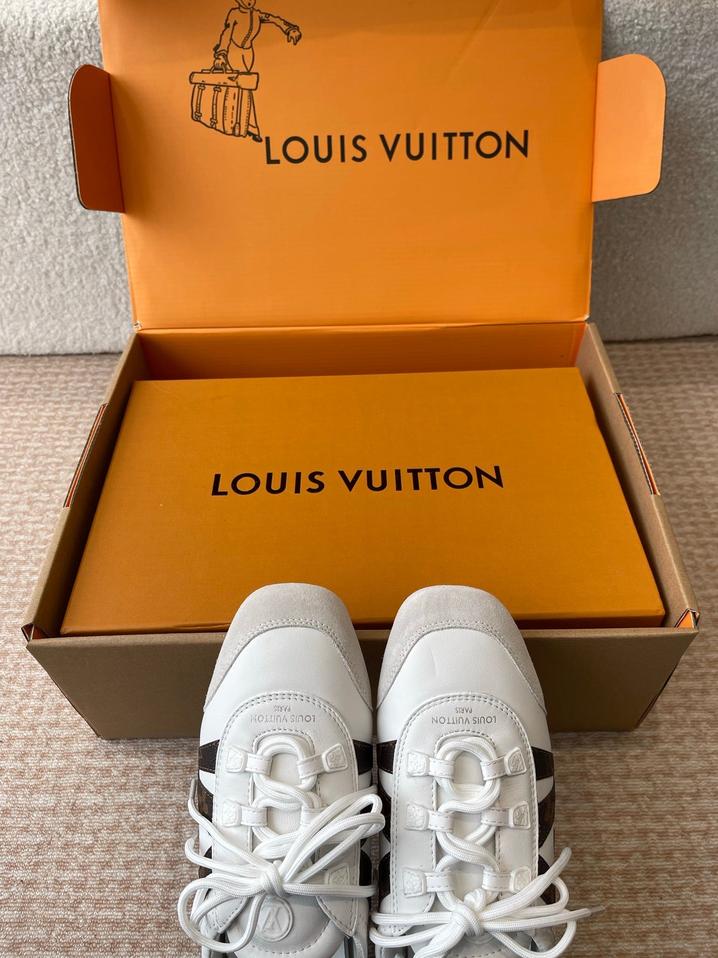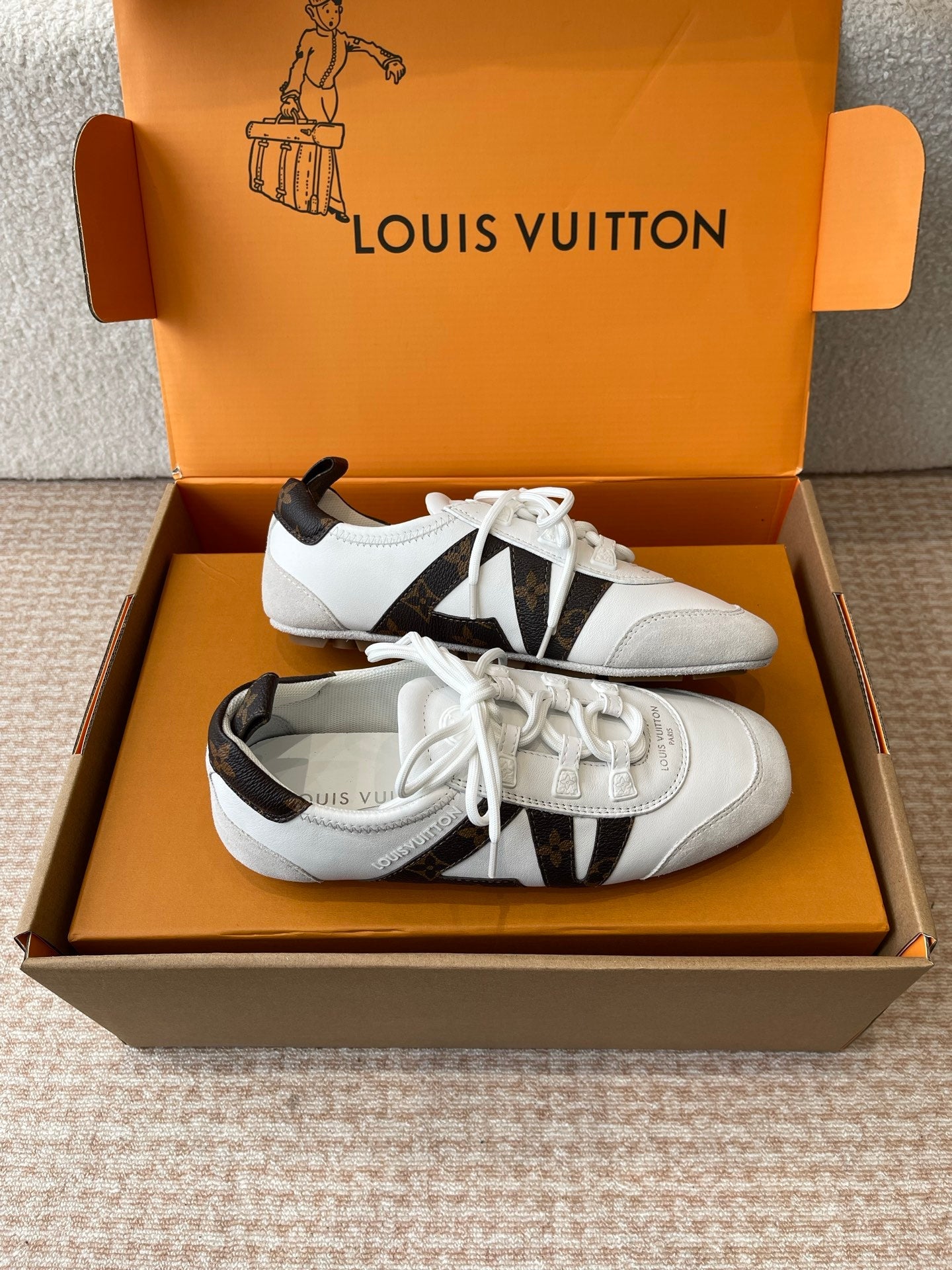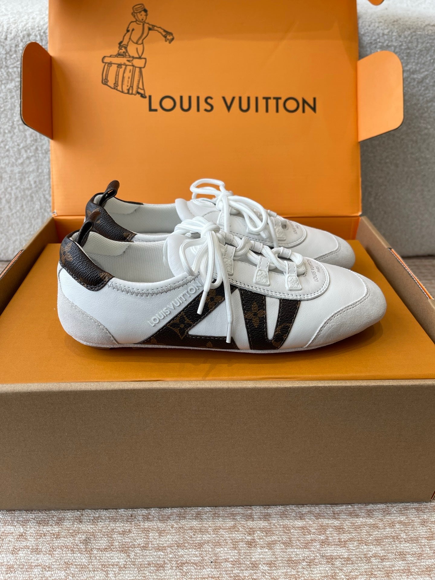 LV Sneakerina White Calfskin With Brown Monogram Canvas 298819