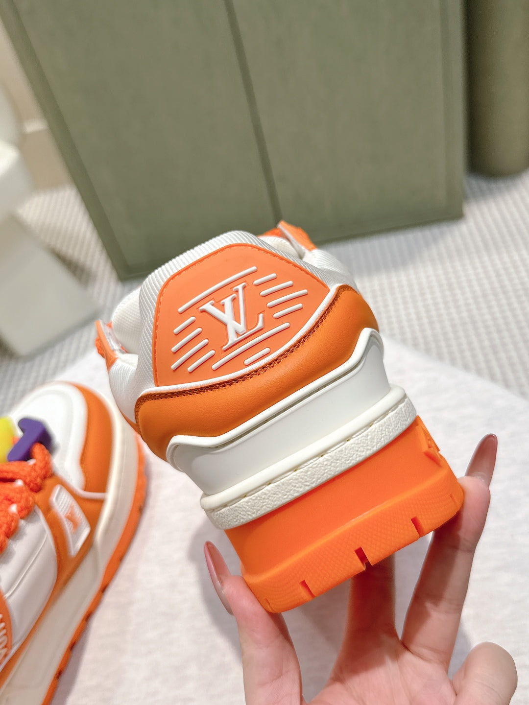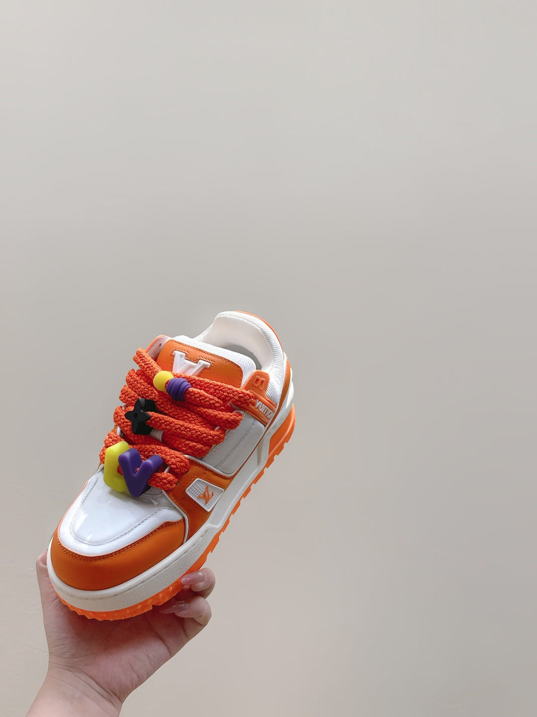 LV Trainer Maxi Sneakers White and Orange Calfskin Mesh 515201