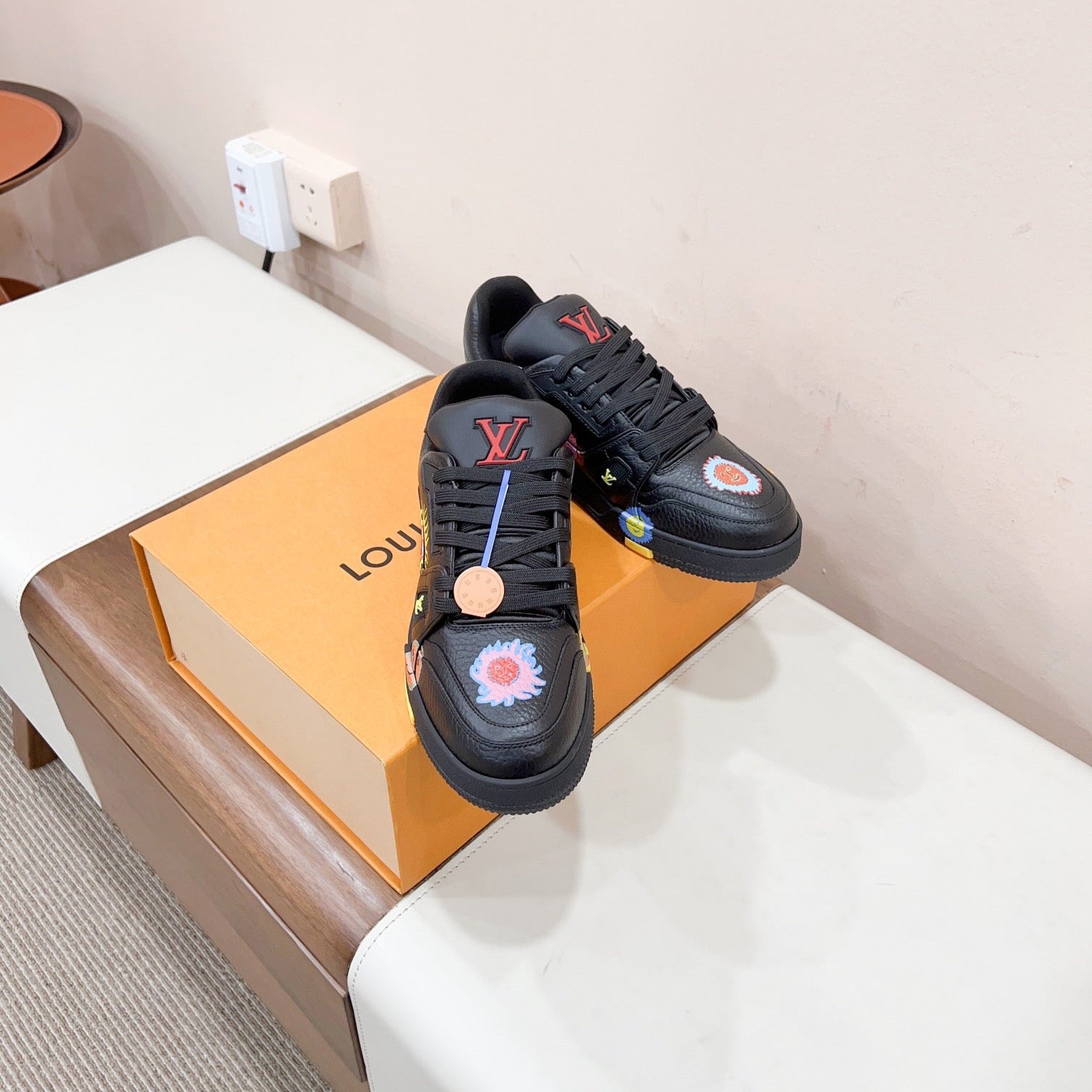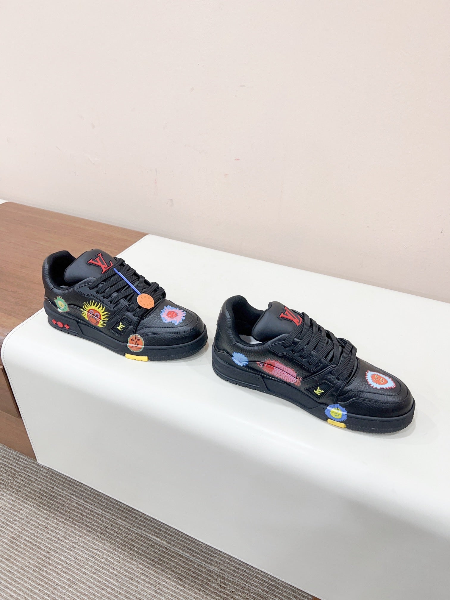 LV YK Trainer Sneakers Black Print Cowhide 492959