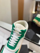 MID-TOP SNEAKERS IN WHITE PERFORATED LAMBSKIN AND GREEN SUEDE