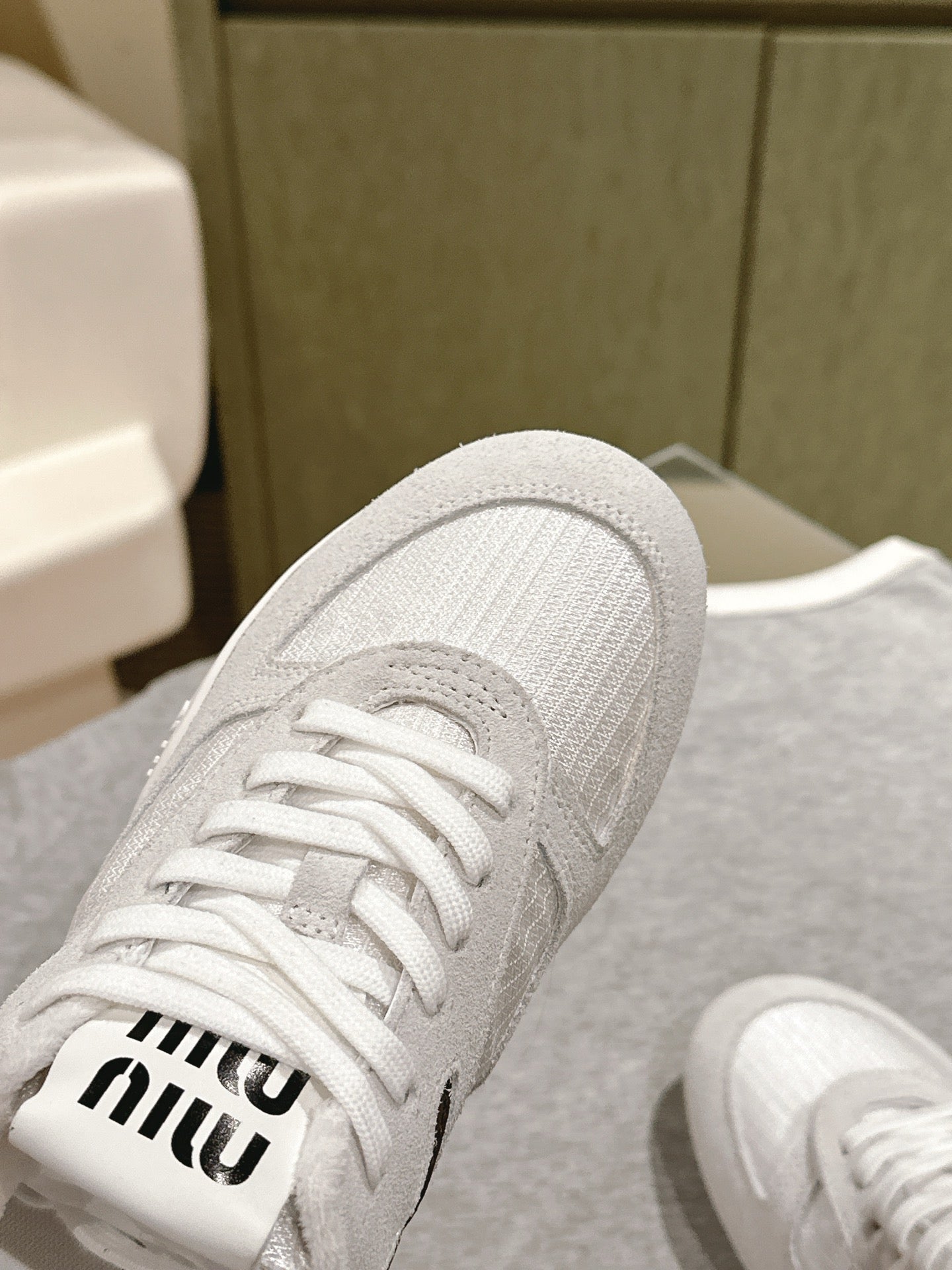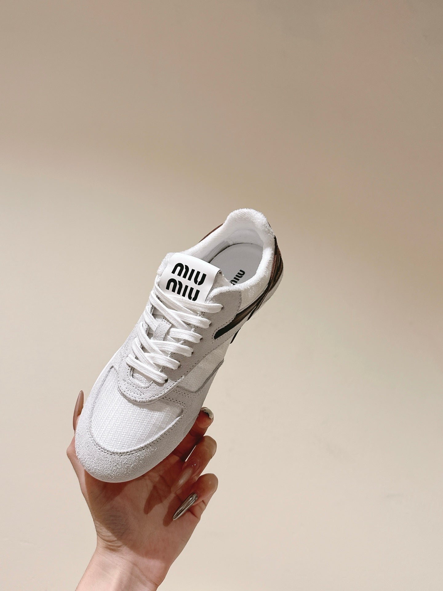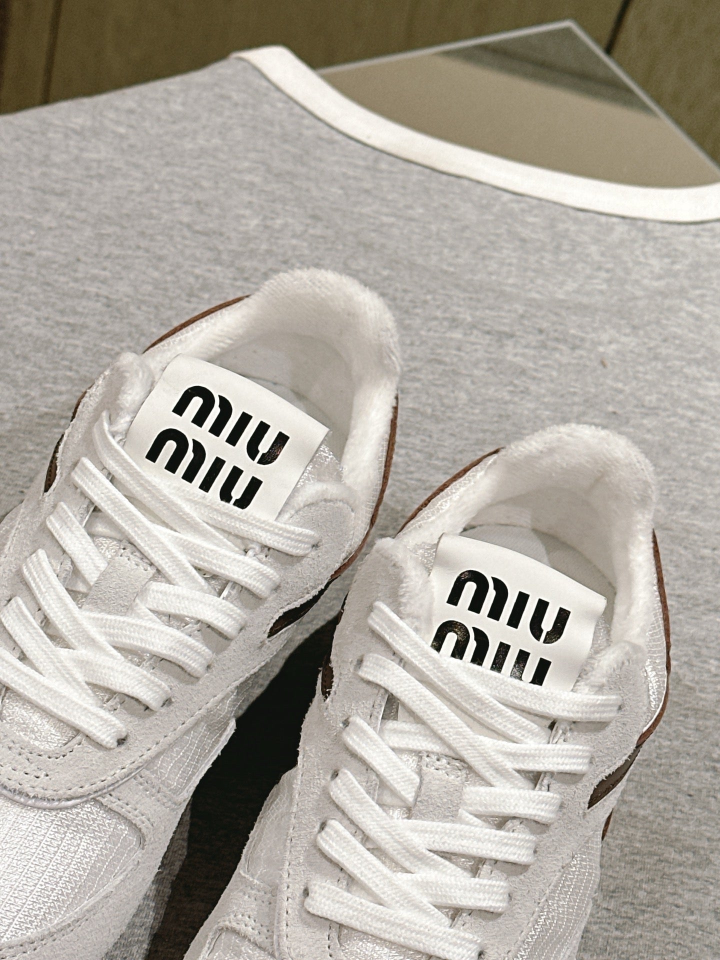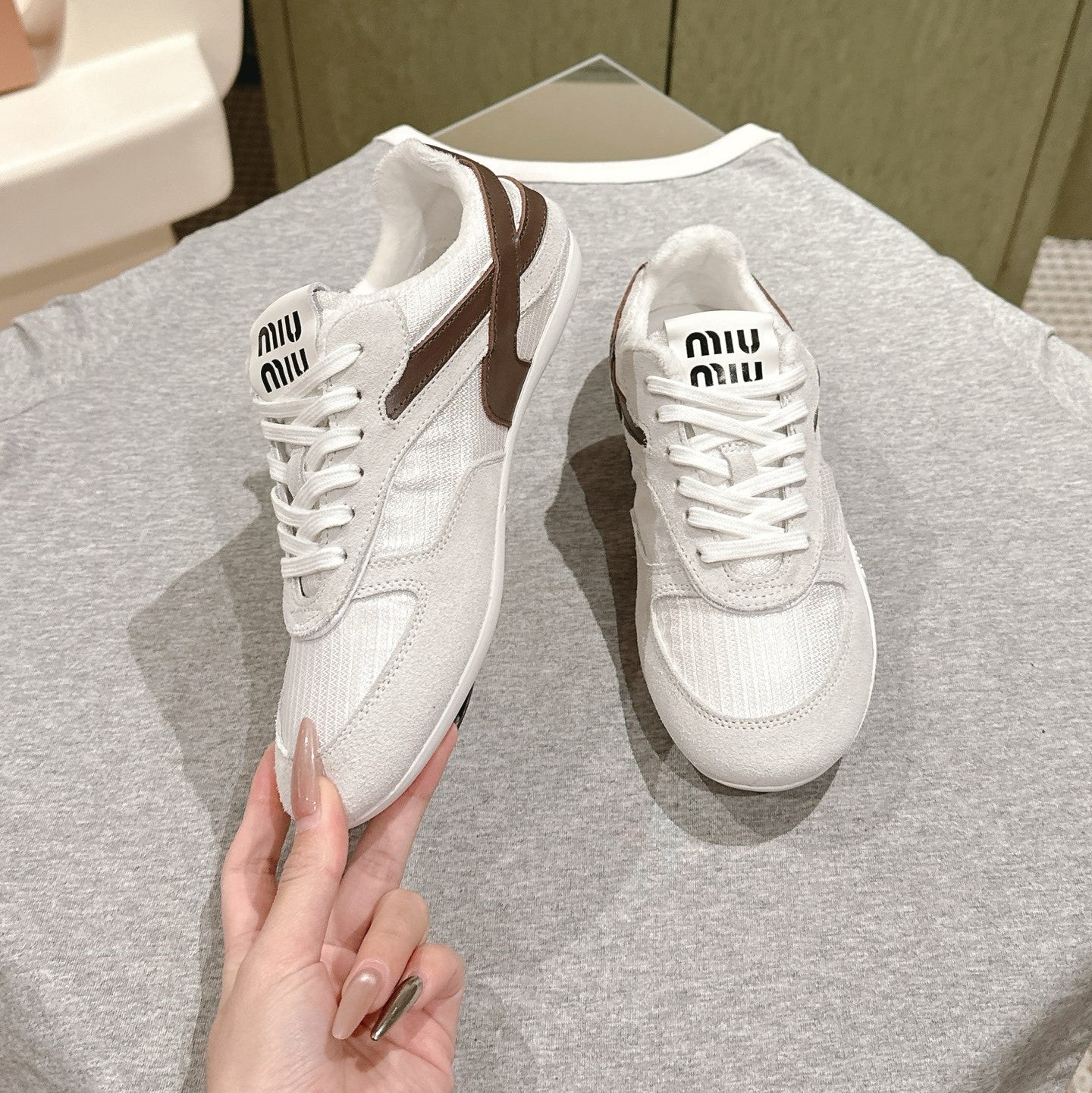 Miu Gymnasium Sneakers Brown White Technical Fabric & Suede 445725