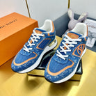 NEO RUN AWAY SNEAKER IN CLASSIC BLUE MONOGRAM DENIM AND ORANGE CALFSKIN