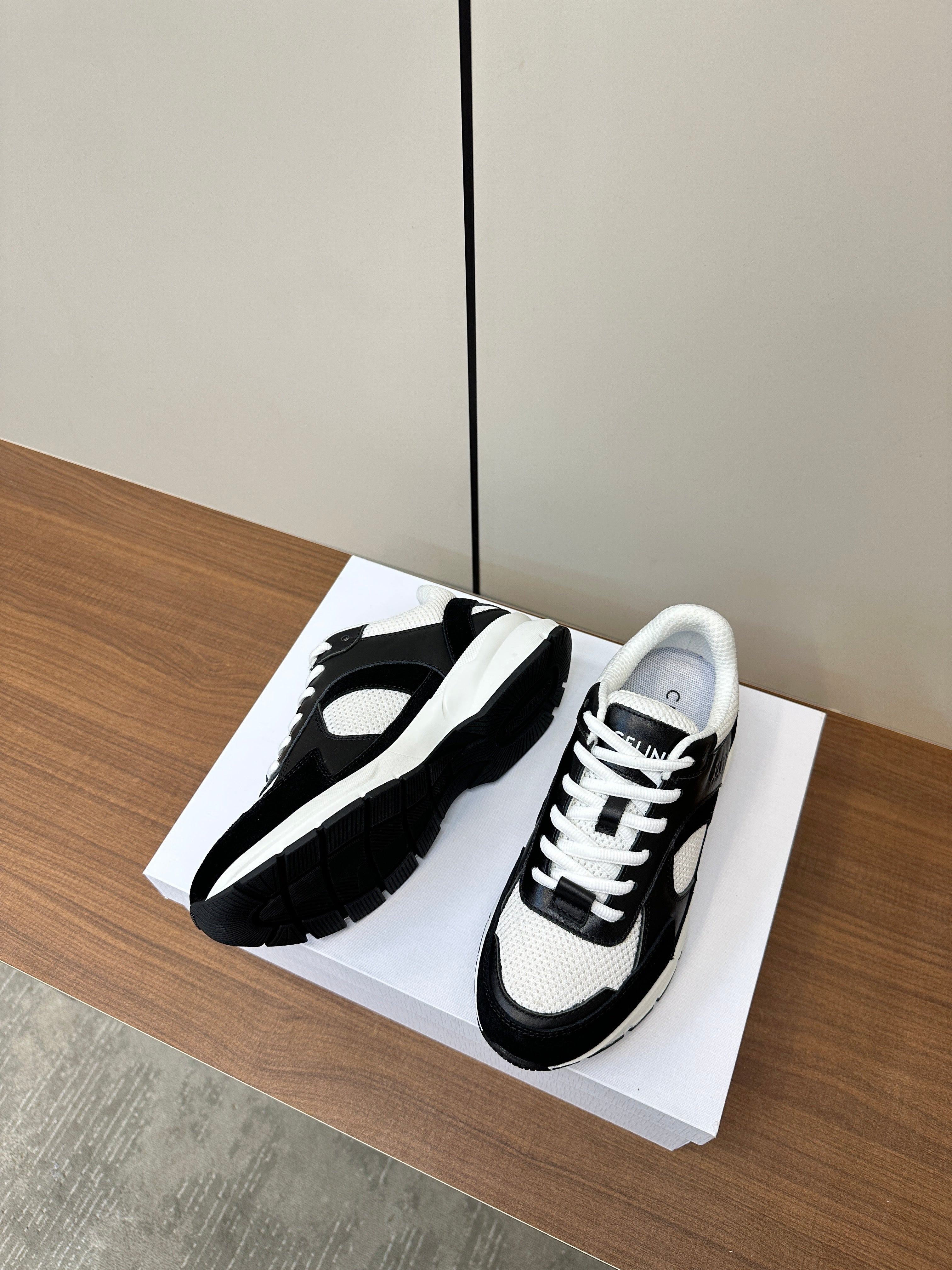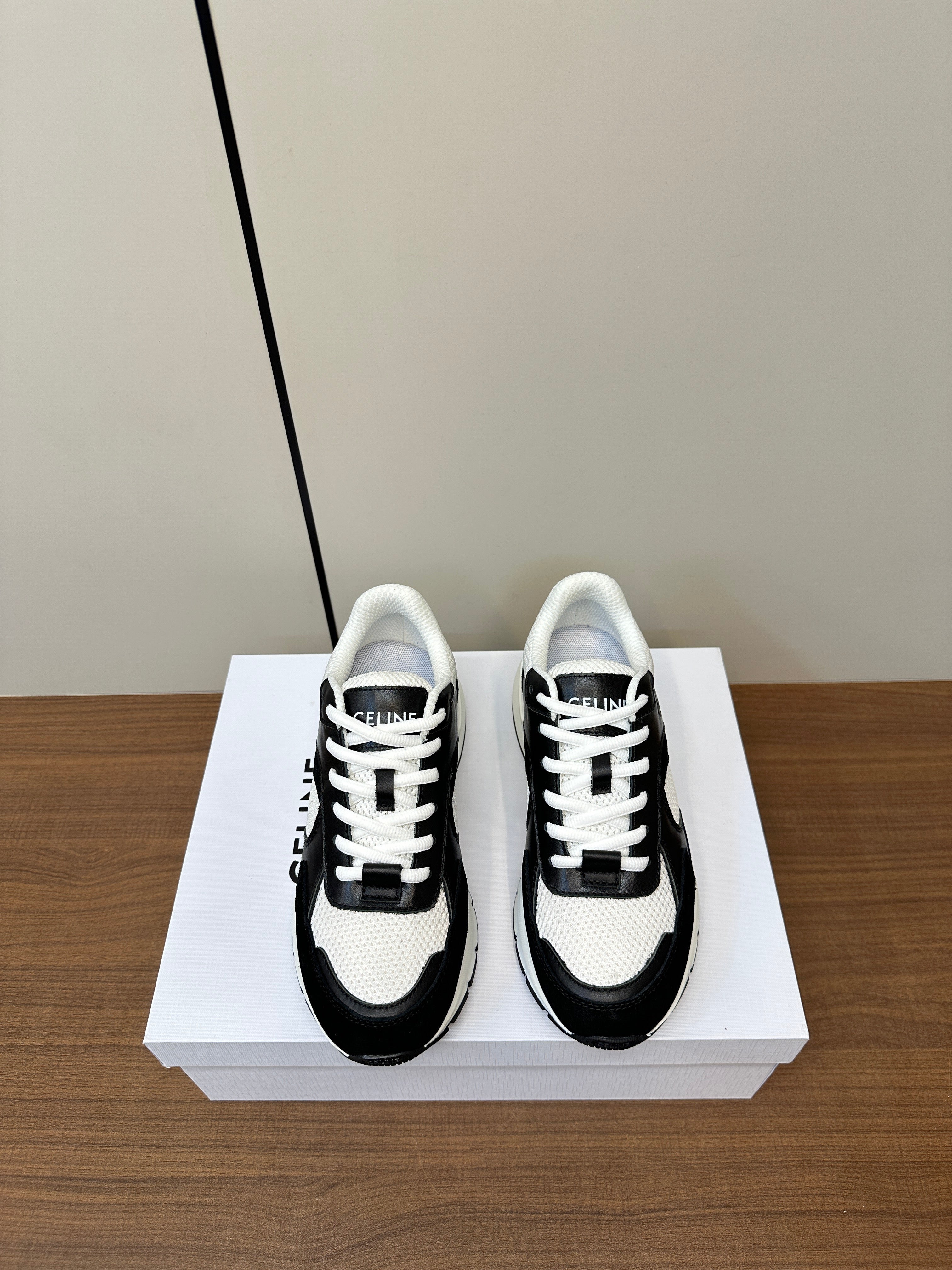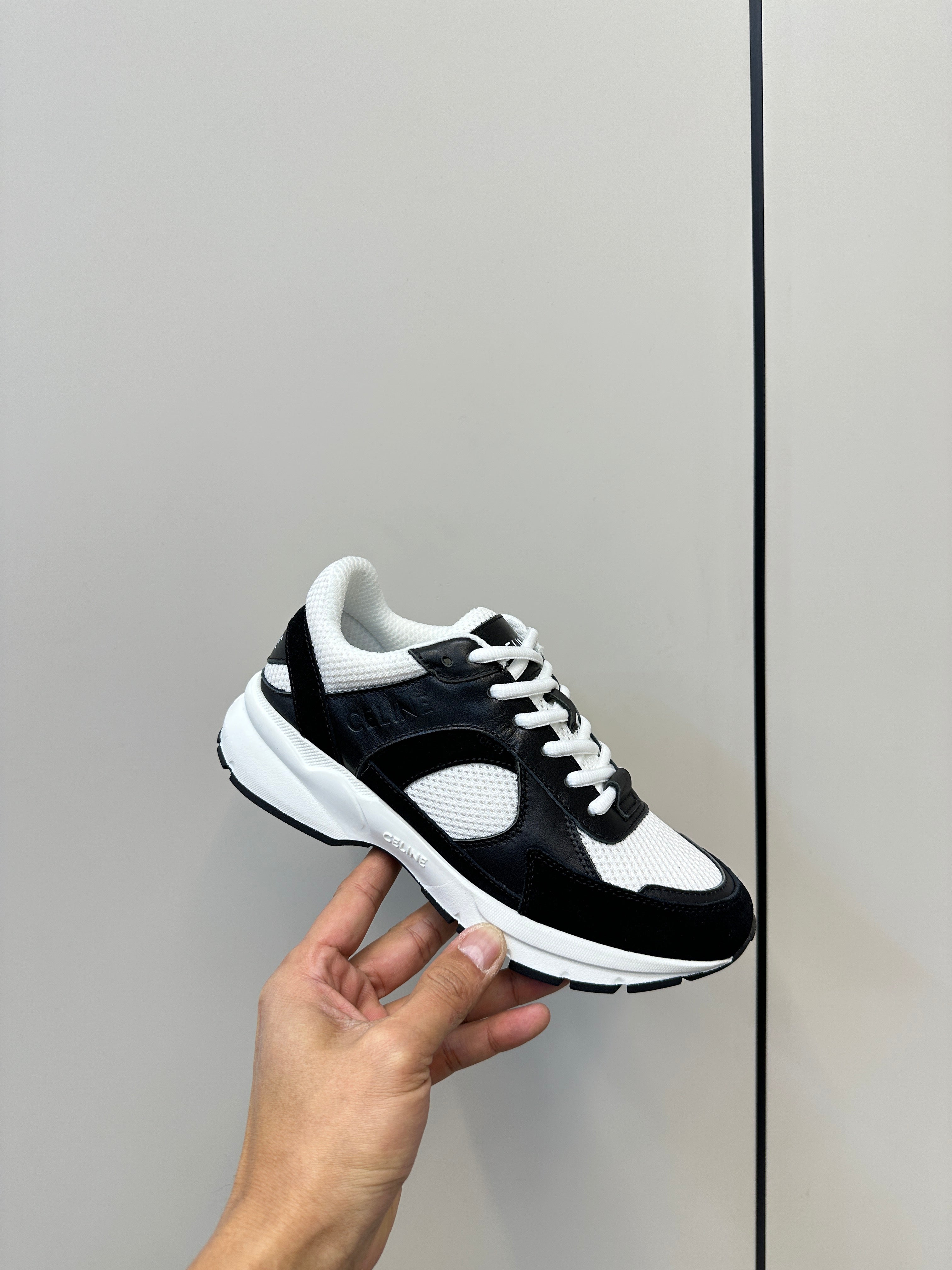 RUNNER CR-03 LOW LACE-UP IN WHITE MESH AND BLACK CALFSKIN