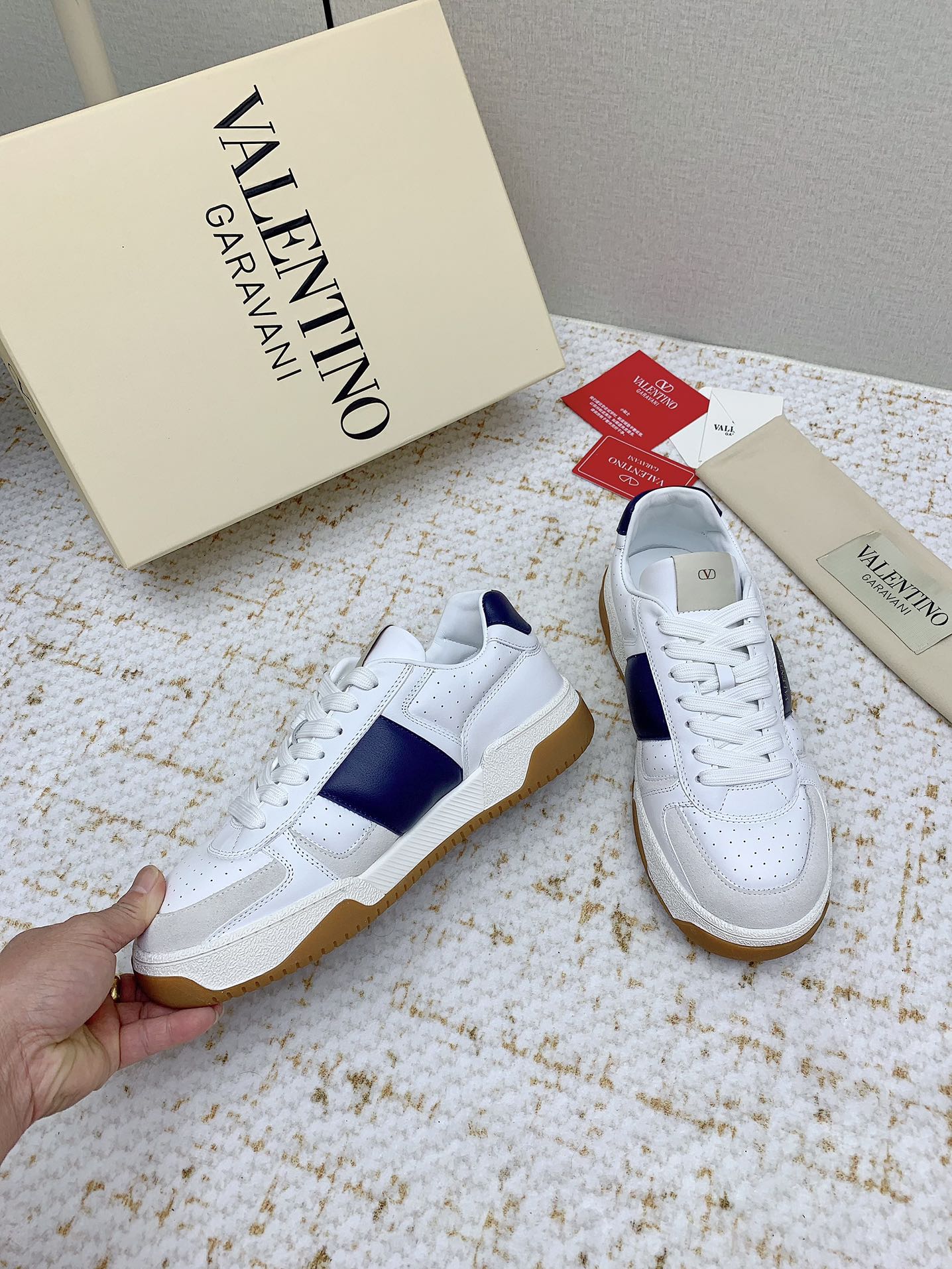 VT 25 Low Top Garavani Sneaker White Blue Cowhide 331677