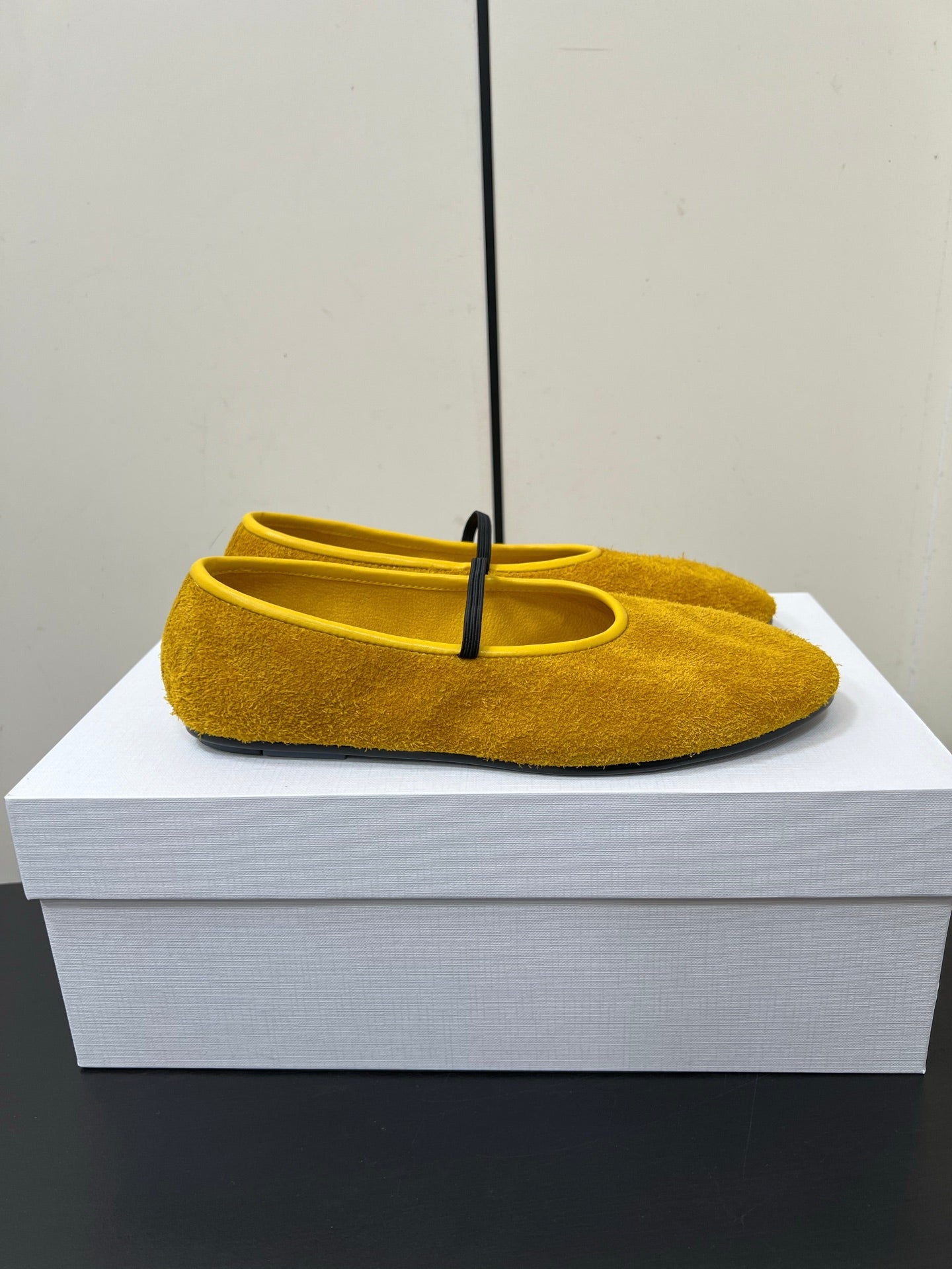 Elastic Ballet Slipper In Amber Gold Cow Suede 340037