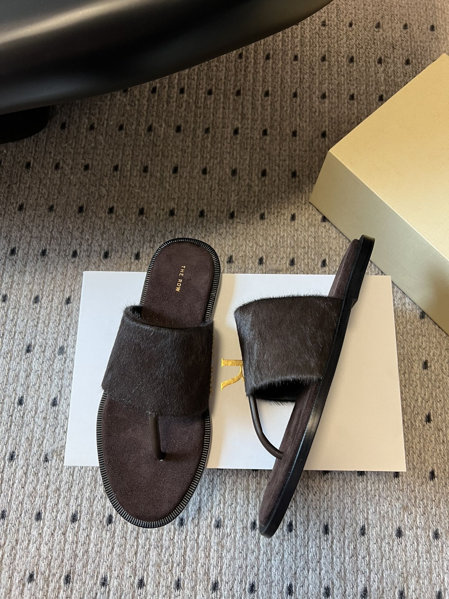 Signum Flat Sandal in Chocoldate Sheepskin And Horse Hair 282425