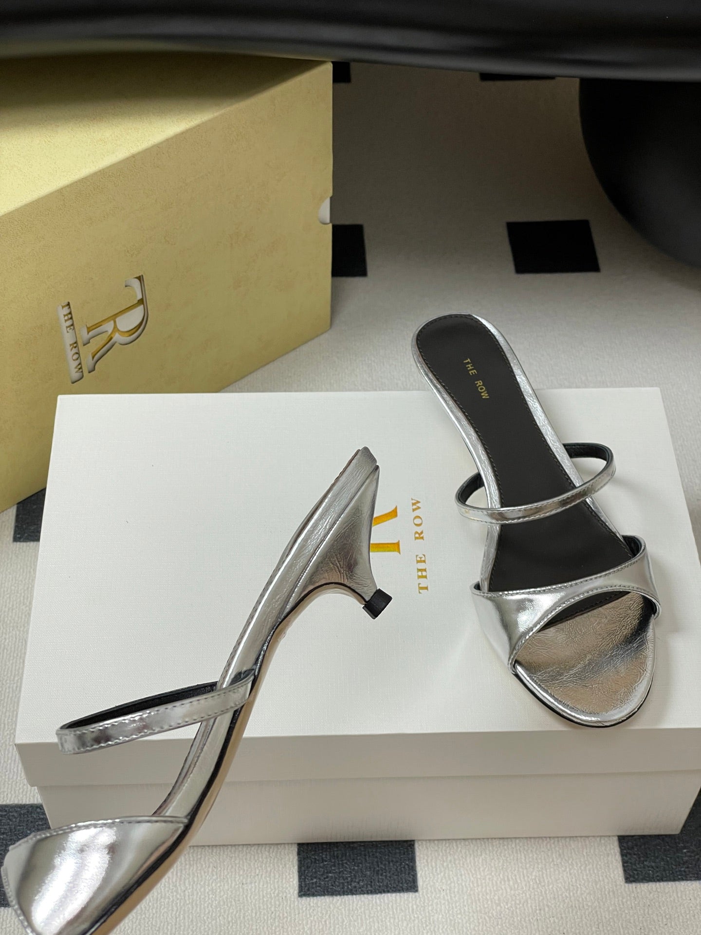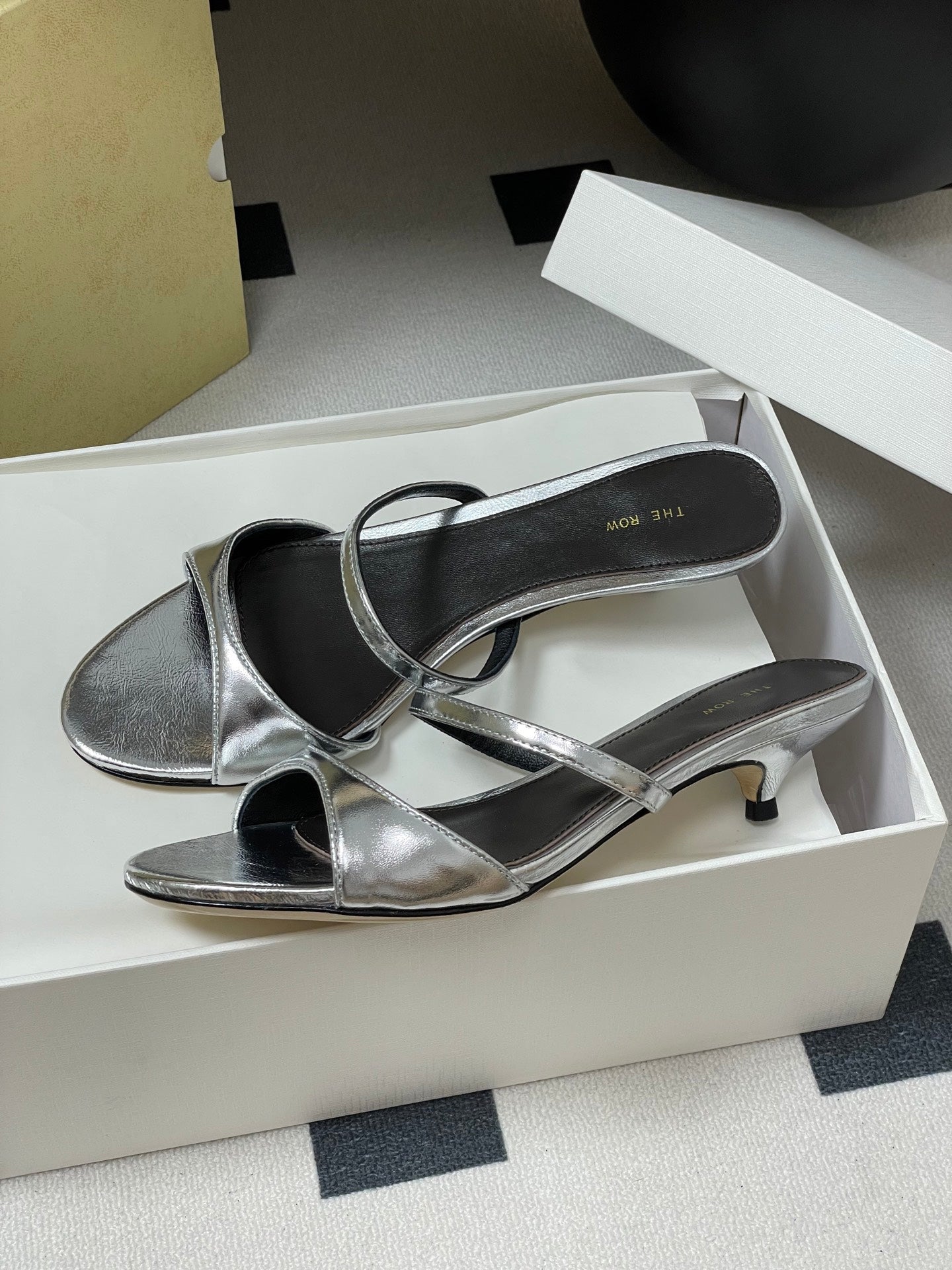 The Row 25S Strap High Heel Mule Sandals 35mm Black Mix Silver Metallic Cowhide 286217
