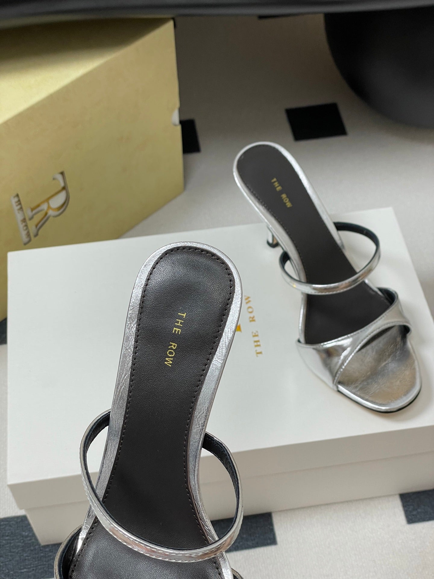The Row 25S Strap High Heel Mule Sandals 85mm Black Mix Silver Metallic Cowhide 286209