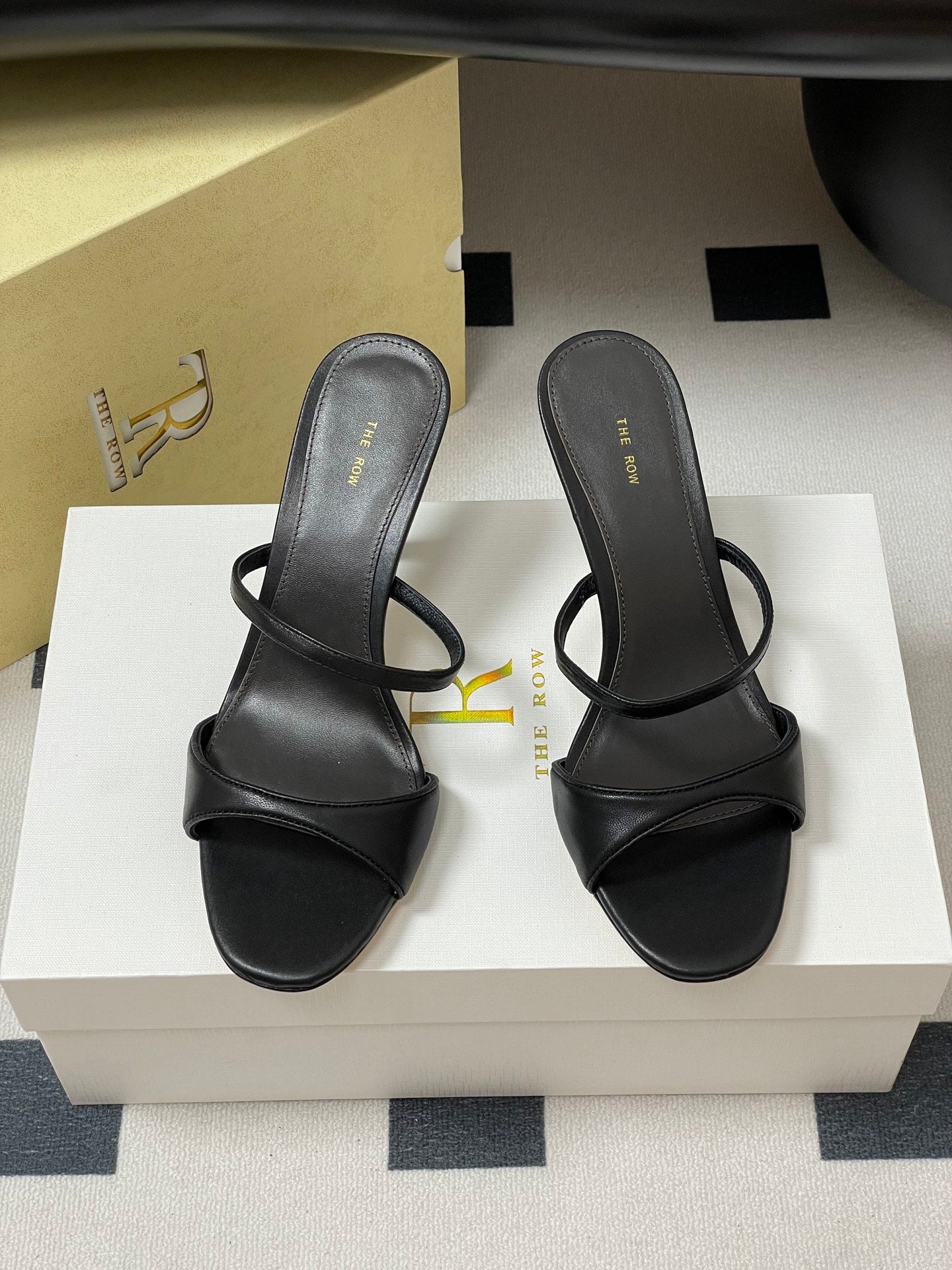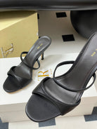 The Row 25S Strap High Heel Mule Sandals 85mm Black Sheepskin 286208