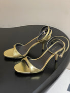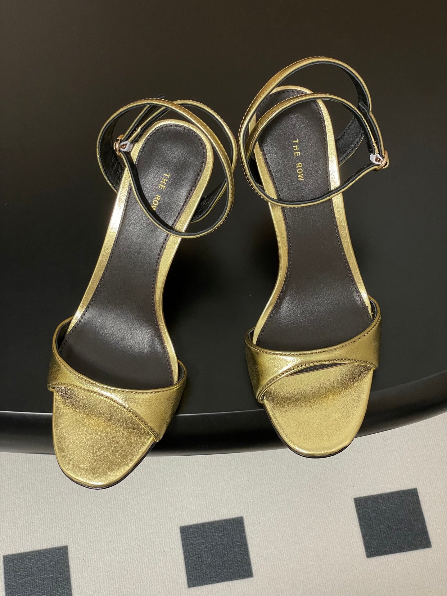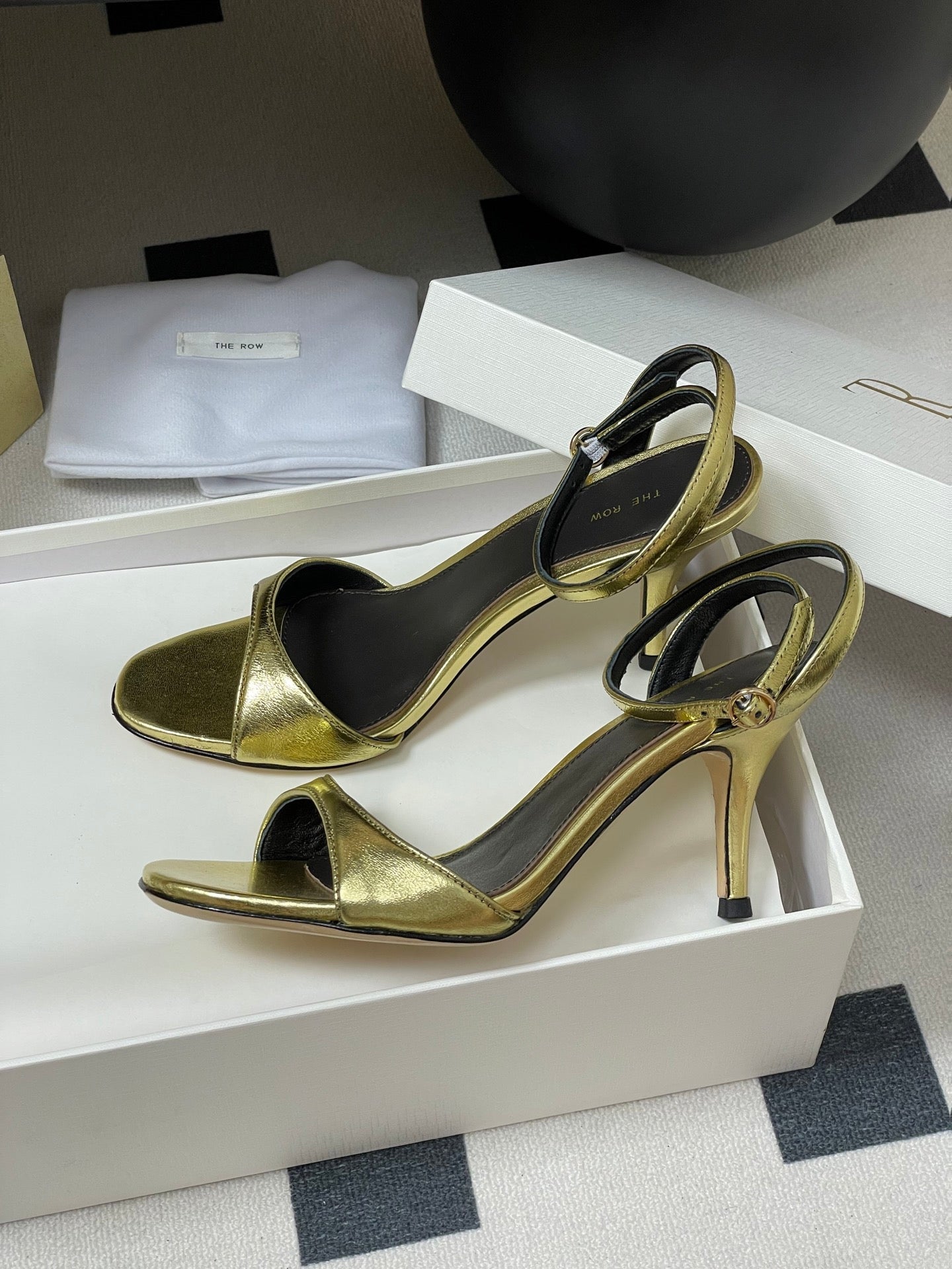 The Row 25S Strap High Heel Sandals 85mm Black Mix Gold Metallic Cowhide 286193