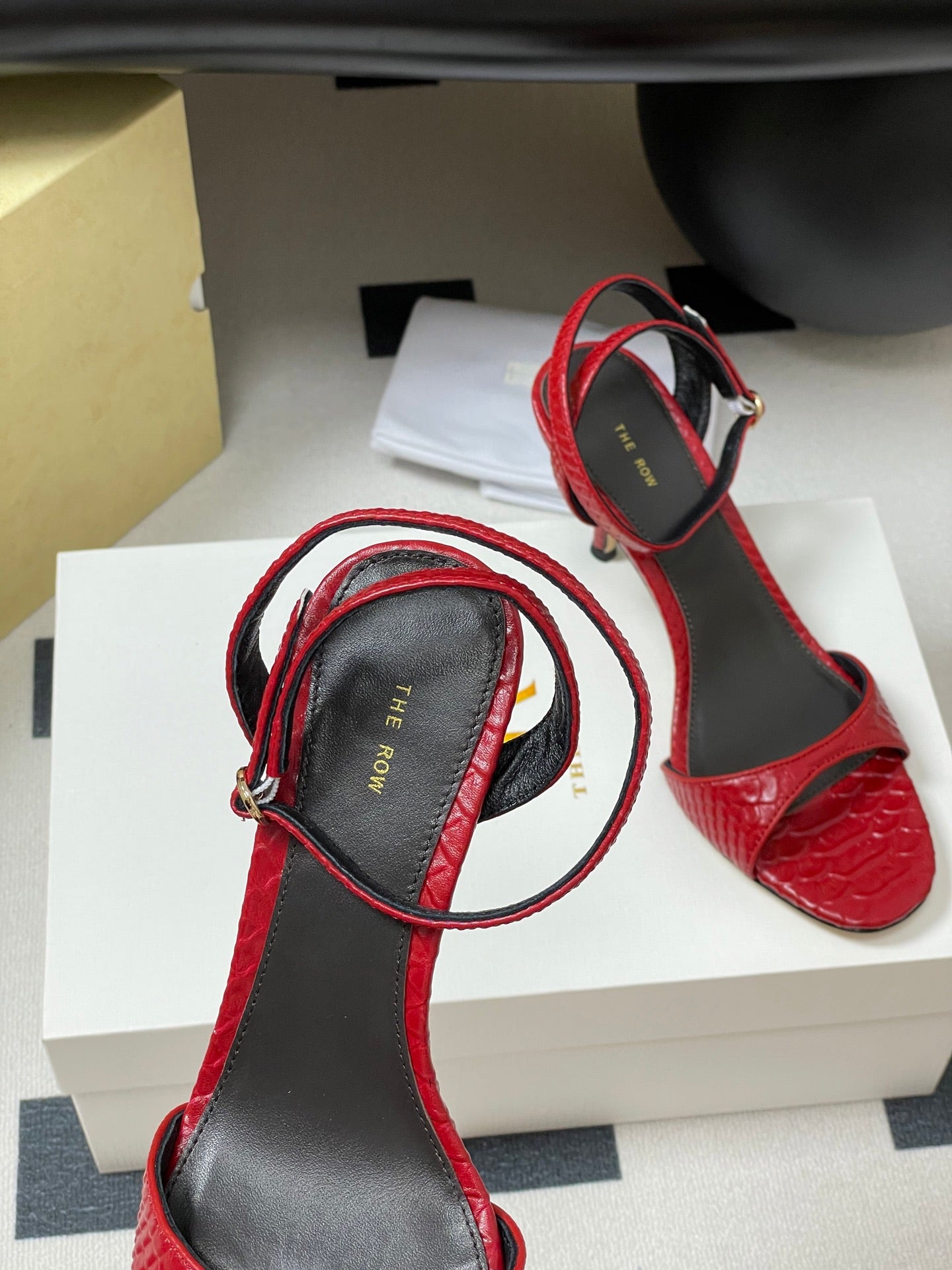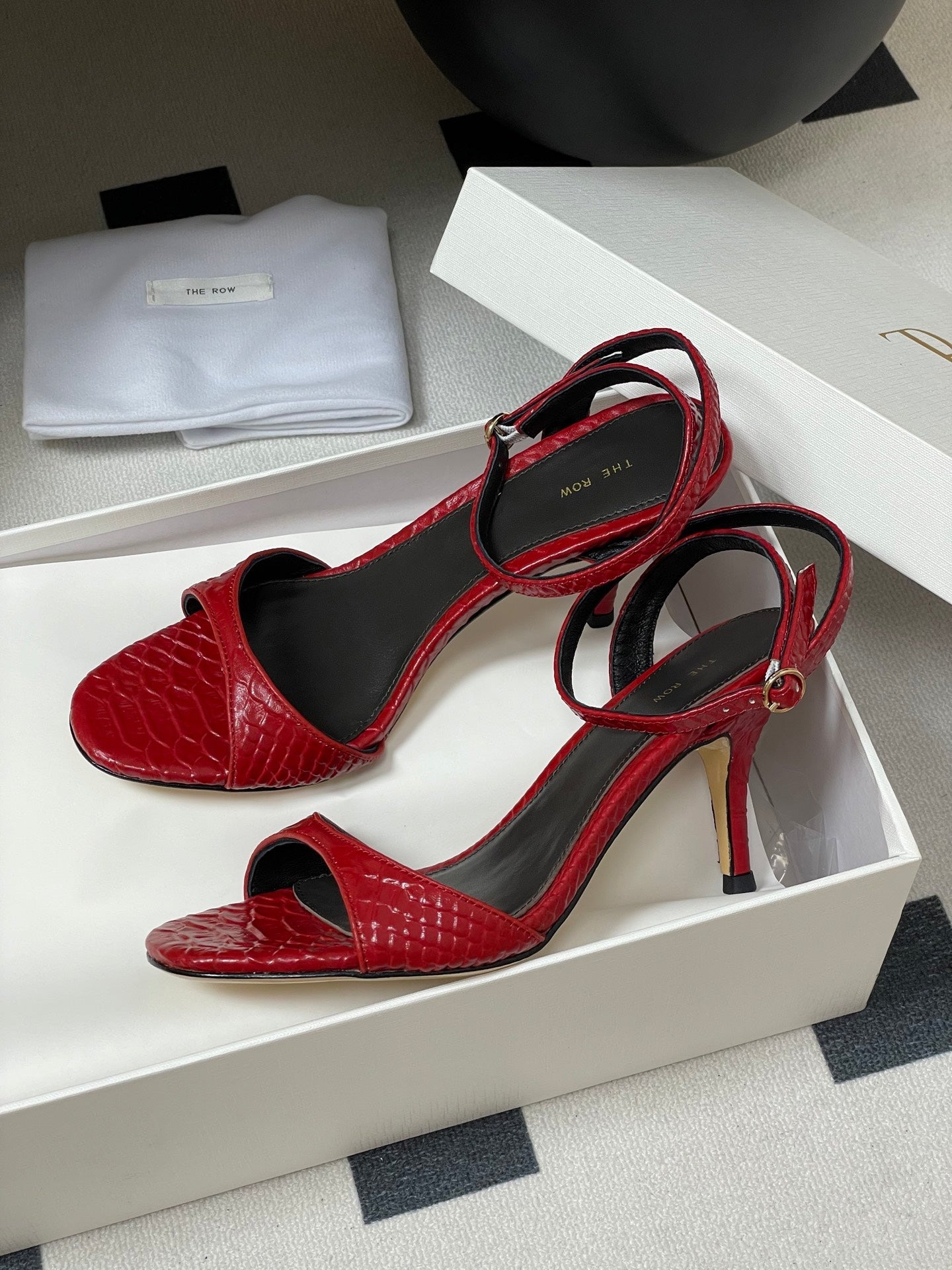 The Row 25S Strap High Heel Sandals 85mm Red Snake Pattern Cowhide 286187