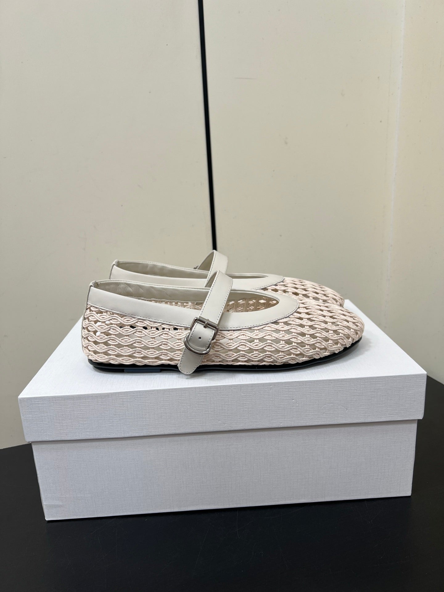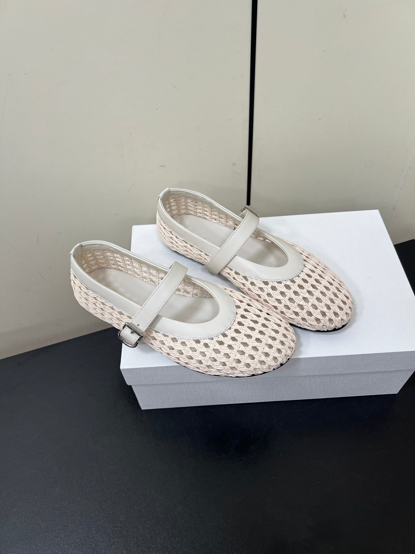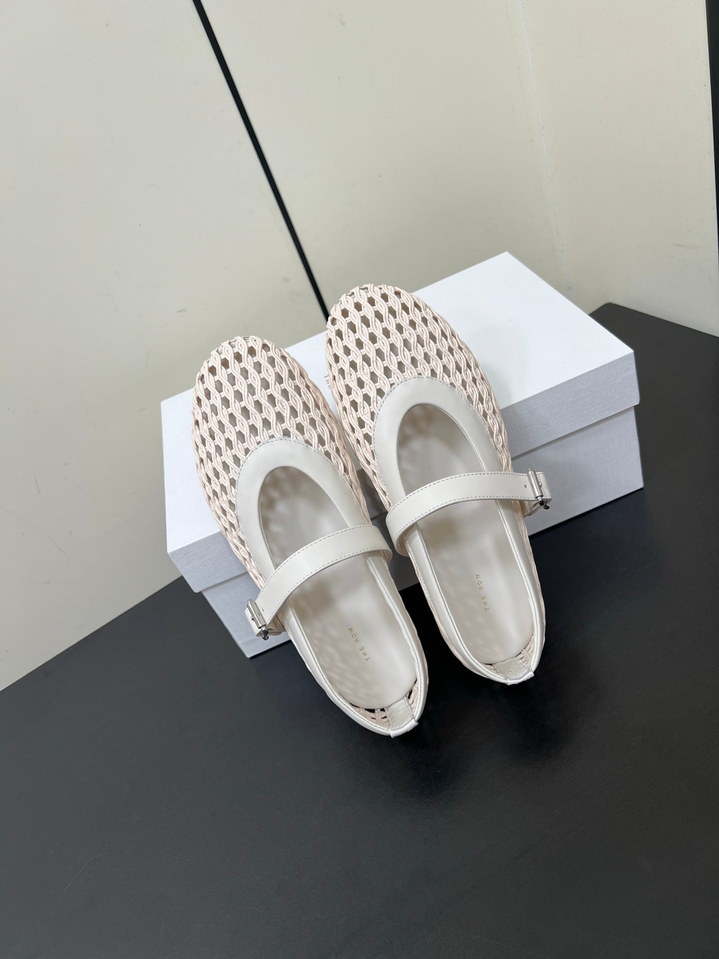 The Row 25ss Mary Jane Flat Light Pink Mesh And Grey Cowhide 340042