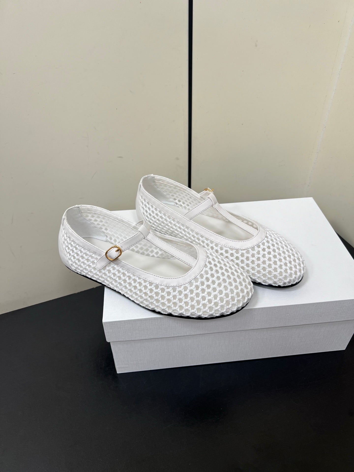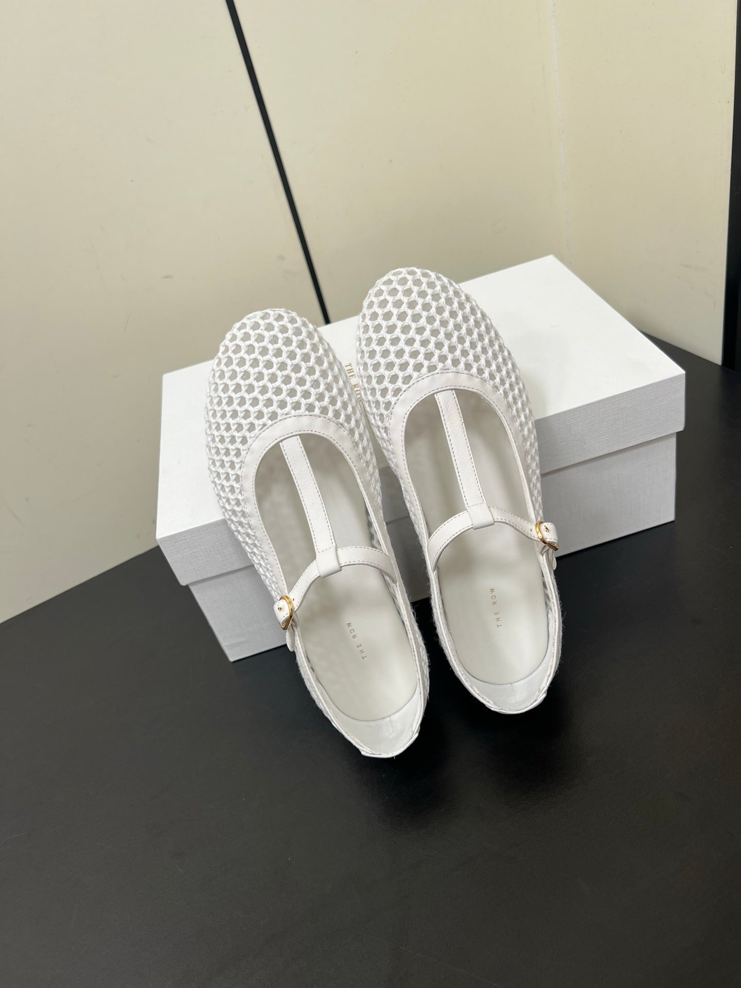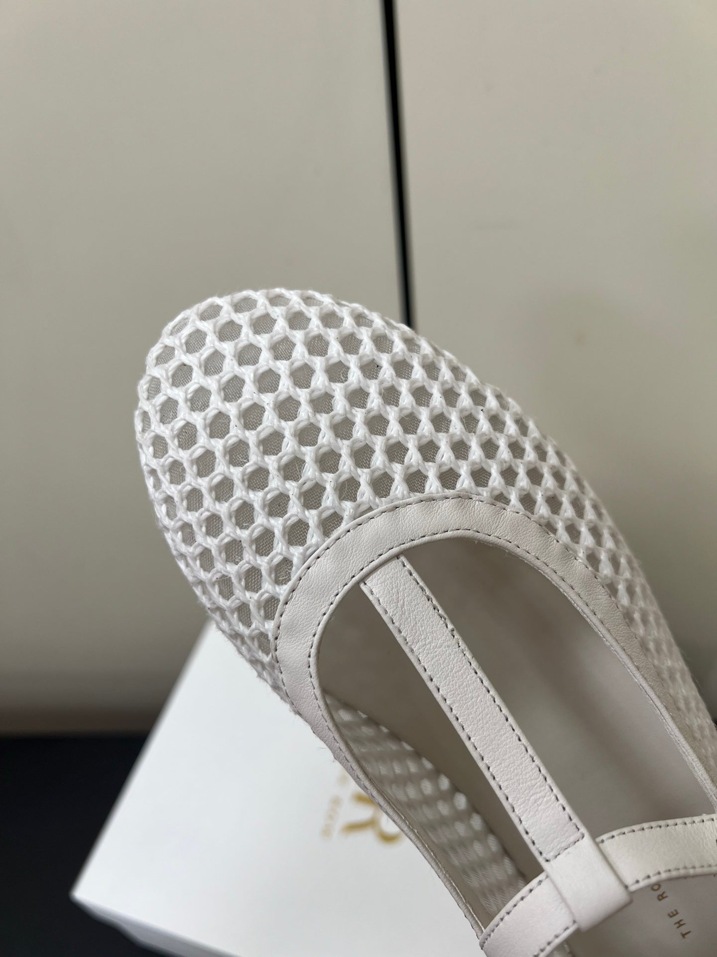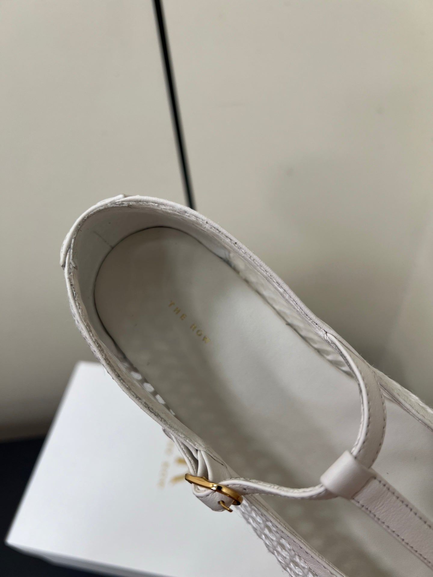The Row 25ss Square T-Strap Flat White Mesh Cowhide 340040