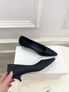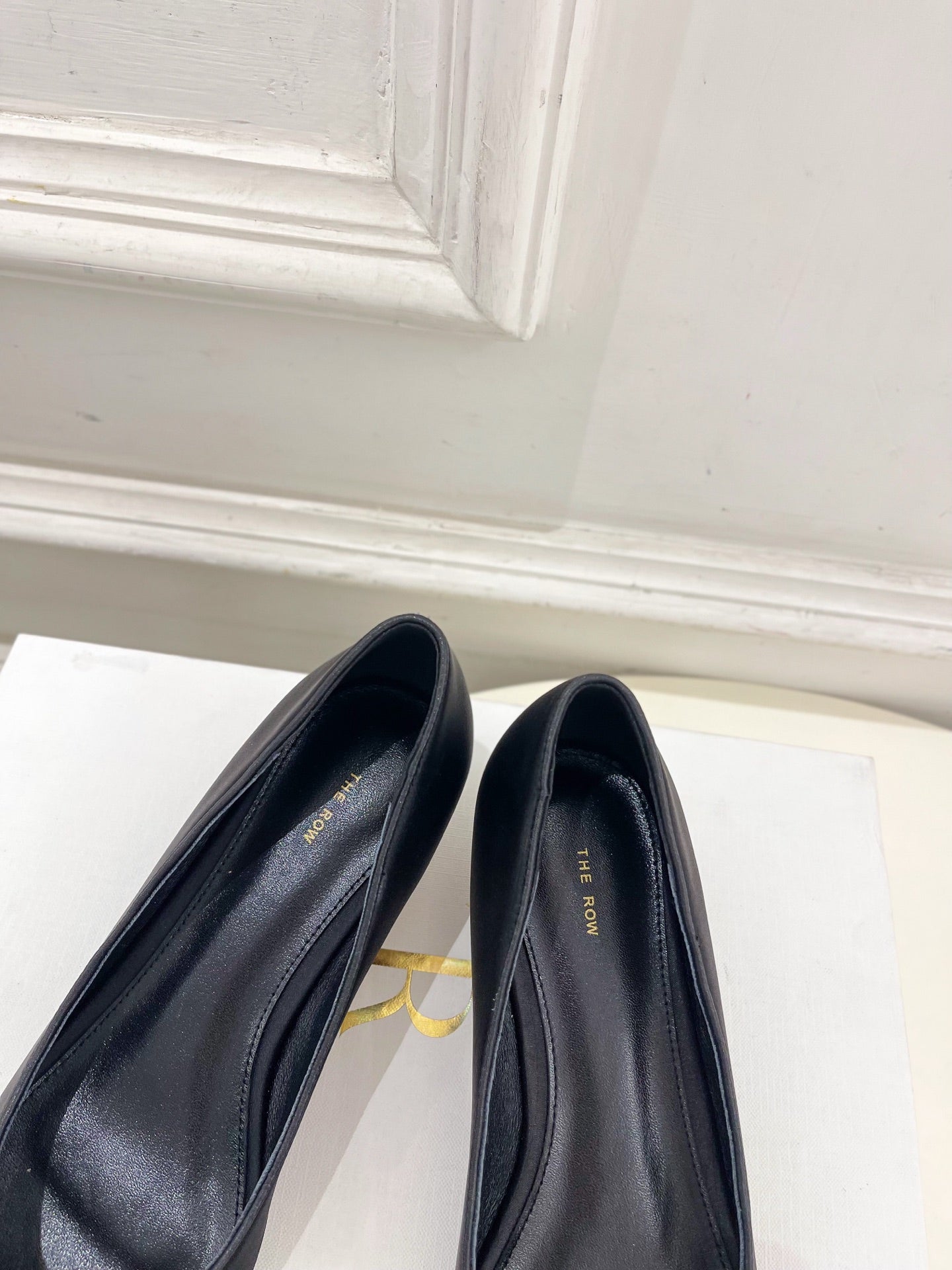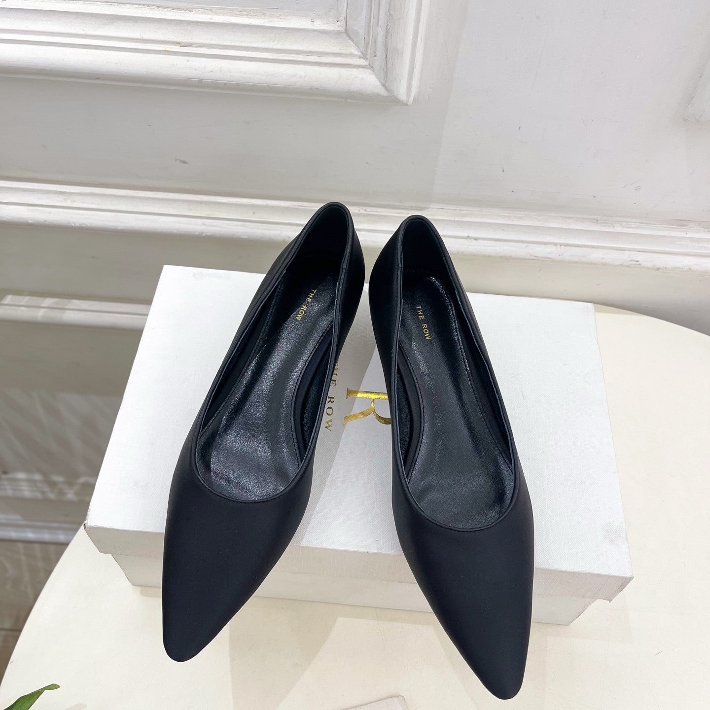 The Row 25ss TR Kitten heel Pointed Toe Shoes 35mm Black Frabic Sheepskin 425556