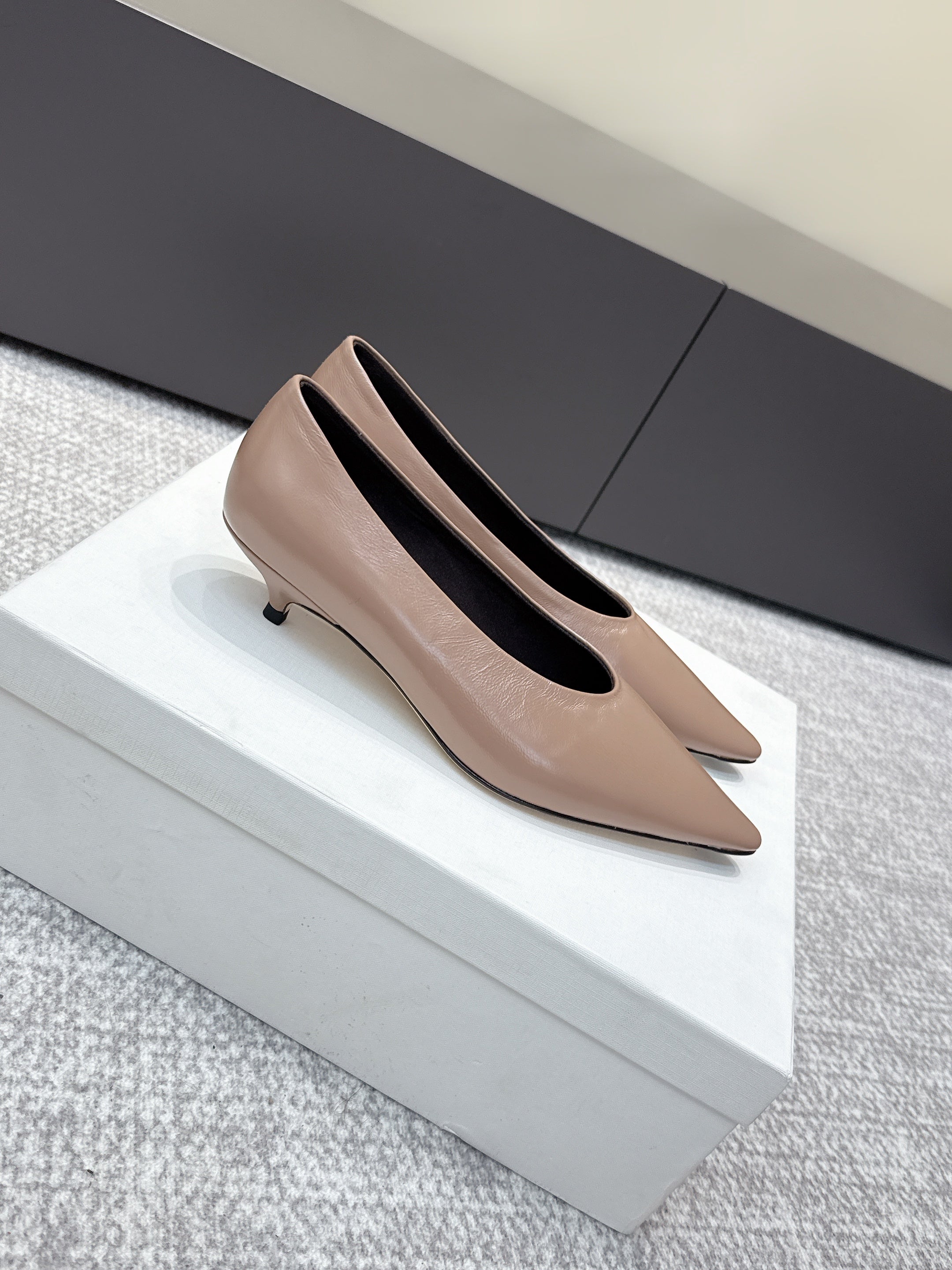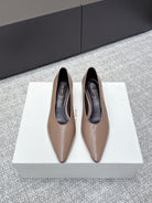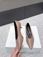 The Row 25ss TR Kitten heel Pointed Toe Shoes 35mm Taupe Blush Sheepskin 451305