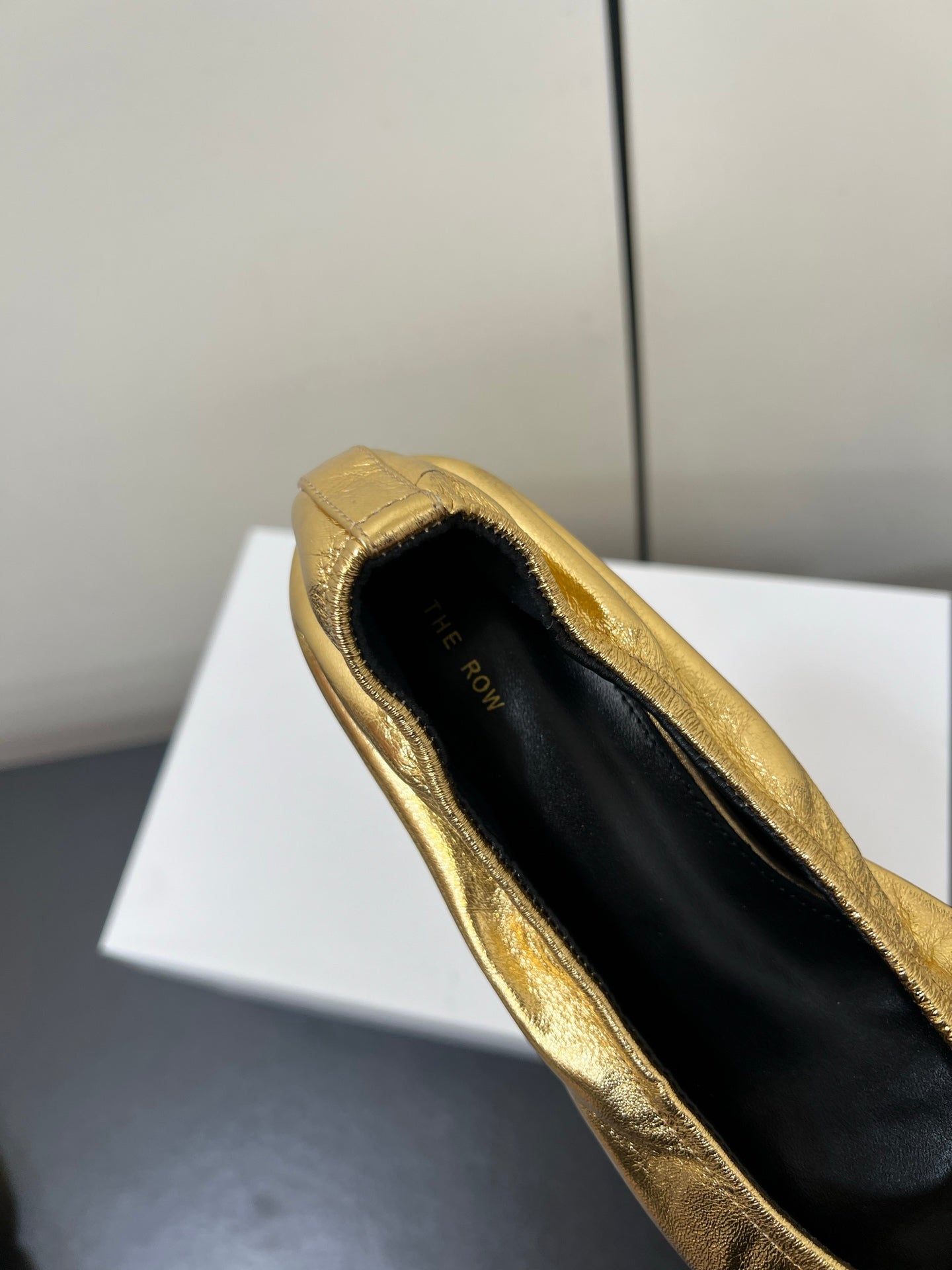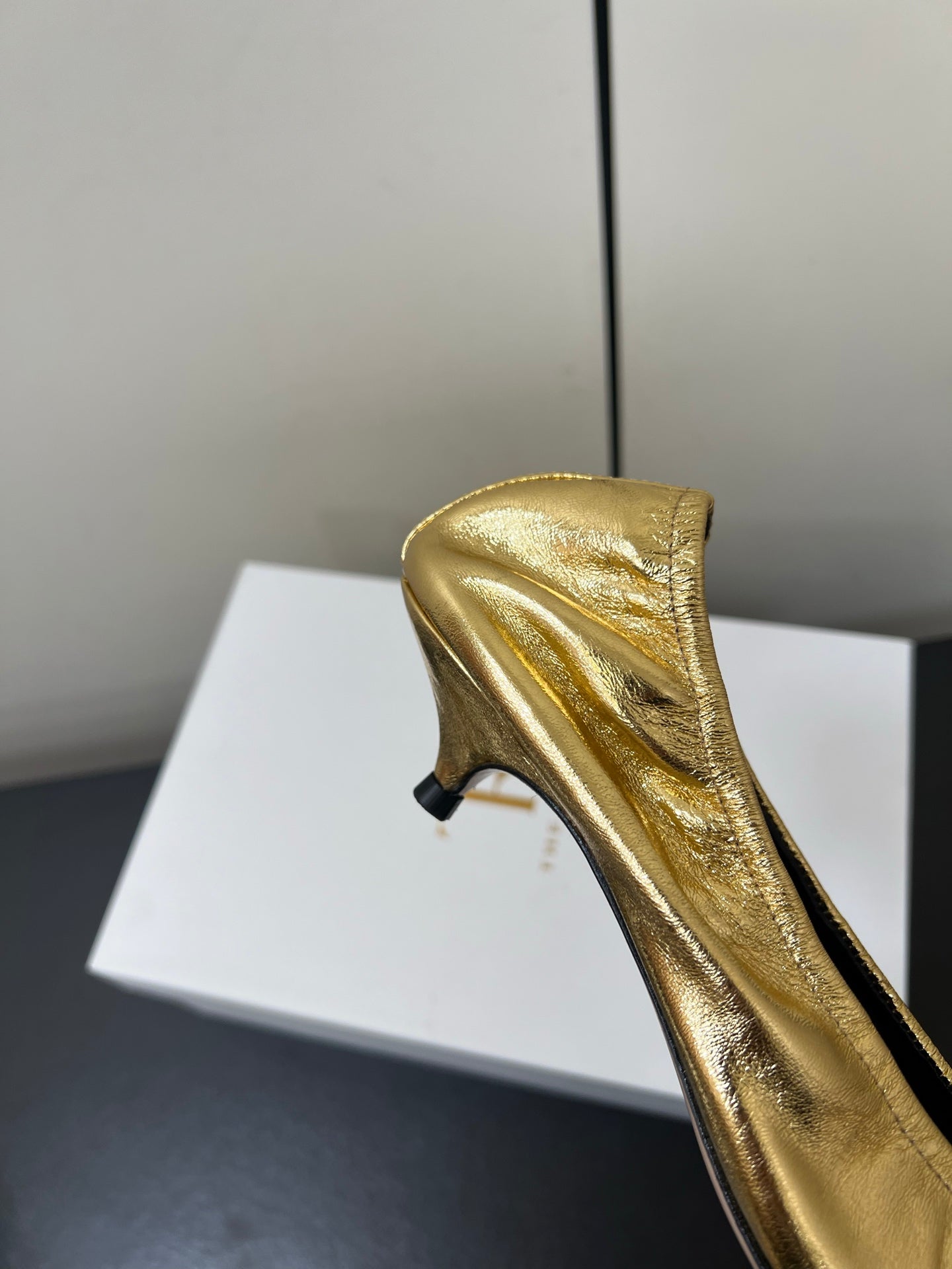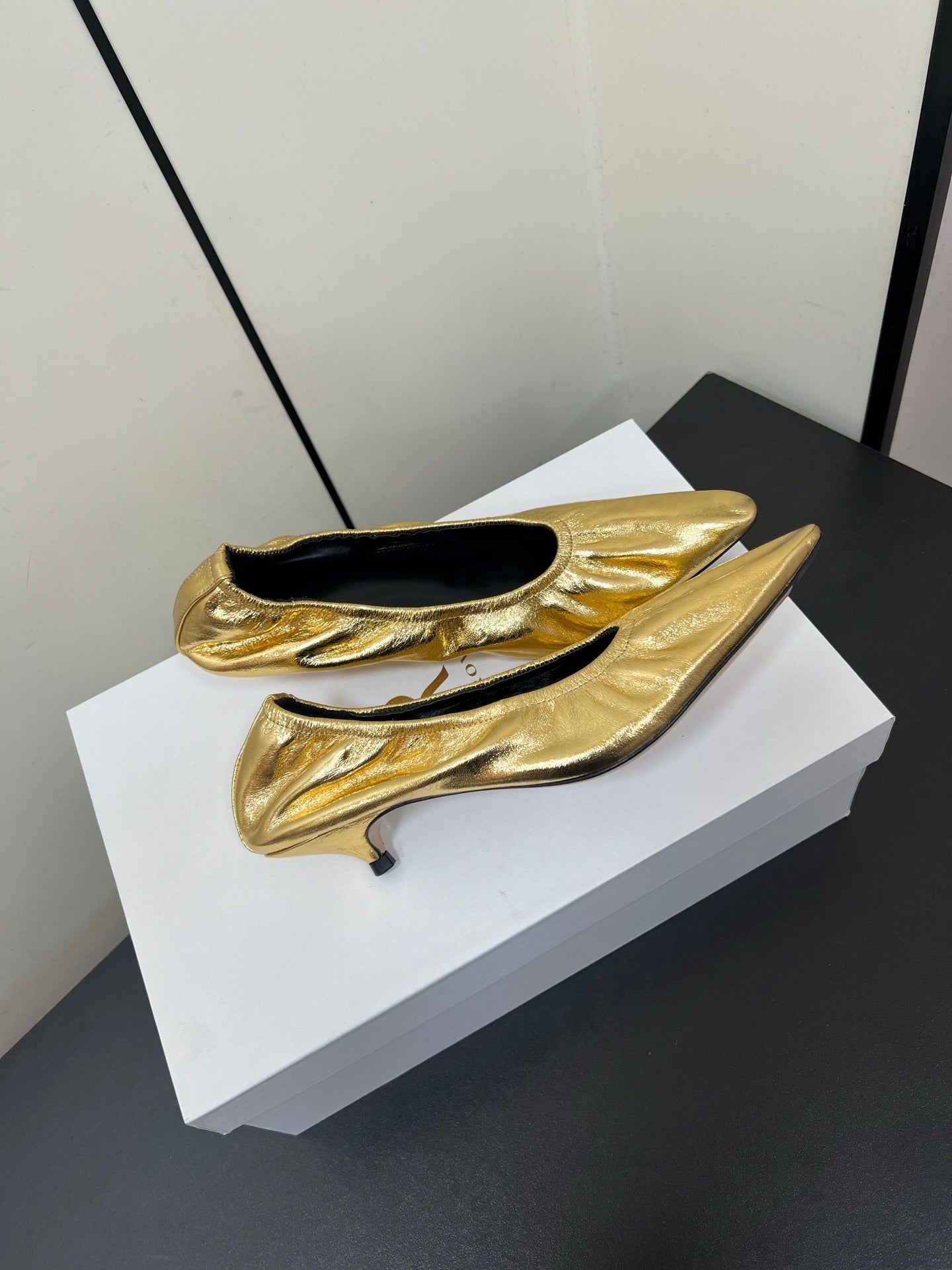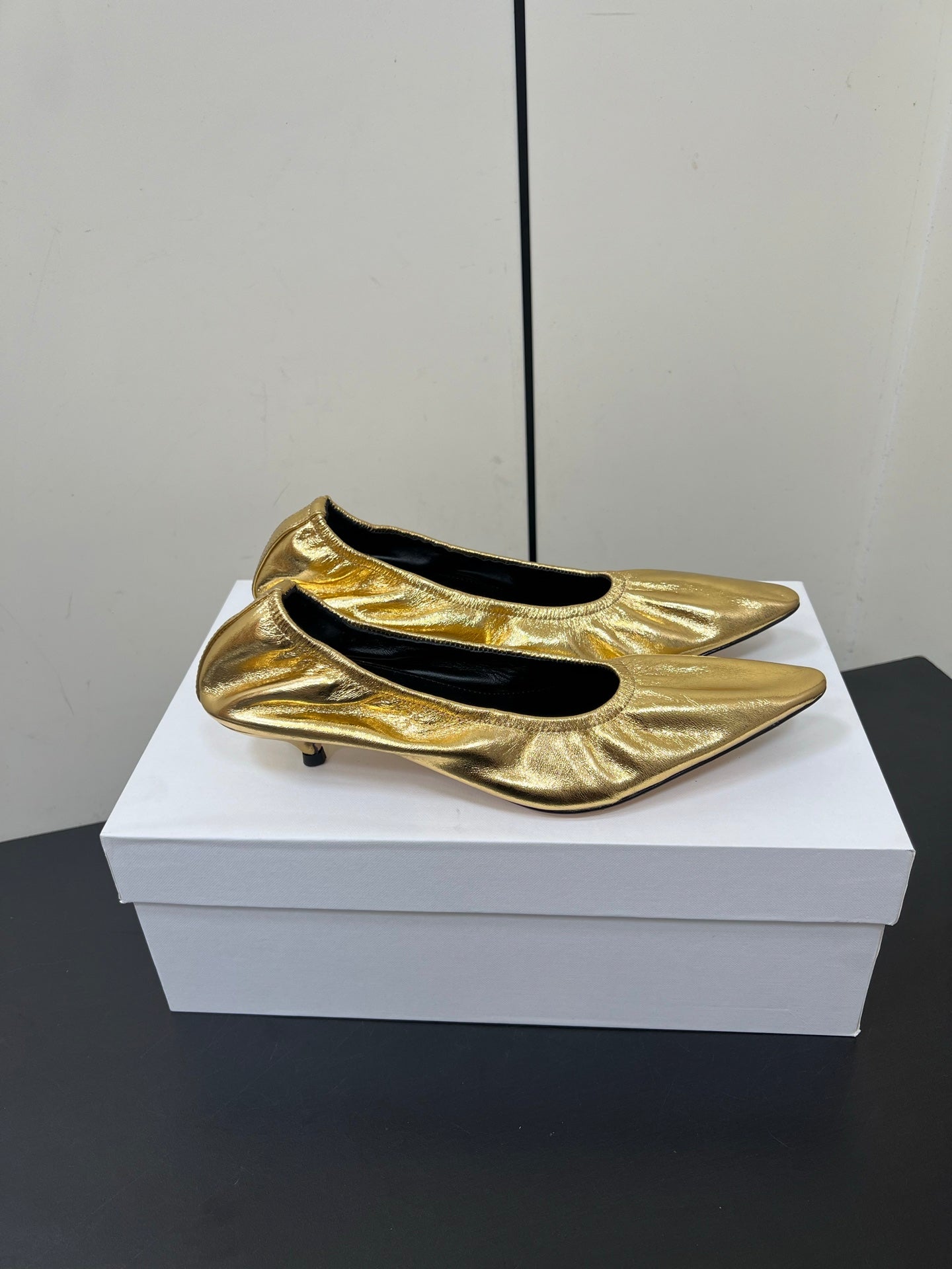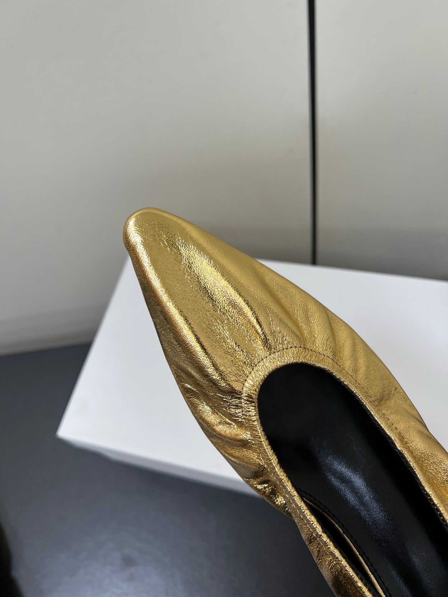 The Row Ava Gathered Leather Pumps 35mm Gold Metallic Calfskin 340014