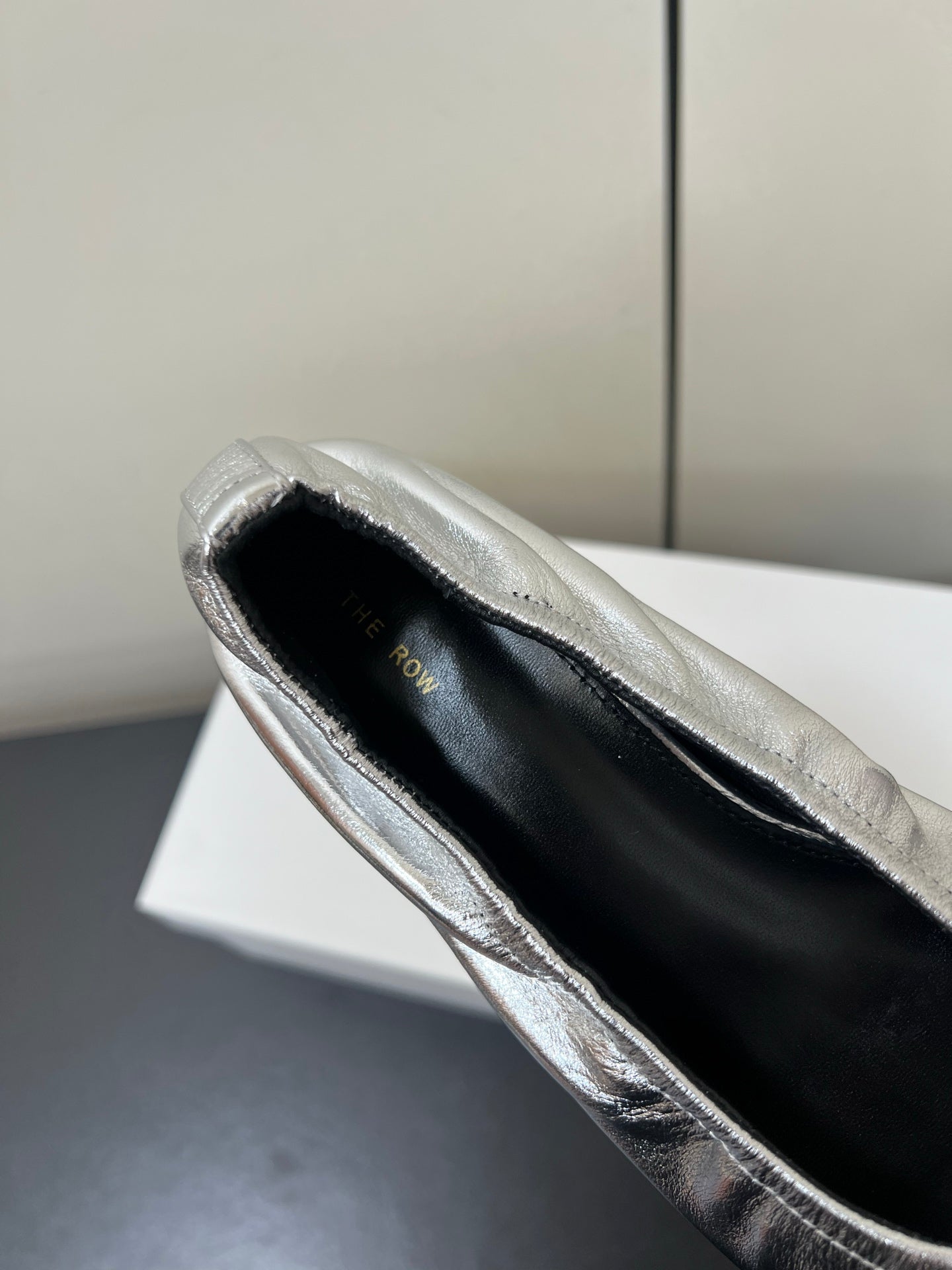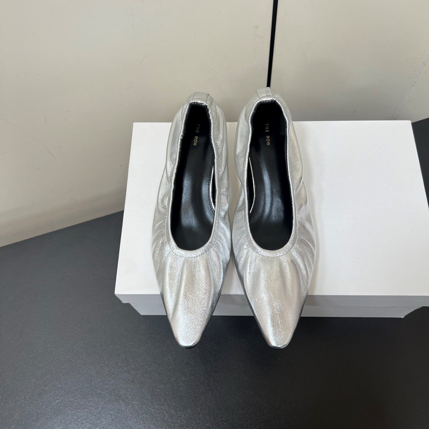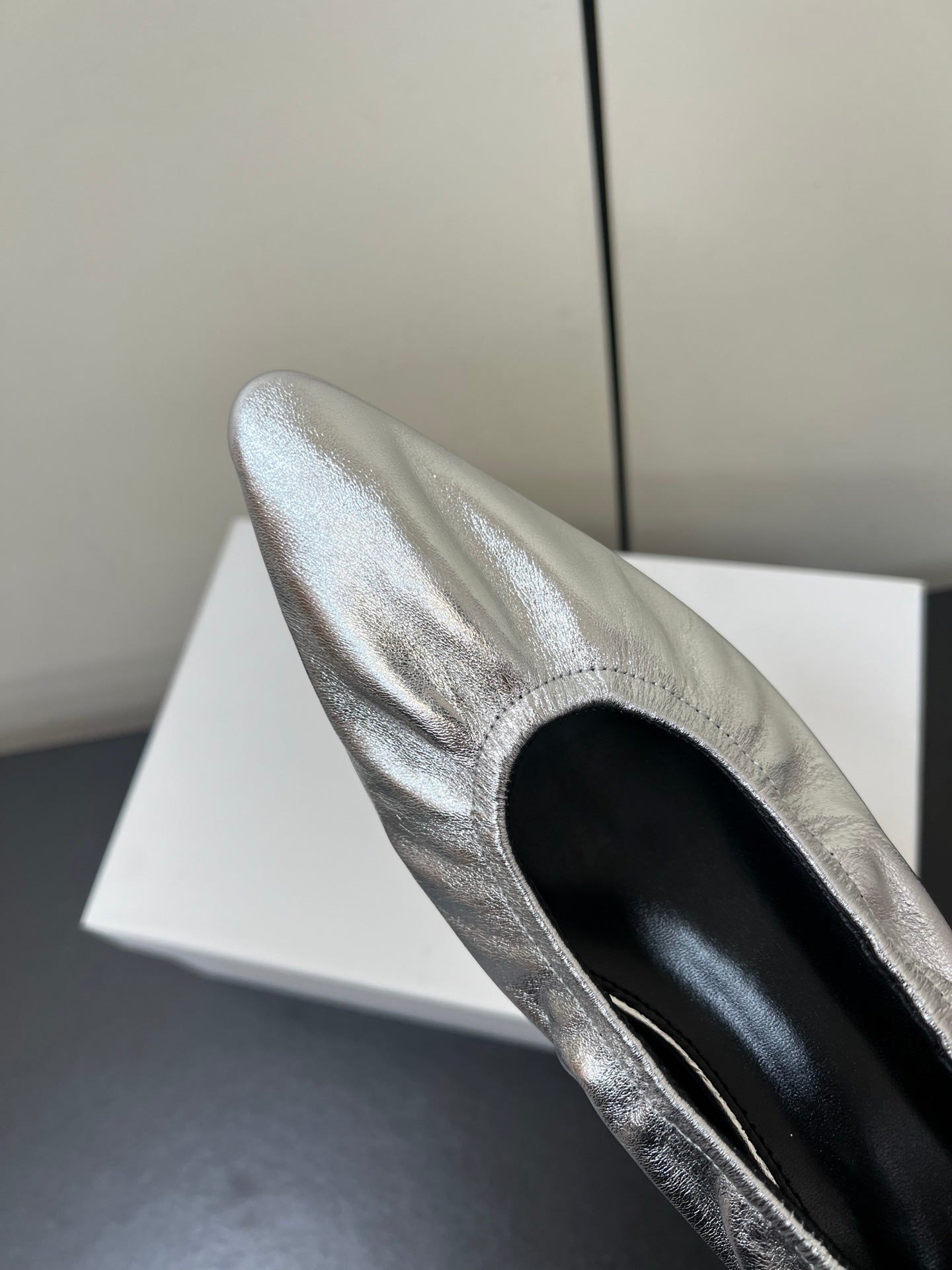 The Row Ava Gathered Leather 35mm Pumps Silver Metallic Calfskin 340013