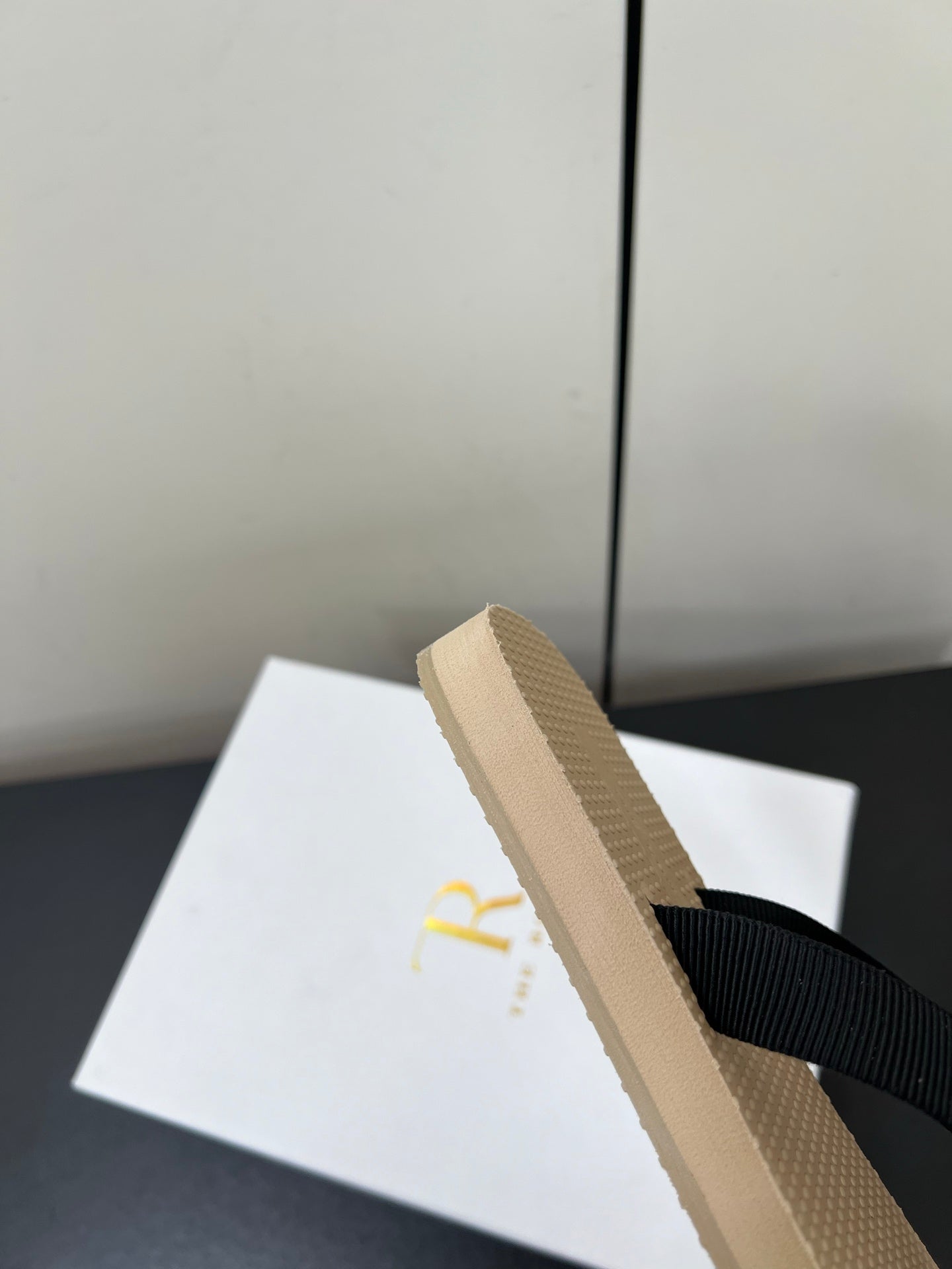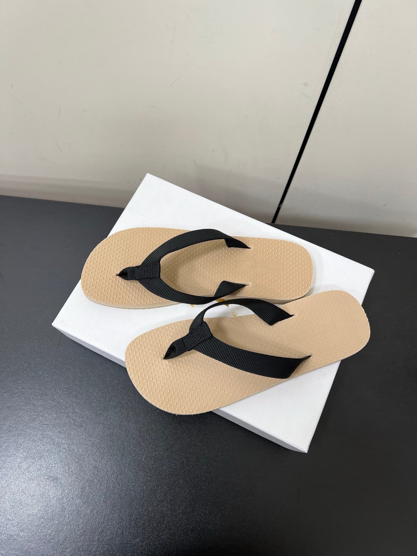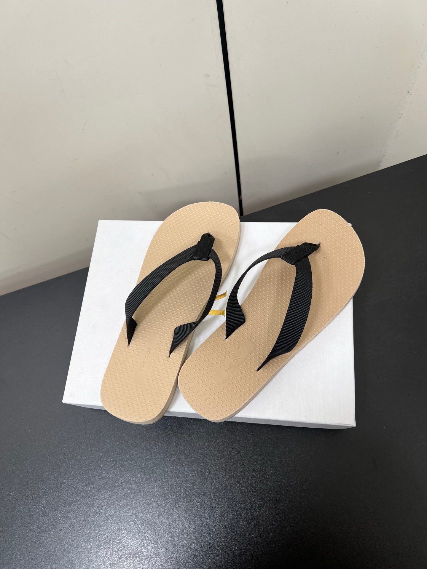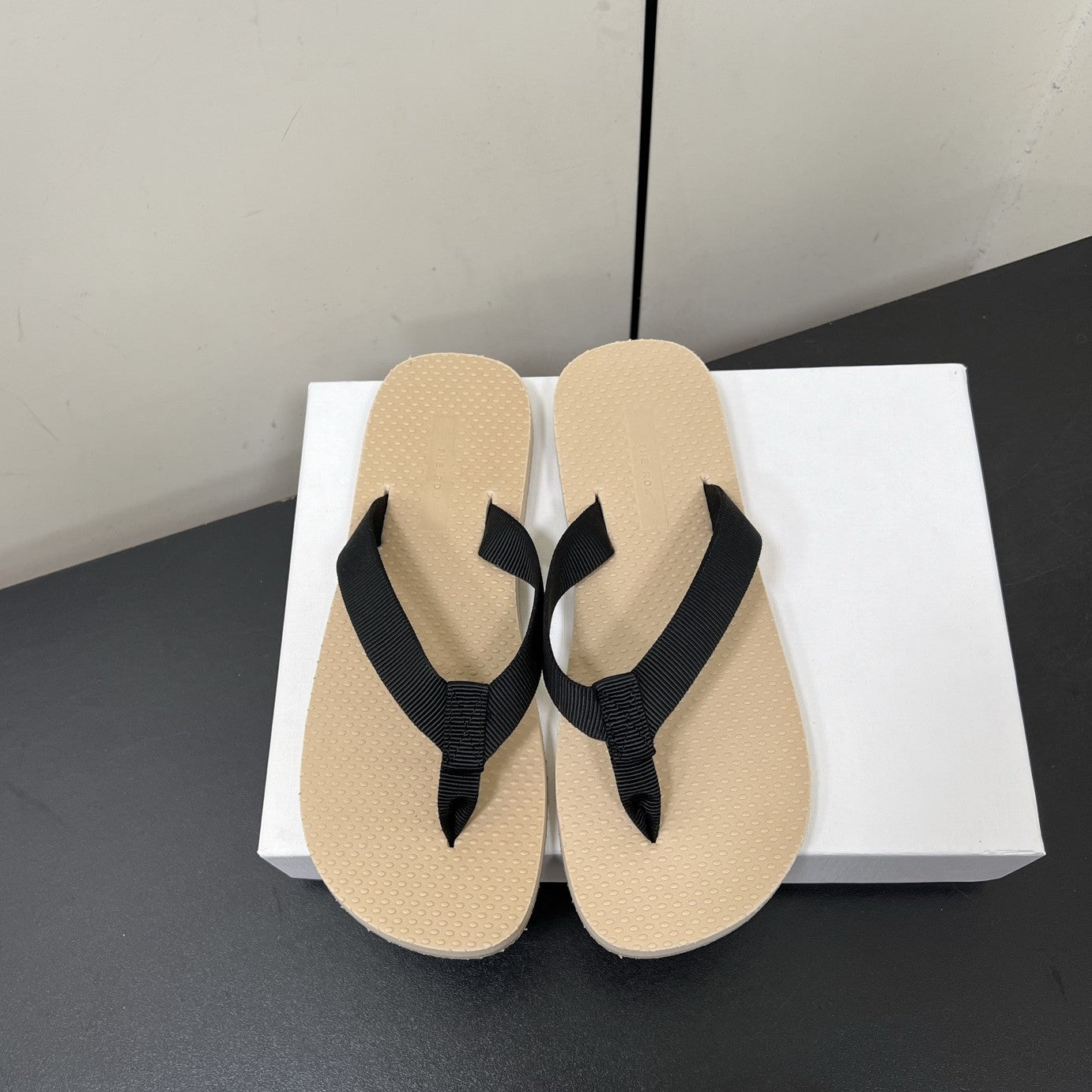 The Row Dune Flatform Thong Sandal In Beige Rubber And Black Canvas 340027