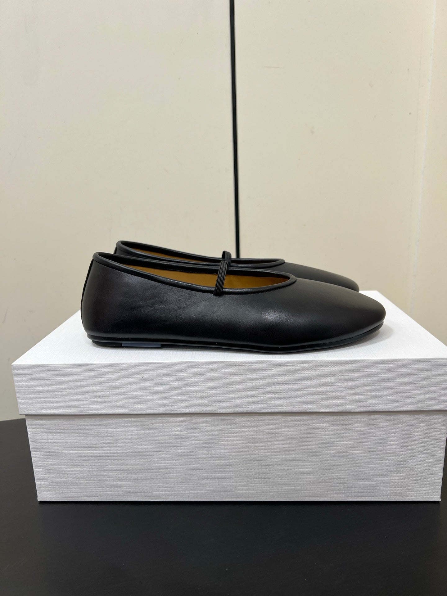 The Row Elastic Ballet Slipper In Black Calfskin 340036