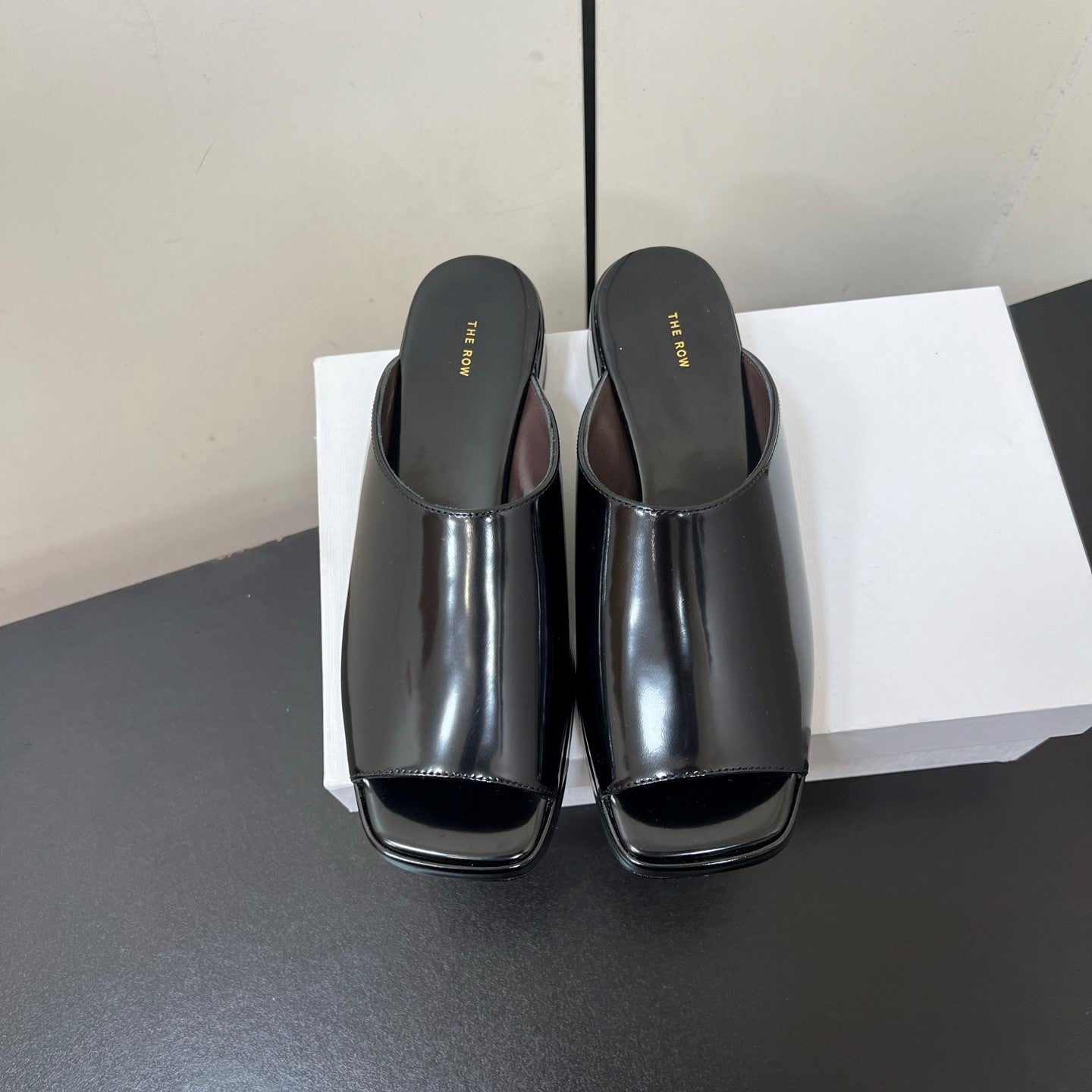 The Row Emi Flatform Sandal 25mm Black Patent Leather 340007