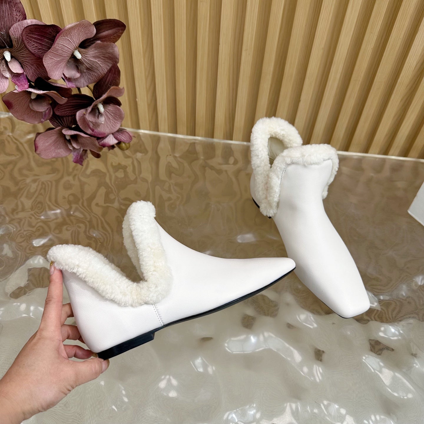 The Row Eros Ankle Boots White Shearling-trimmed Sheepskin 436643
