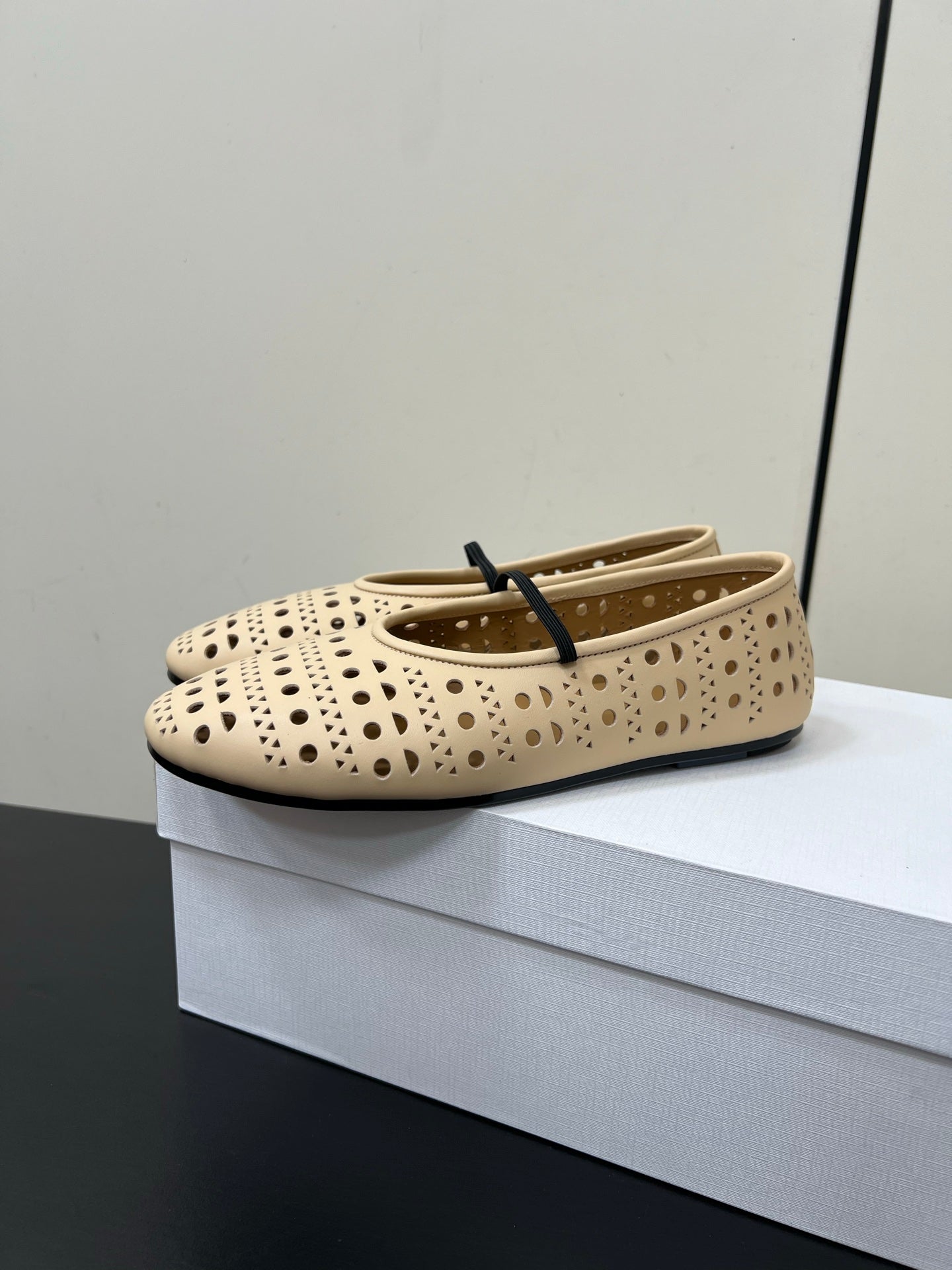 The Row Garden Mary Janes Flats Beige Calfskin 340032