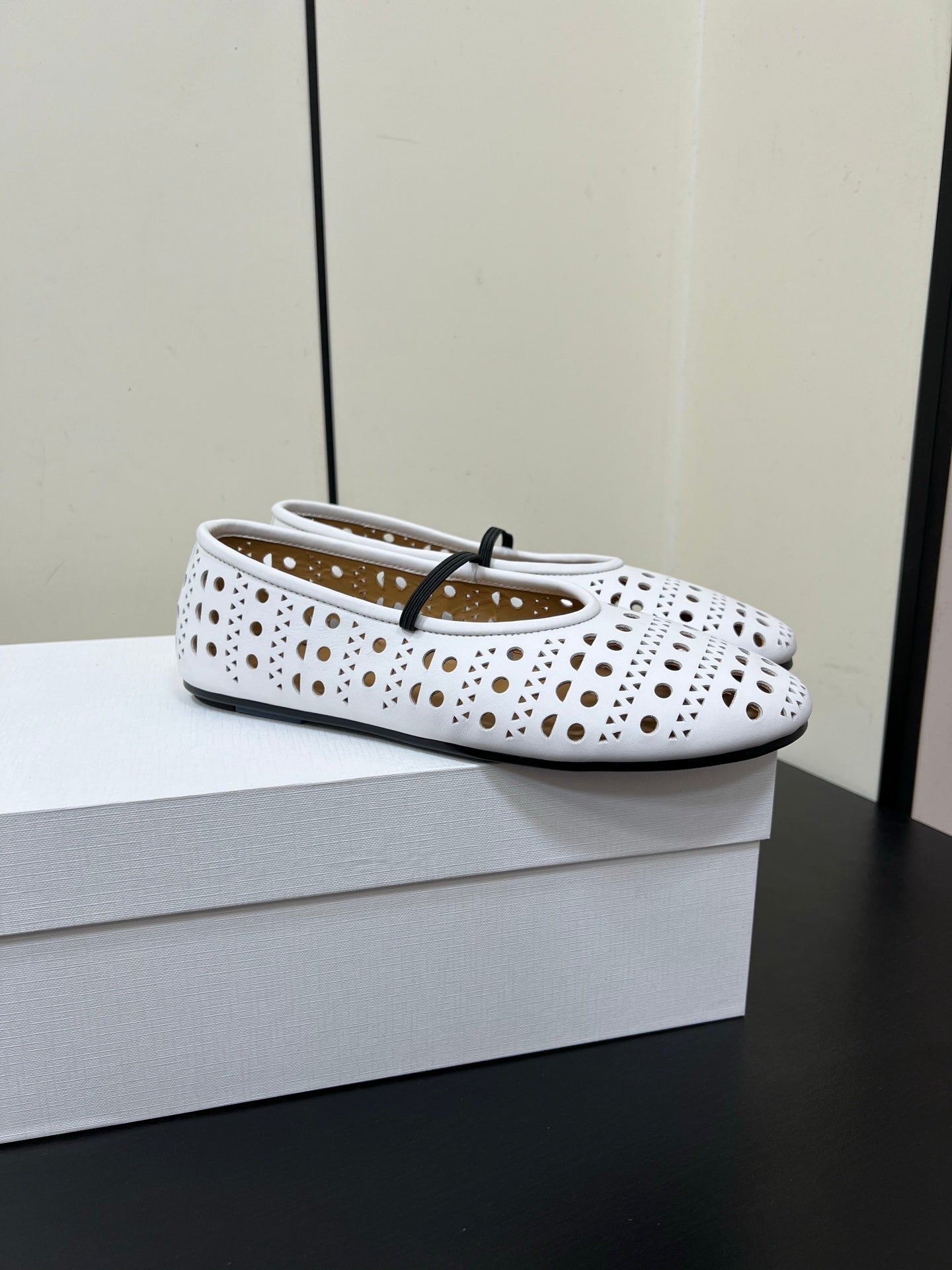 The Row Garden Mary Janes Flats White Calfskin 340033