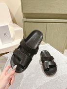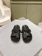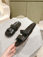The Row Hugh Slides Black Cowhide Rubber 451281