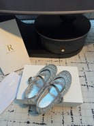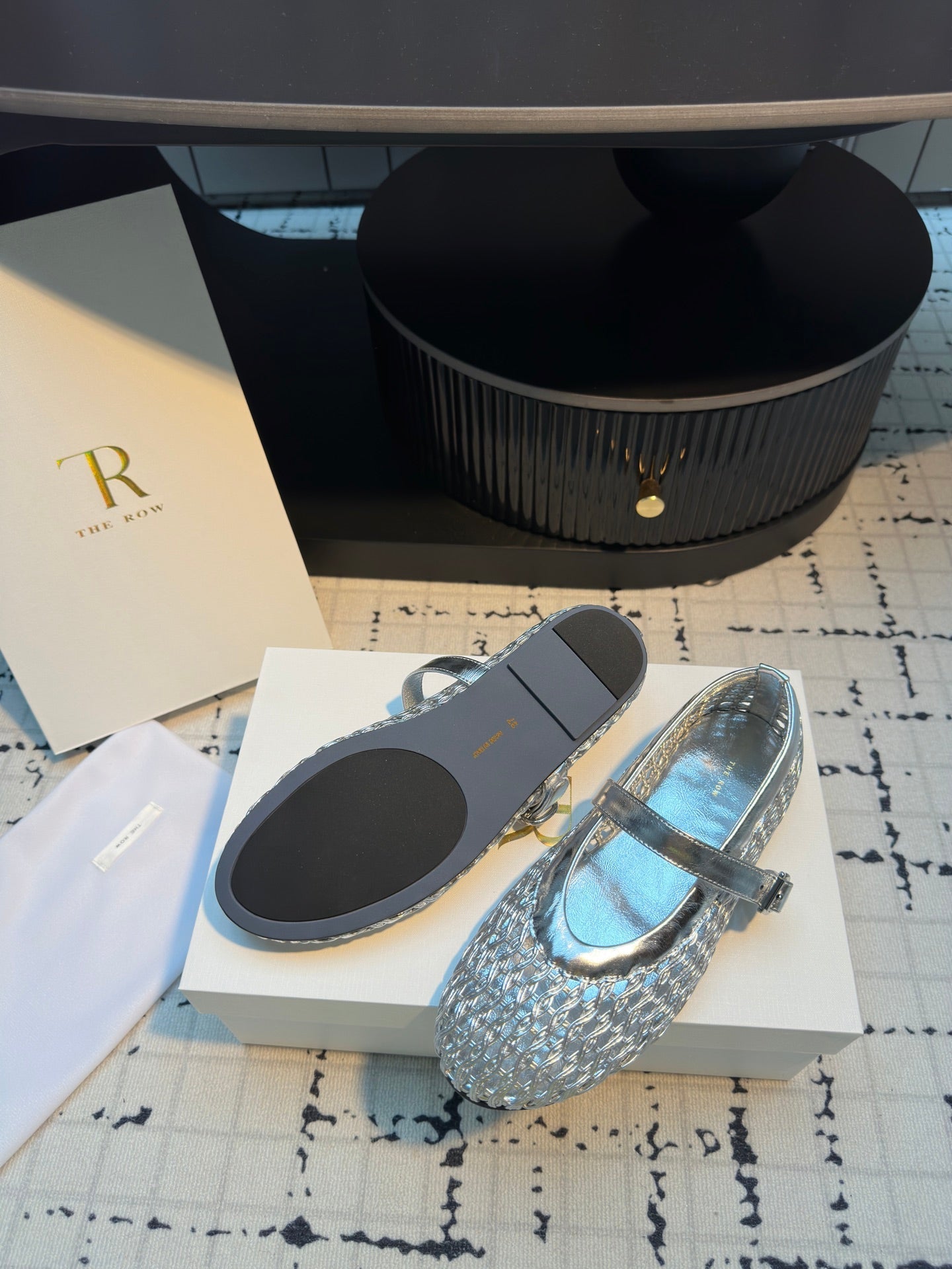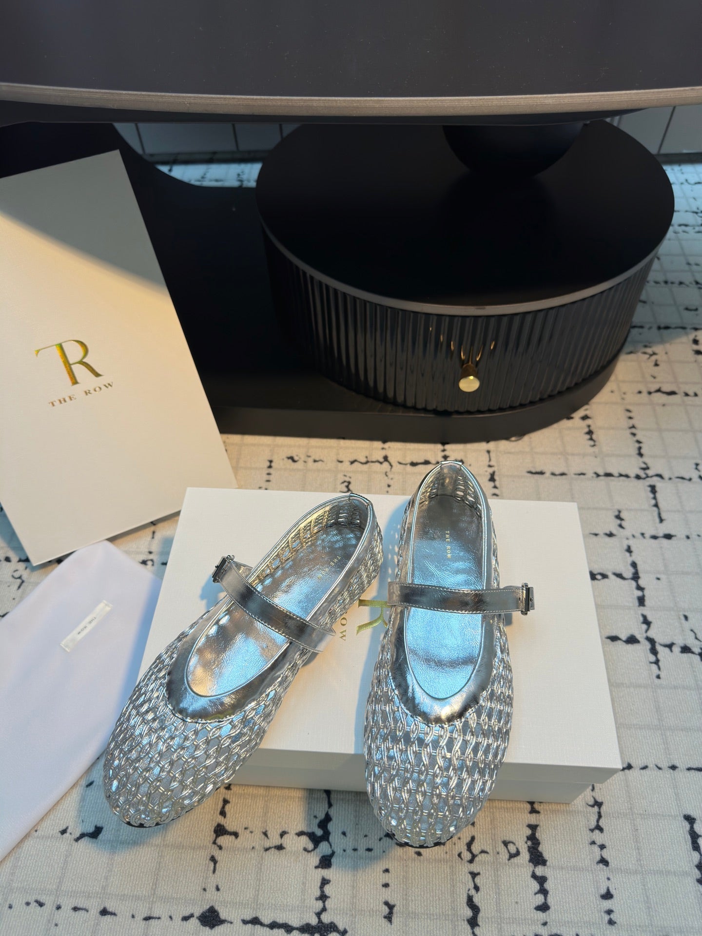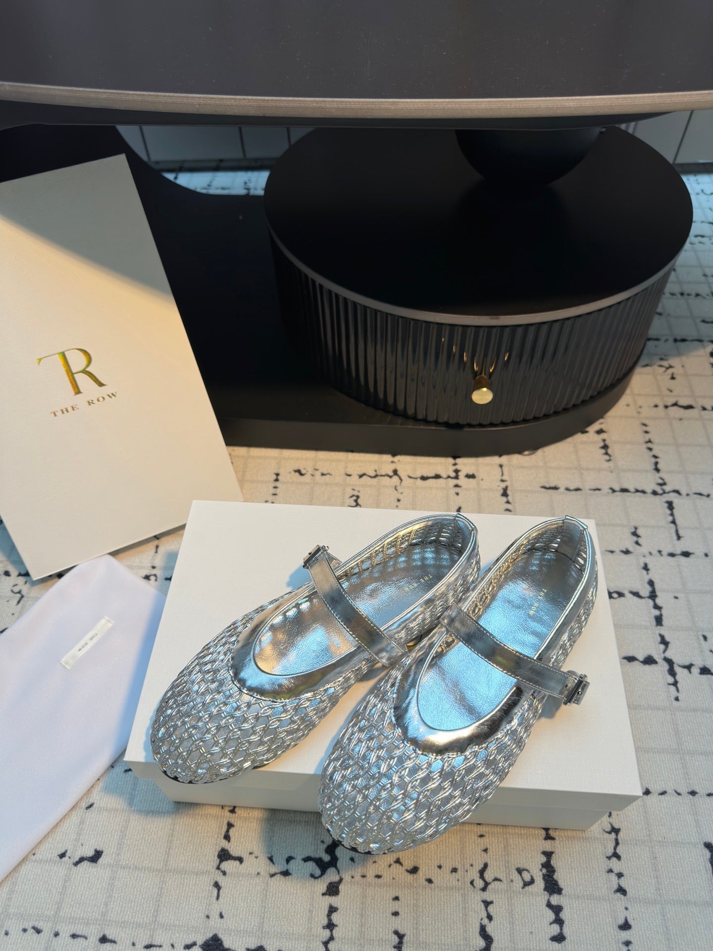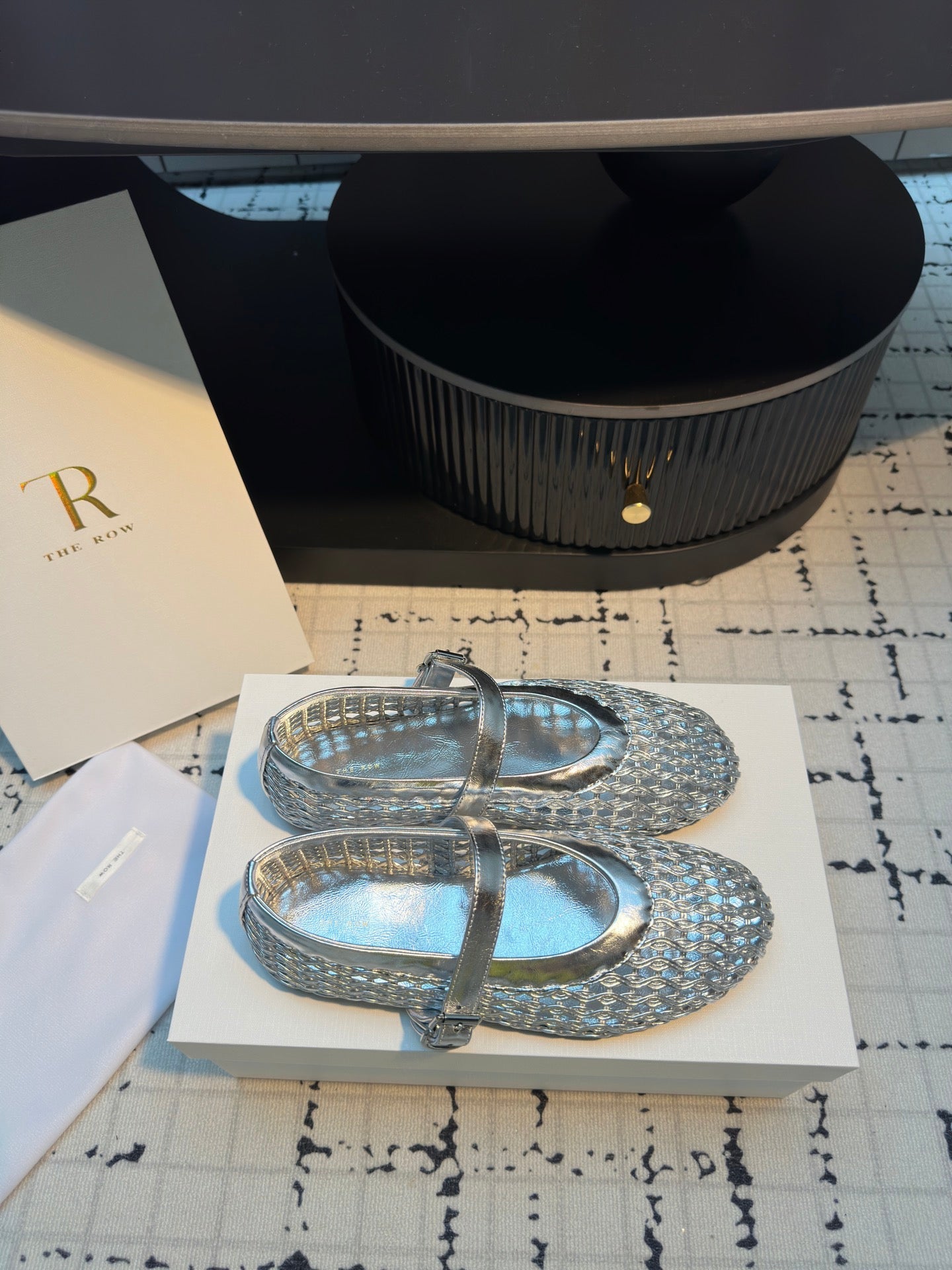 The Row Mary Jane Flat Silver Metallic Mesh Cowhide 334497