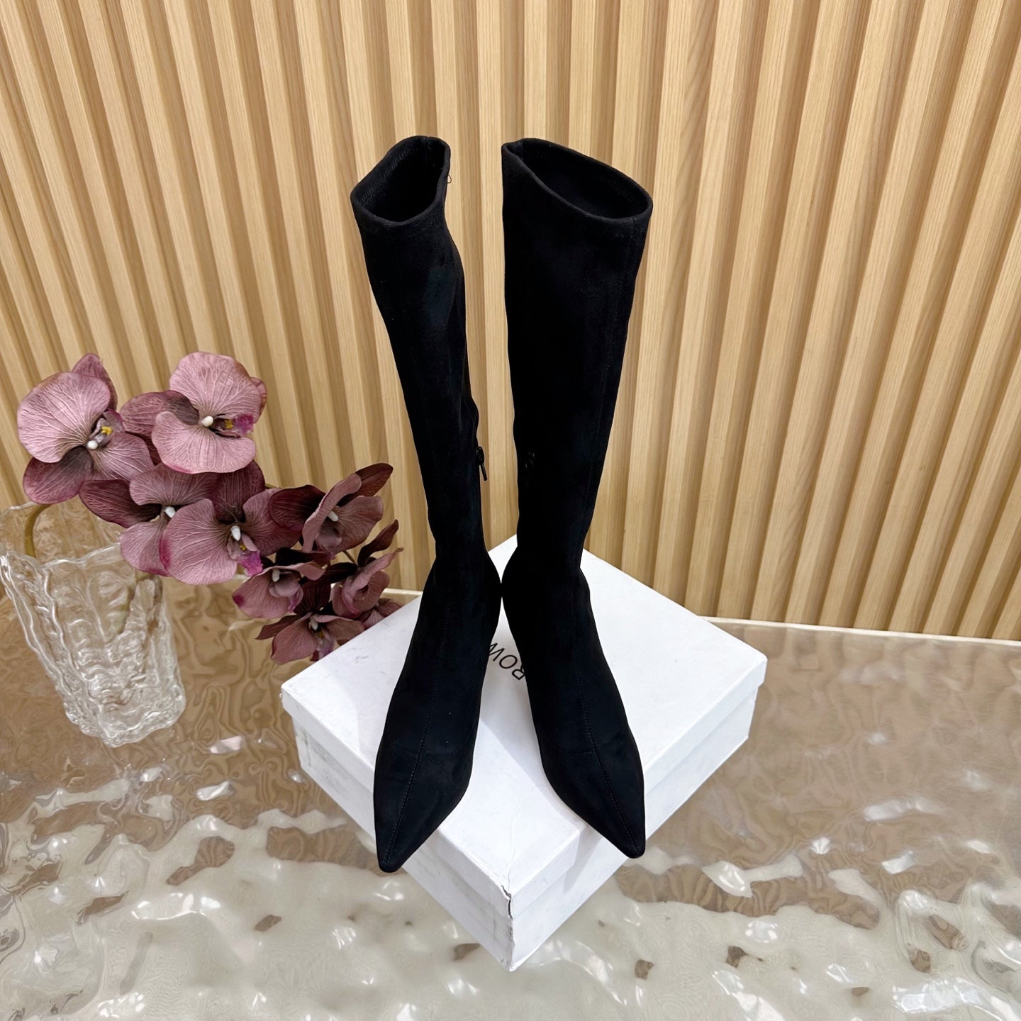 The Row Pointed-toe Knee-high Boots 35mm Black Suede 436639