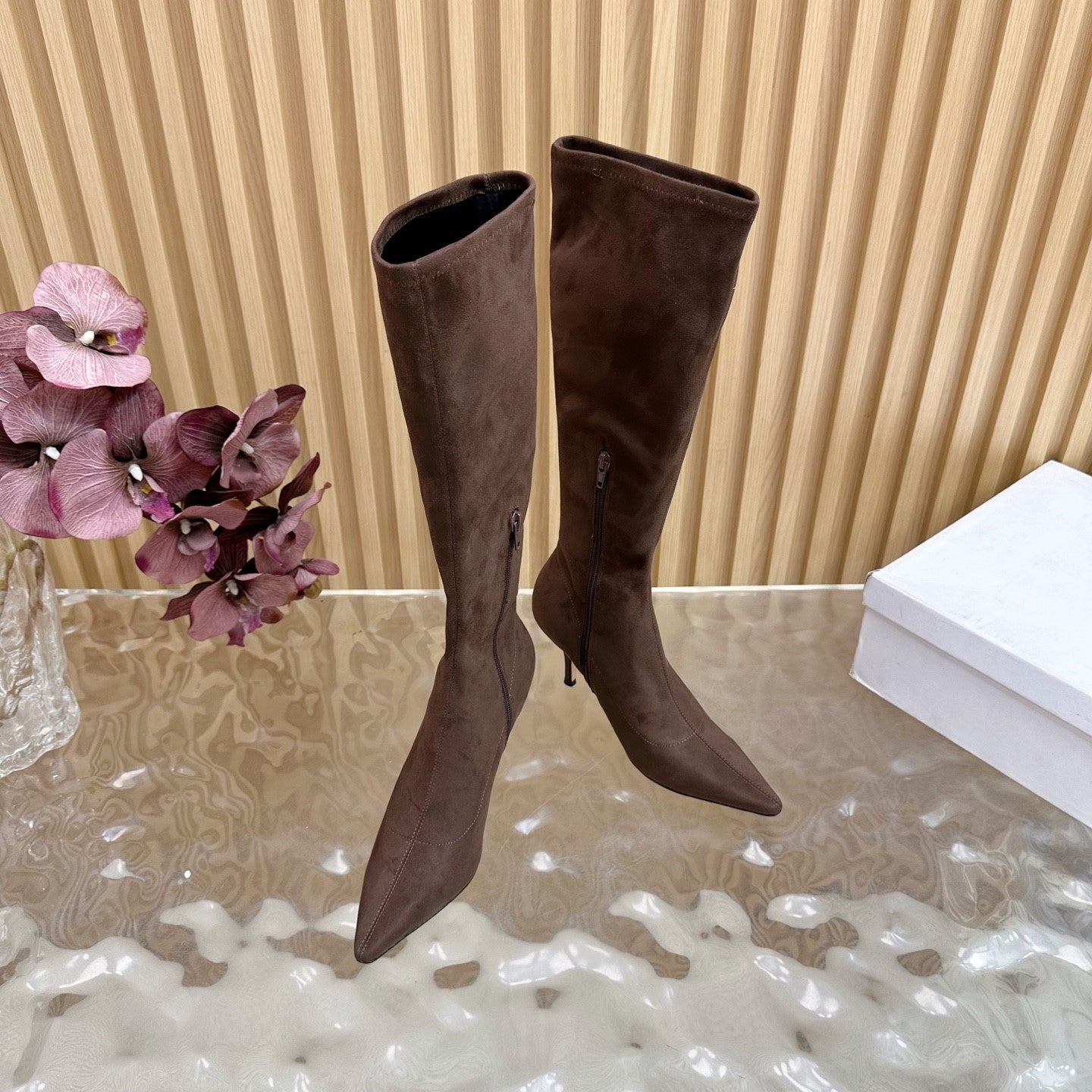 The Row Pointed-toe Knee-high Boots 35mm Dark Brown Suede 436640