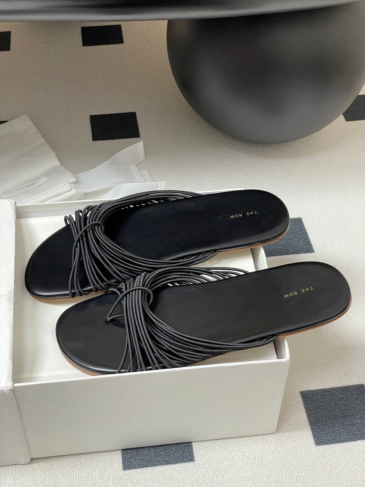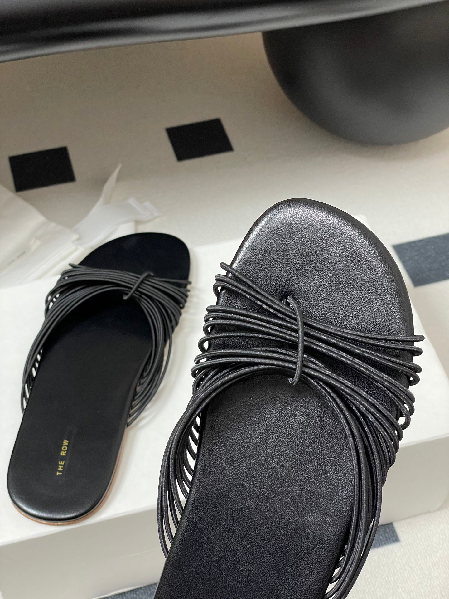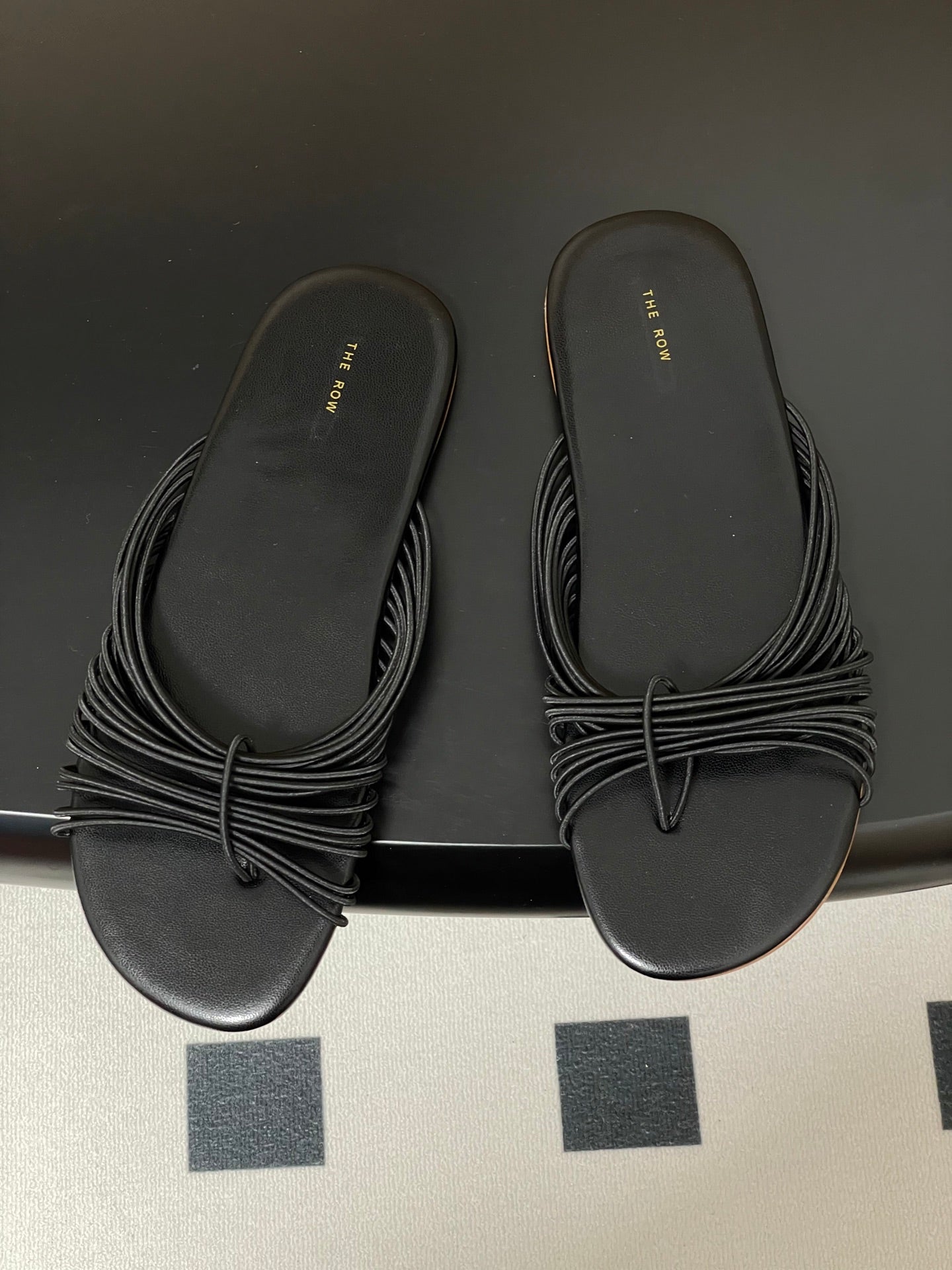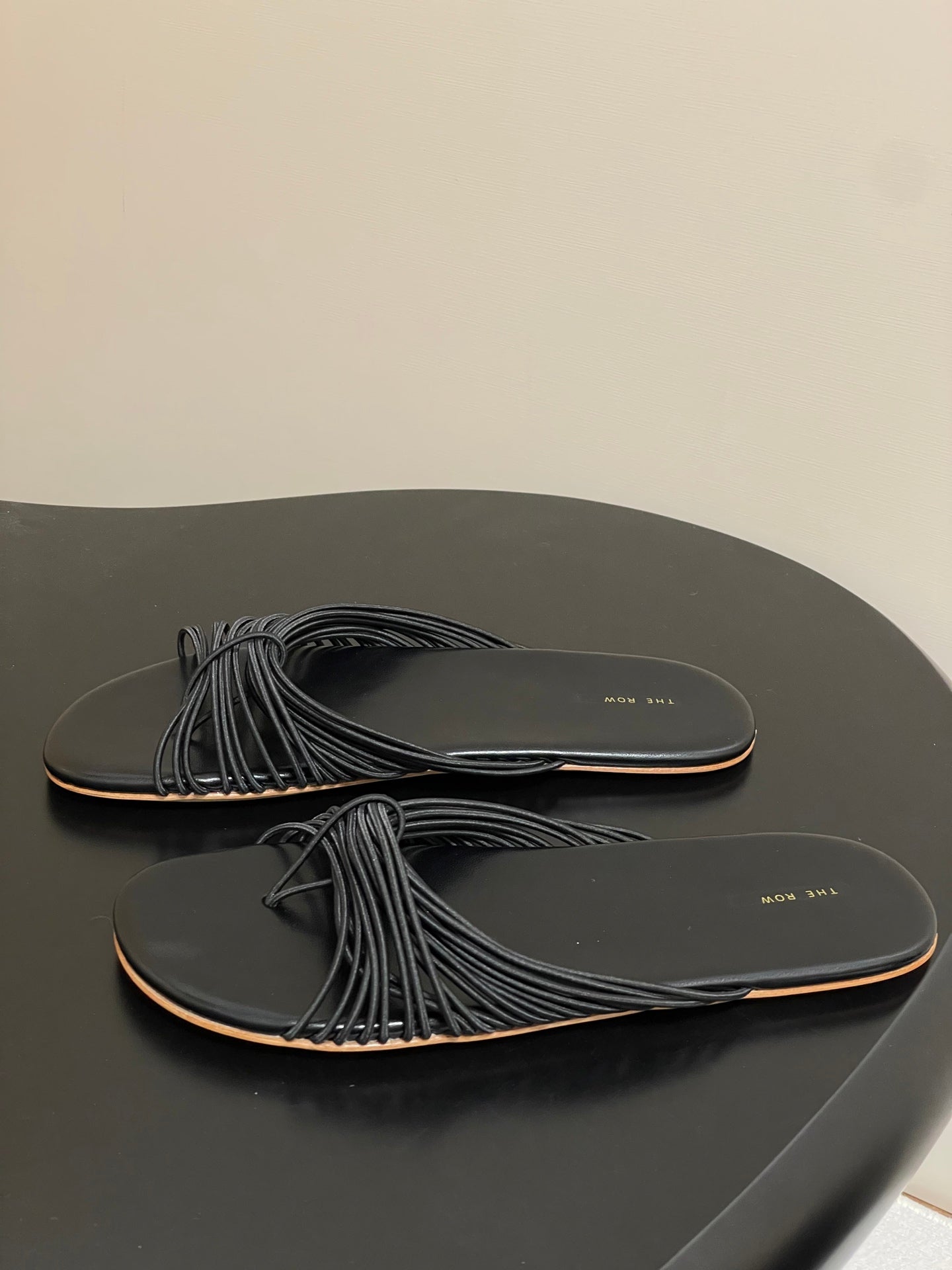 The Row Sara Slide Sandal In Black Elastic And Leather 345205