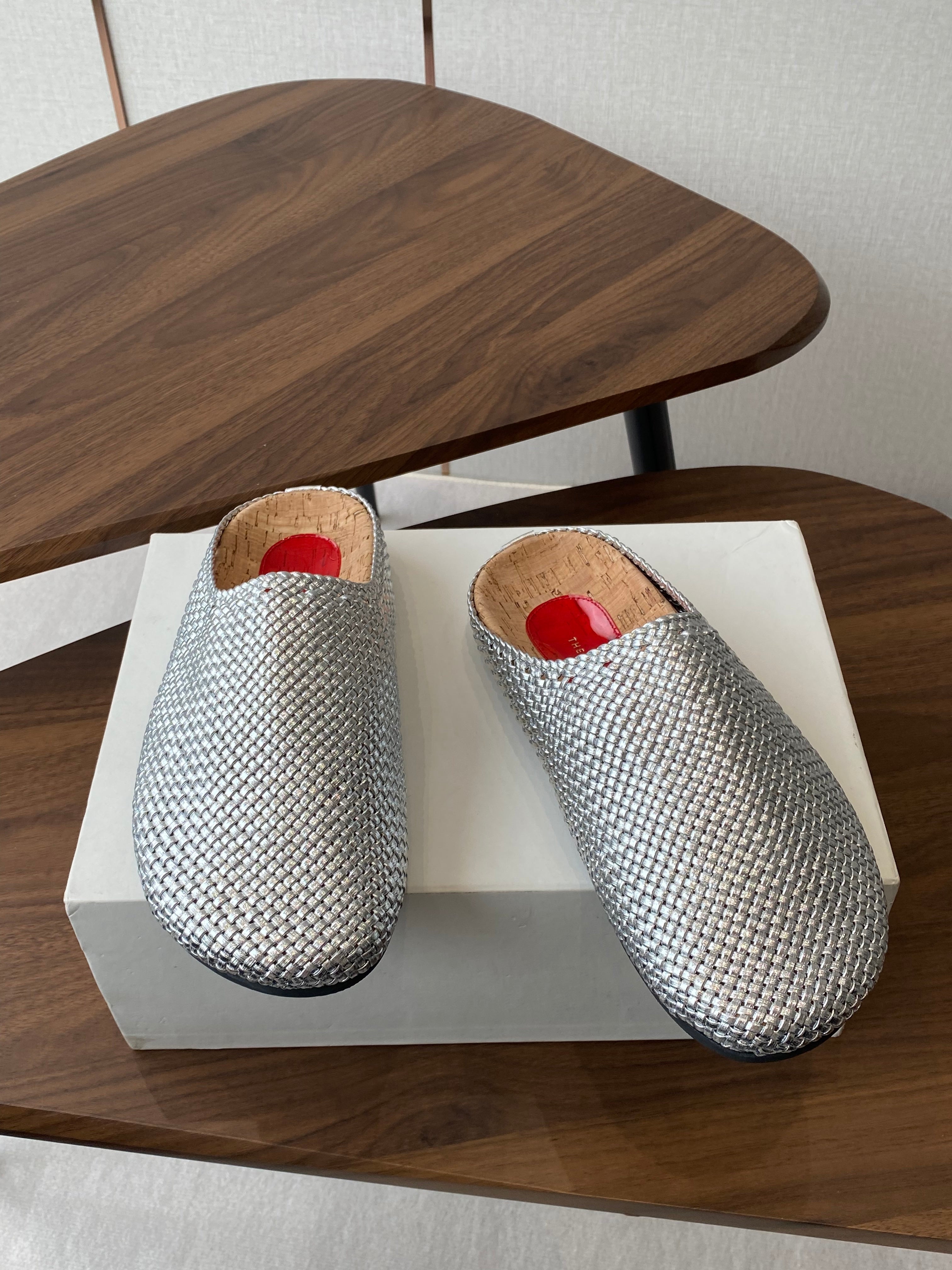 The Row Slip-on Mule Metallic Silver Woven Cowhide 334529