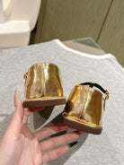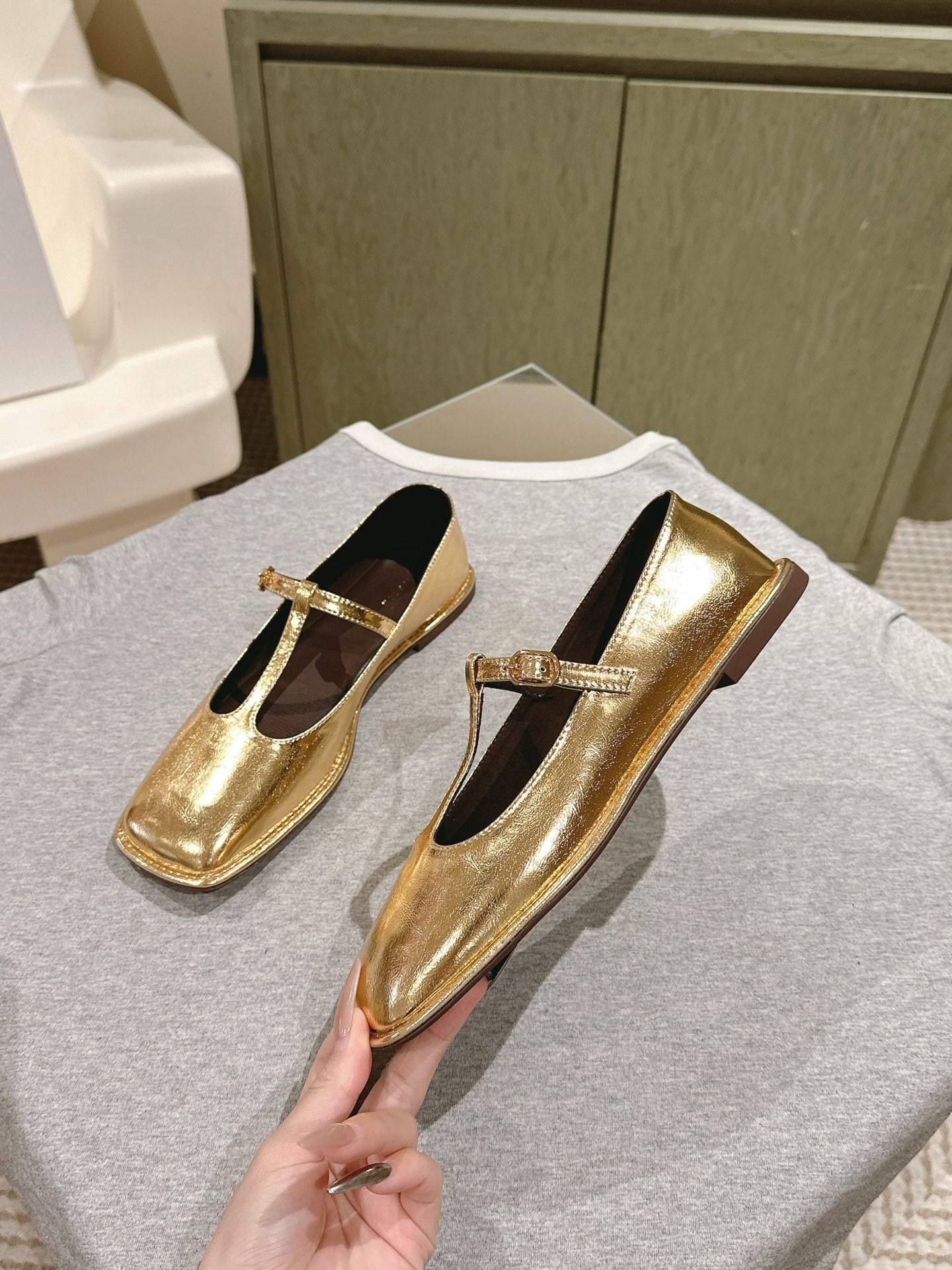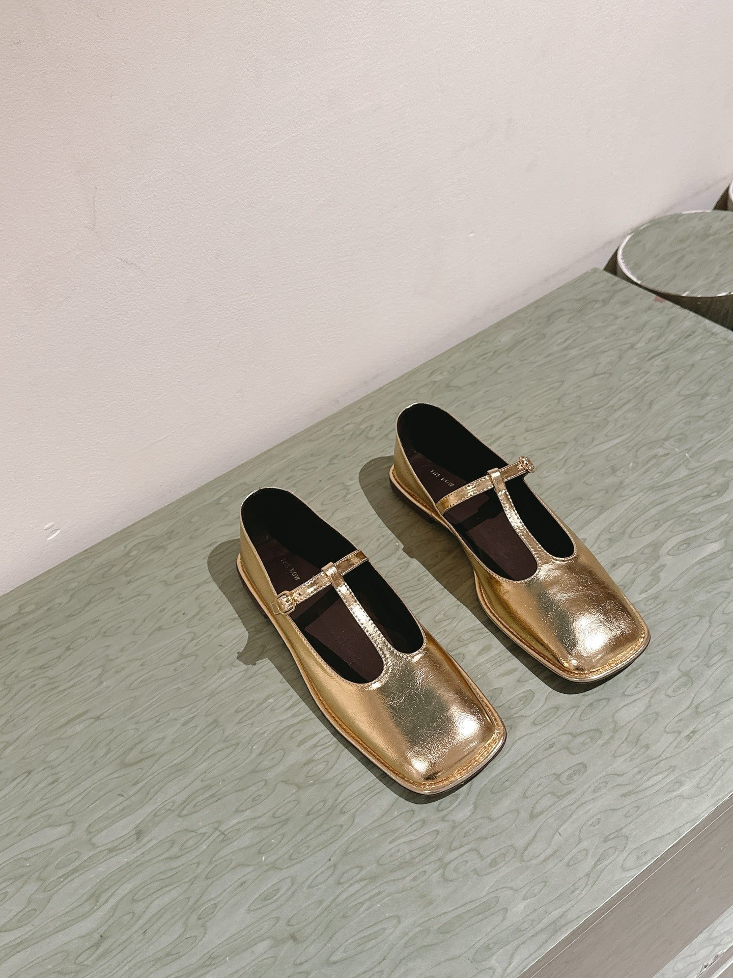 The Row Square T-Strap Flat Gold Metallic Leather 451286