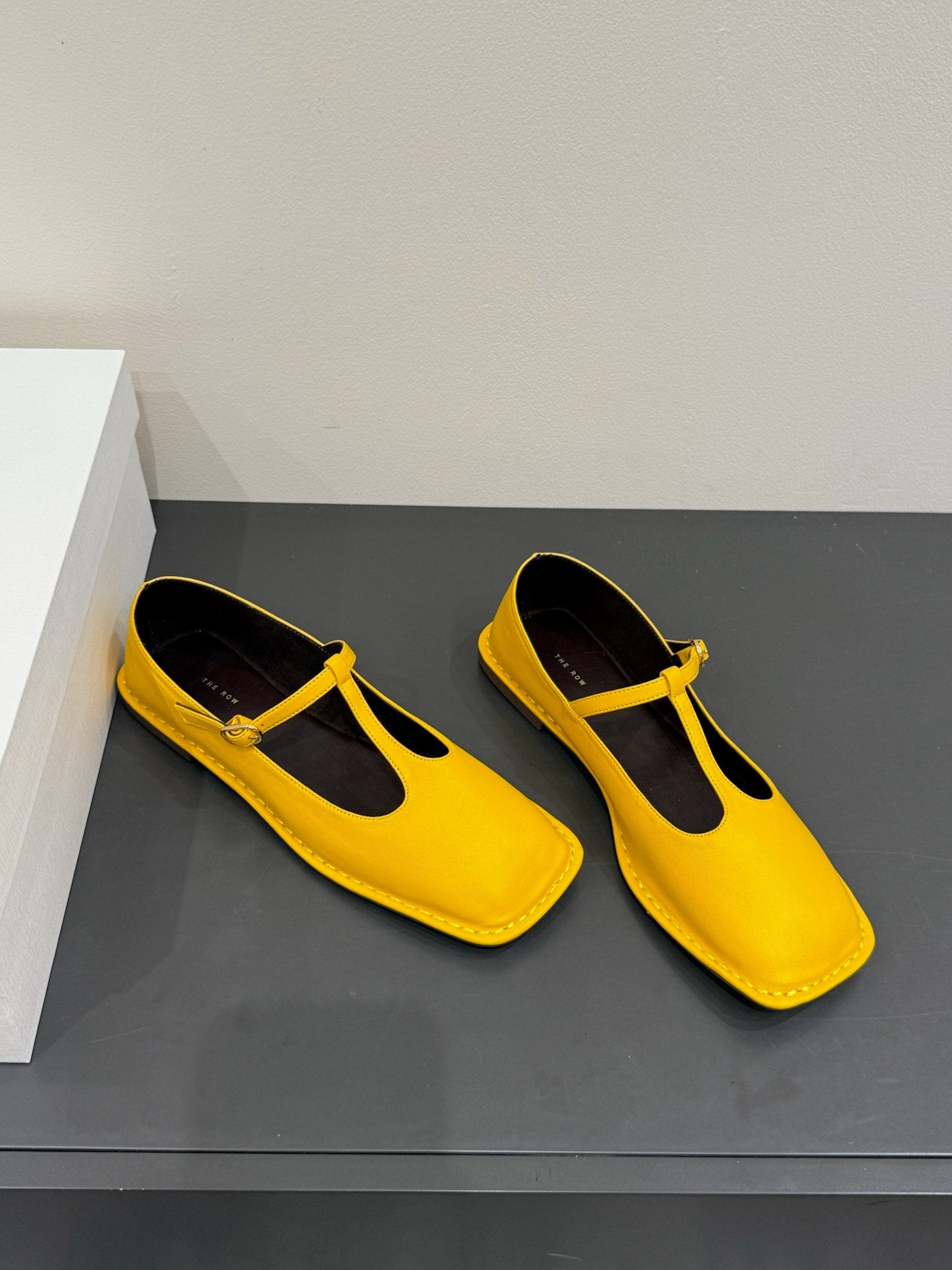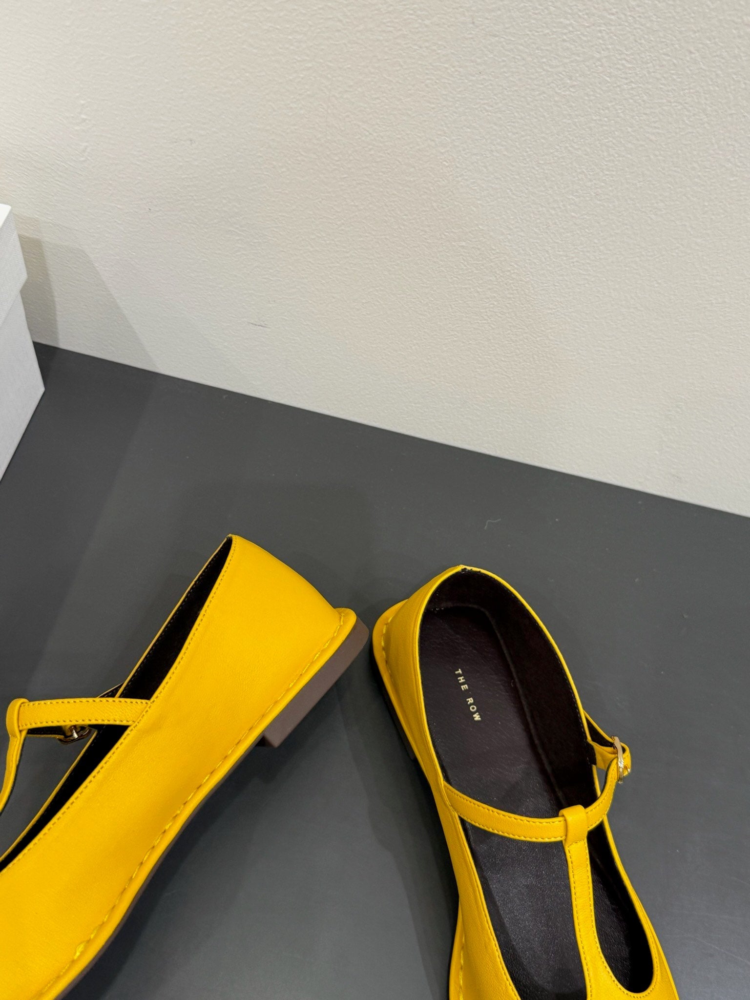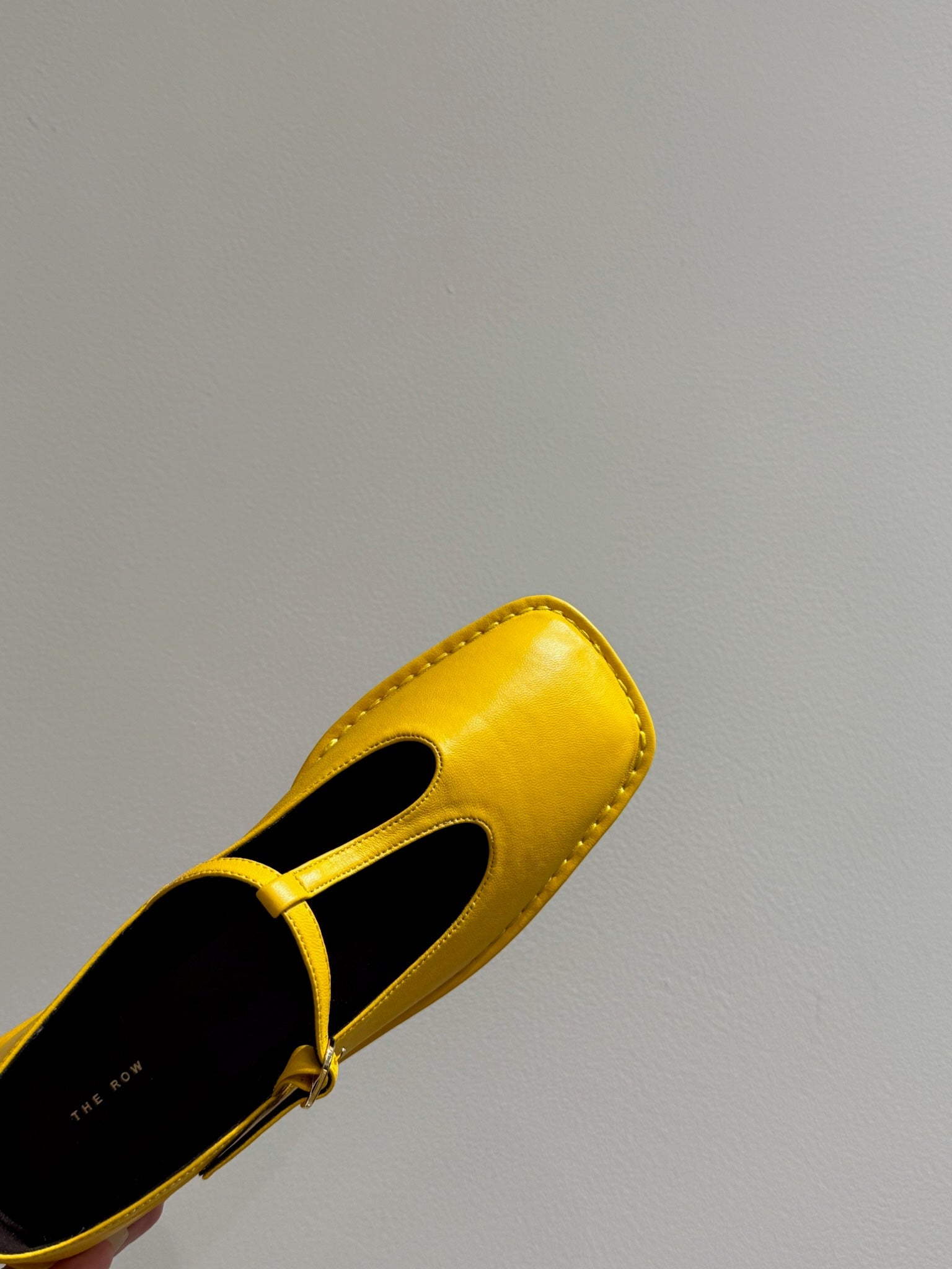 The Row Square T-Strap Flat Yellow Sheepskin 337497
