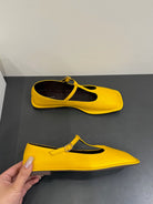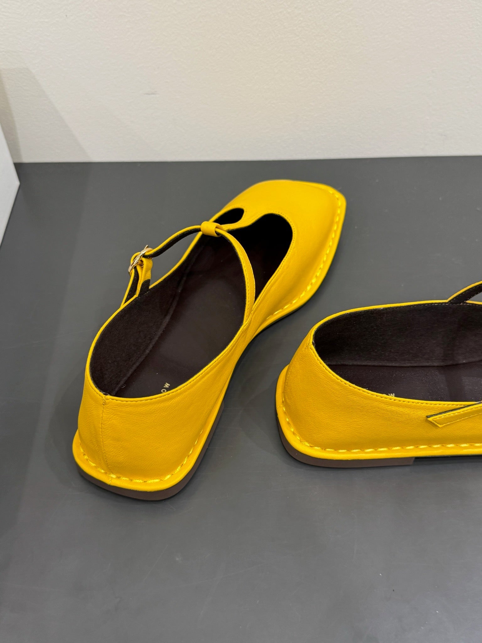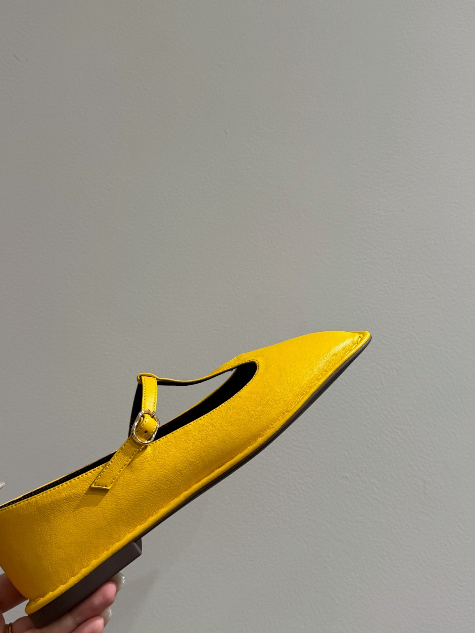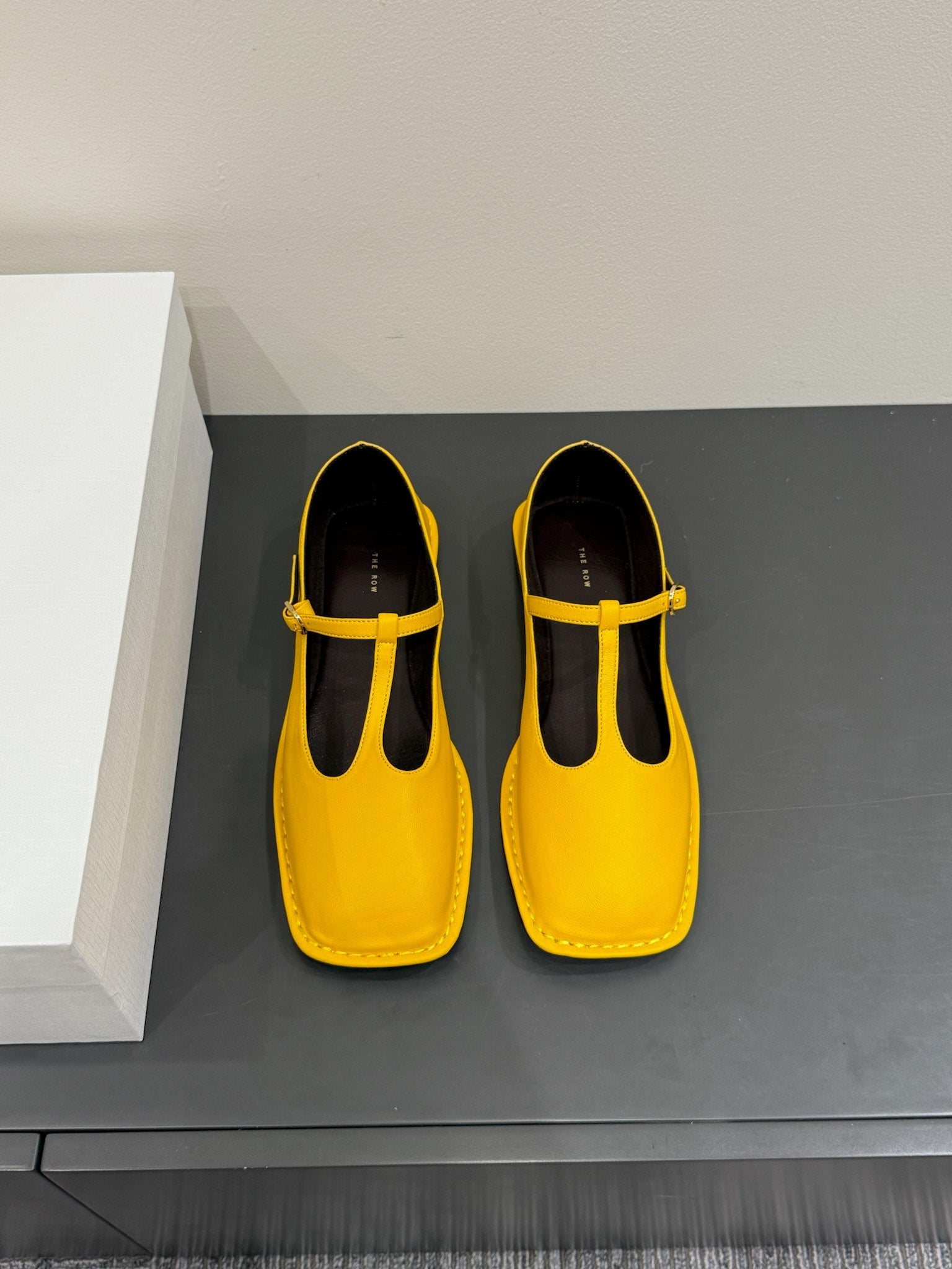 The Row Square T-Strap Flat Yellow Sheepskin 337497