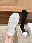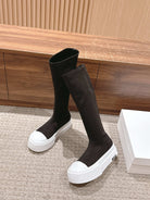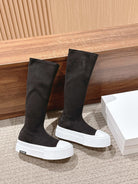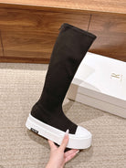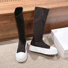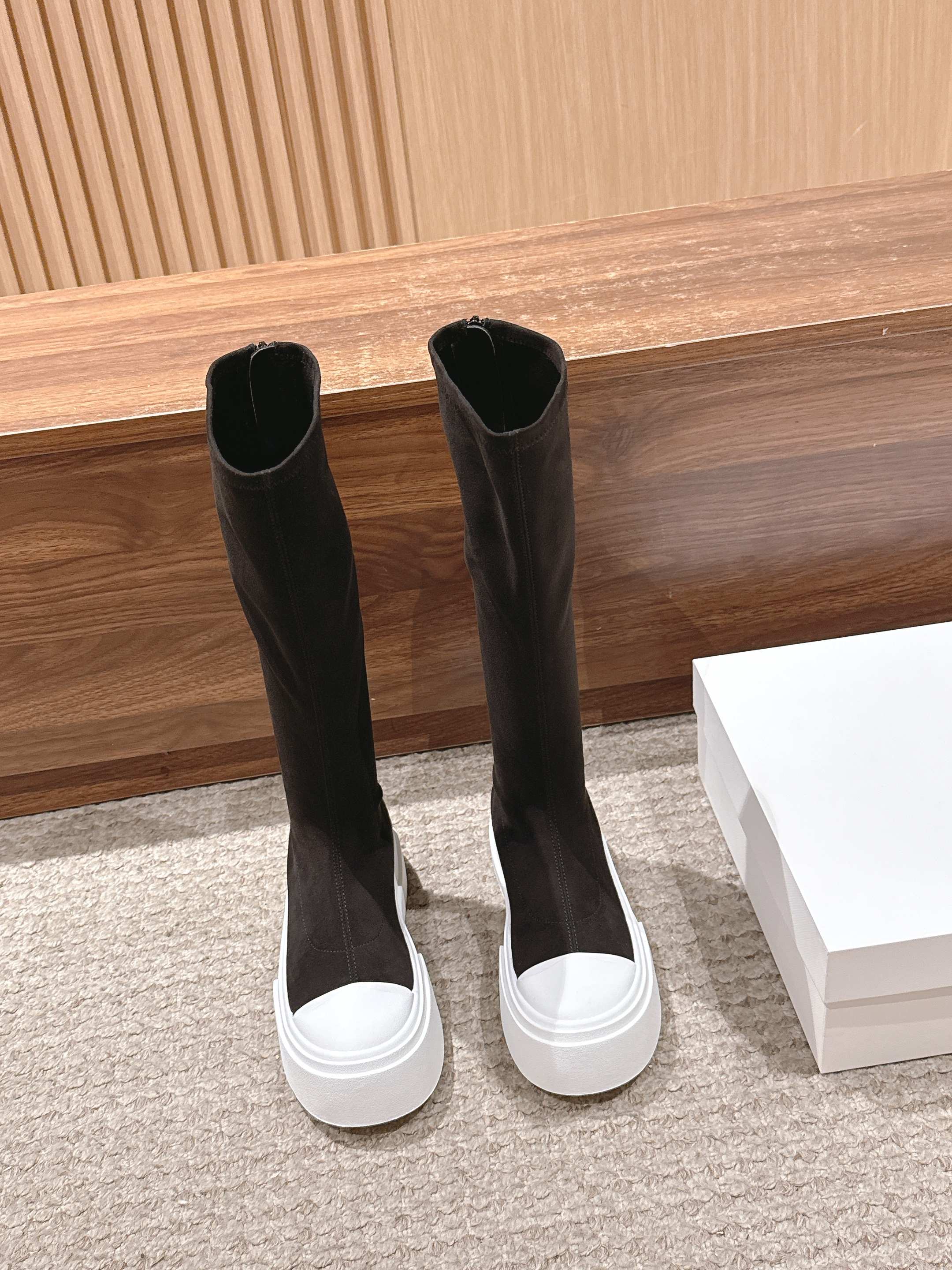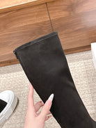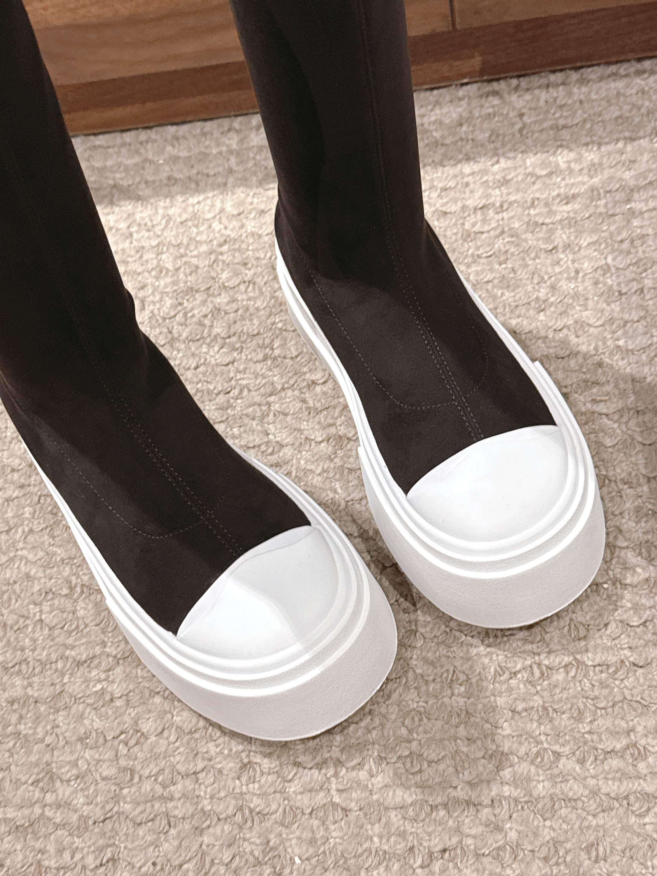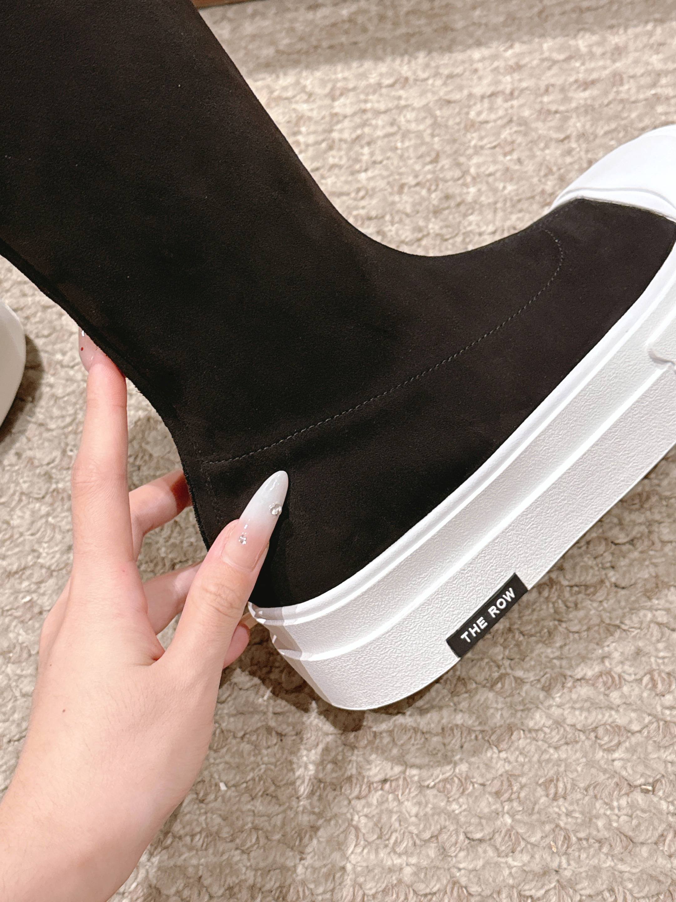 The Row Thick-soled Classic Knee-high Boots Black White Suede 444173