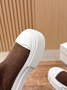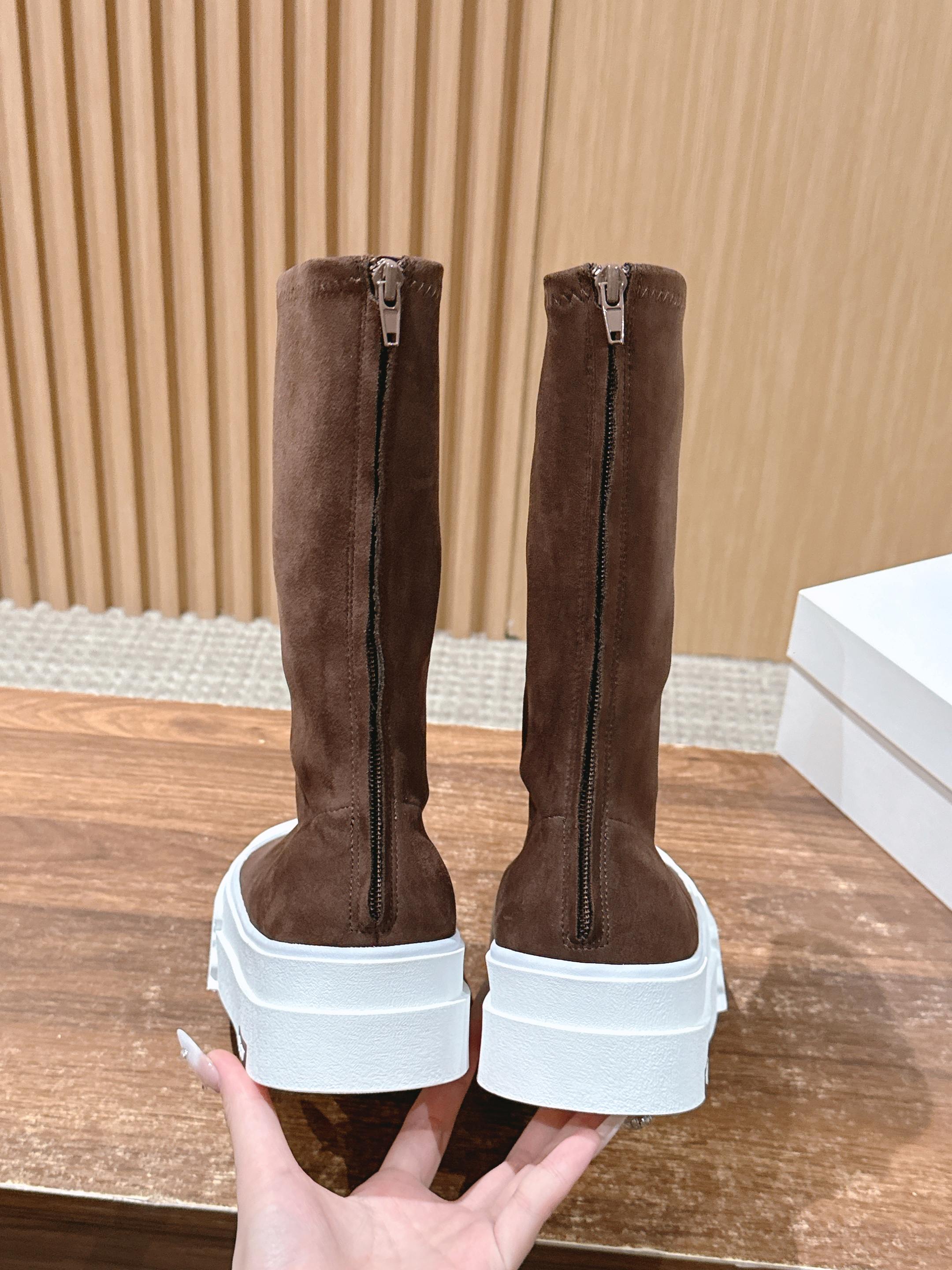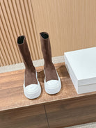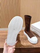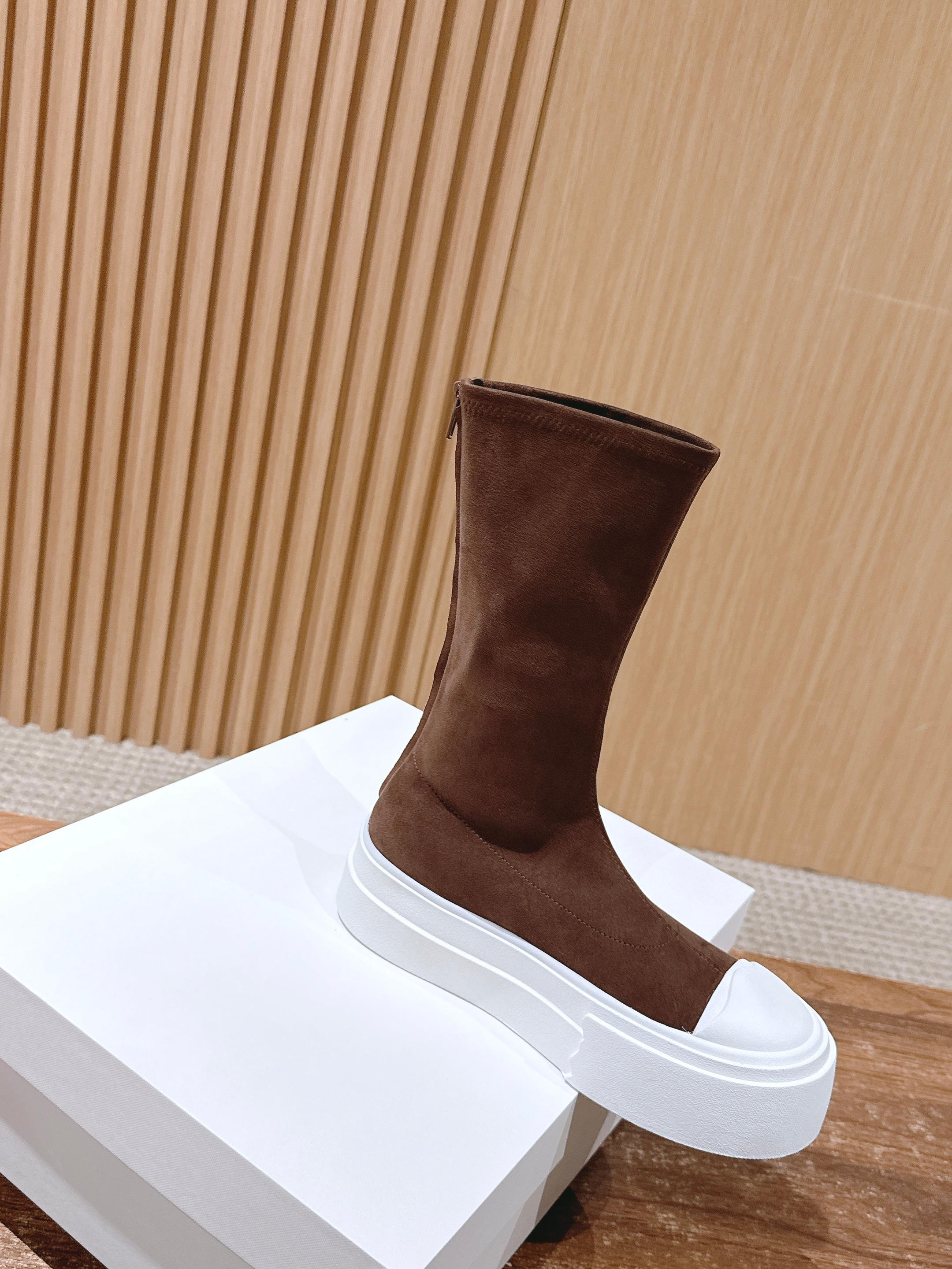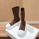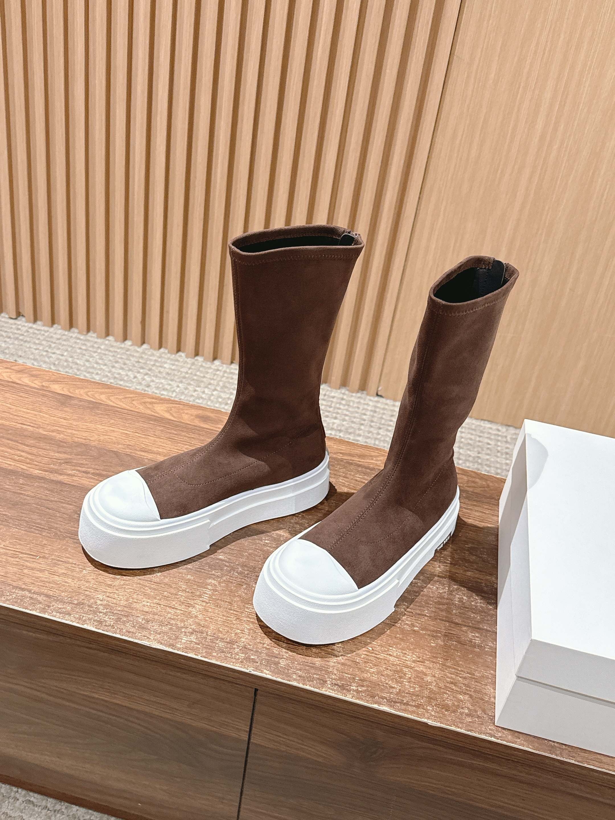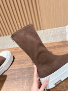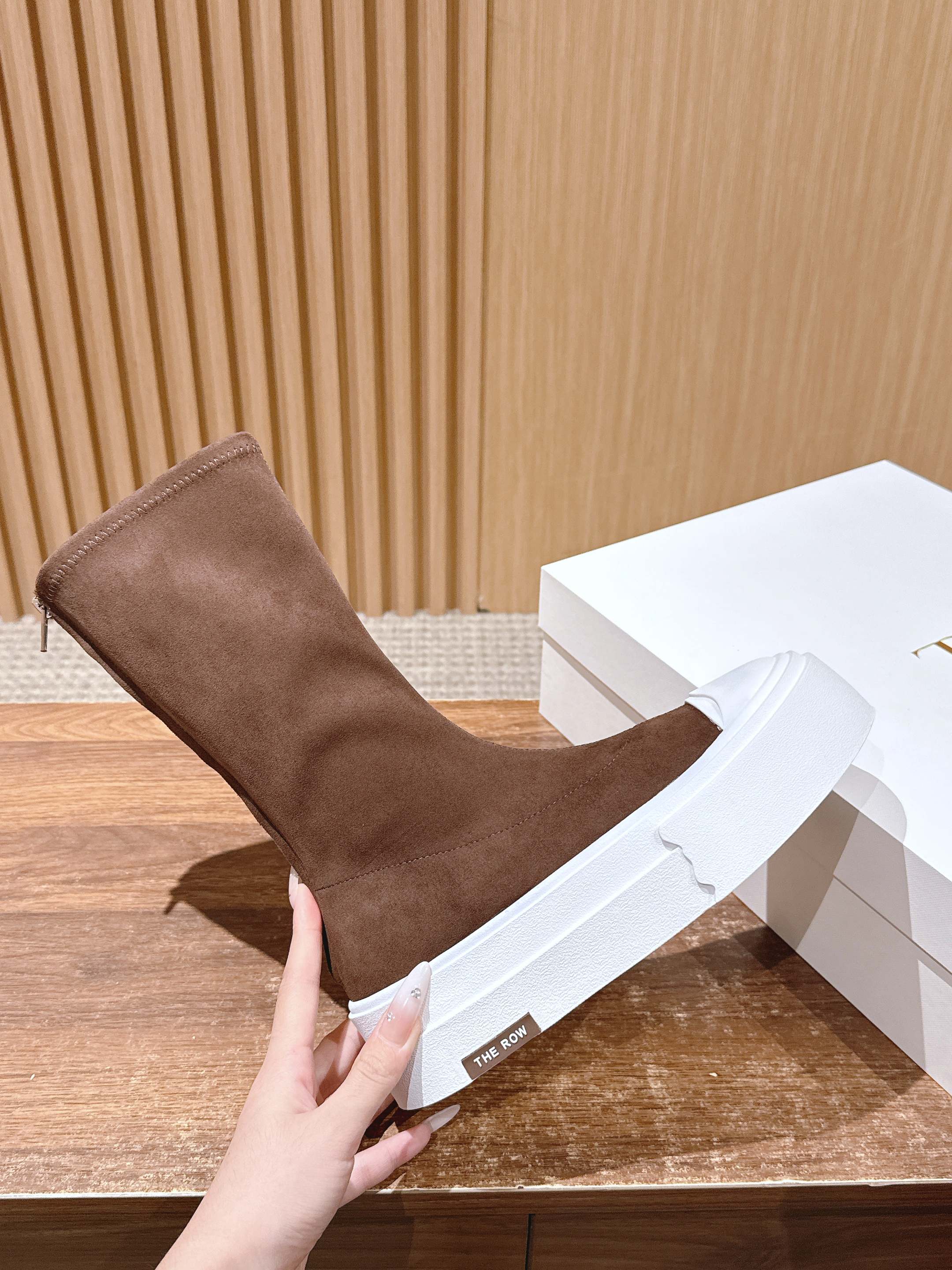 The Row Thick-soled Classic Round Toe Stretch Boots Brown White Suede 444175