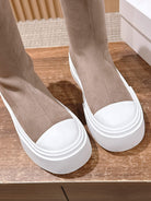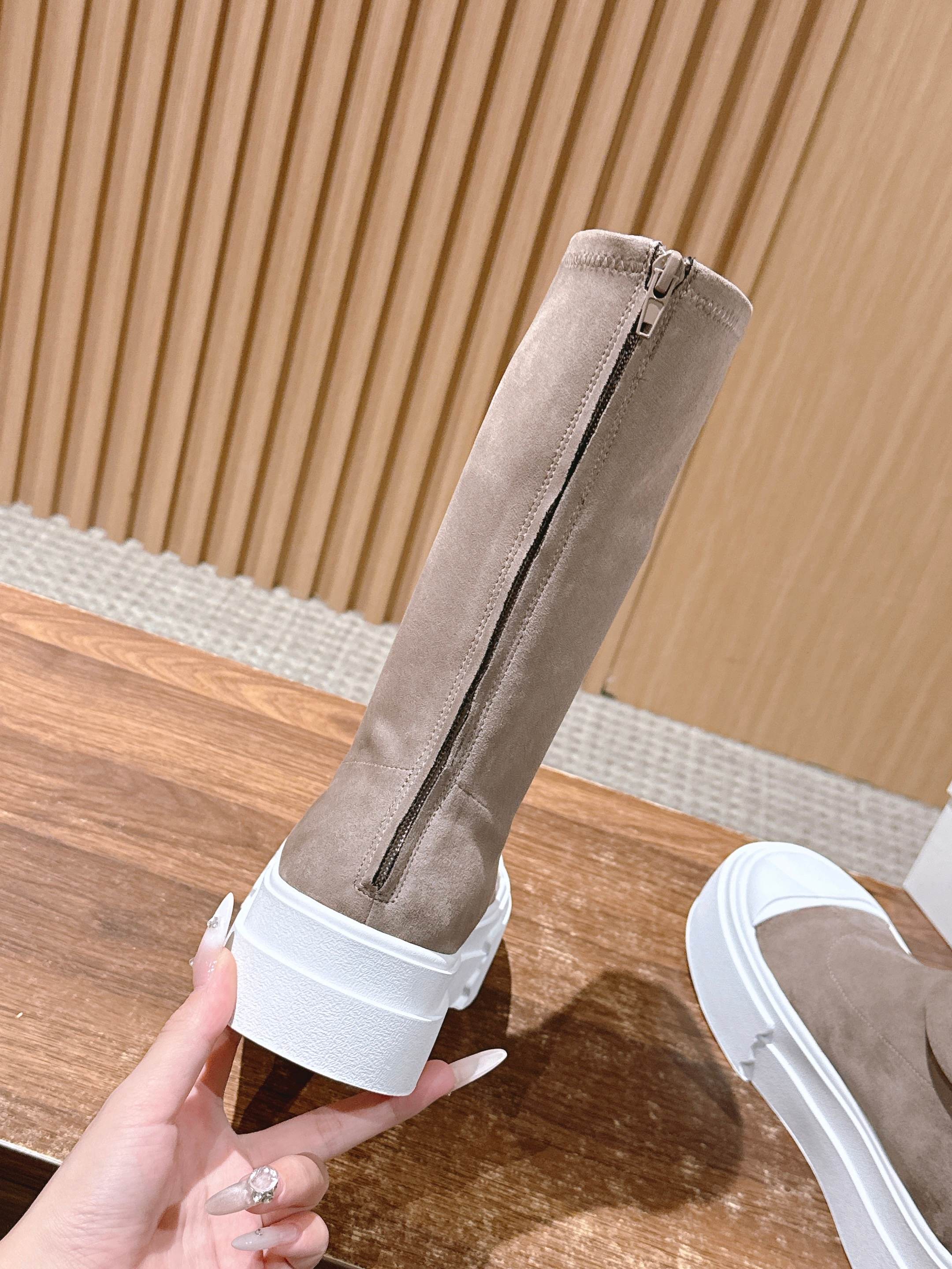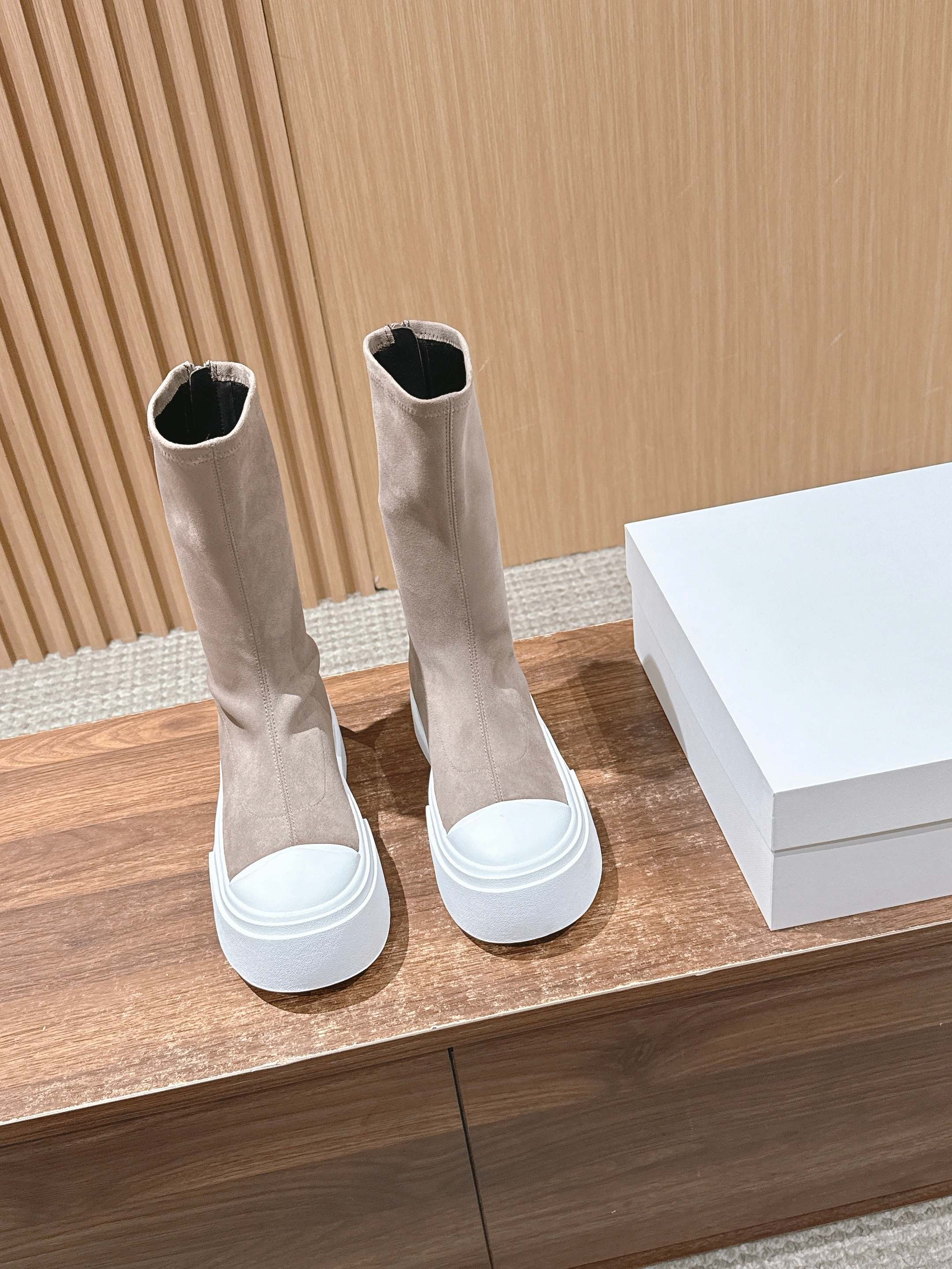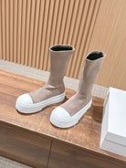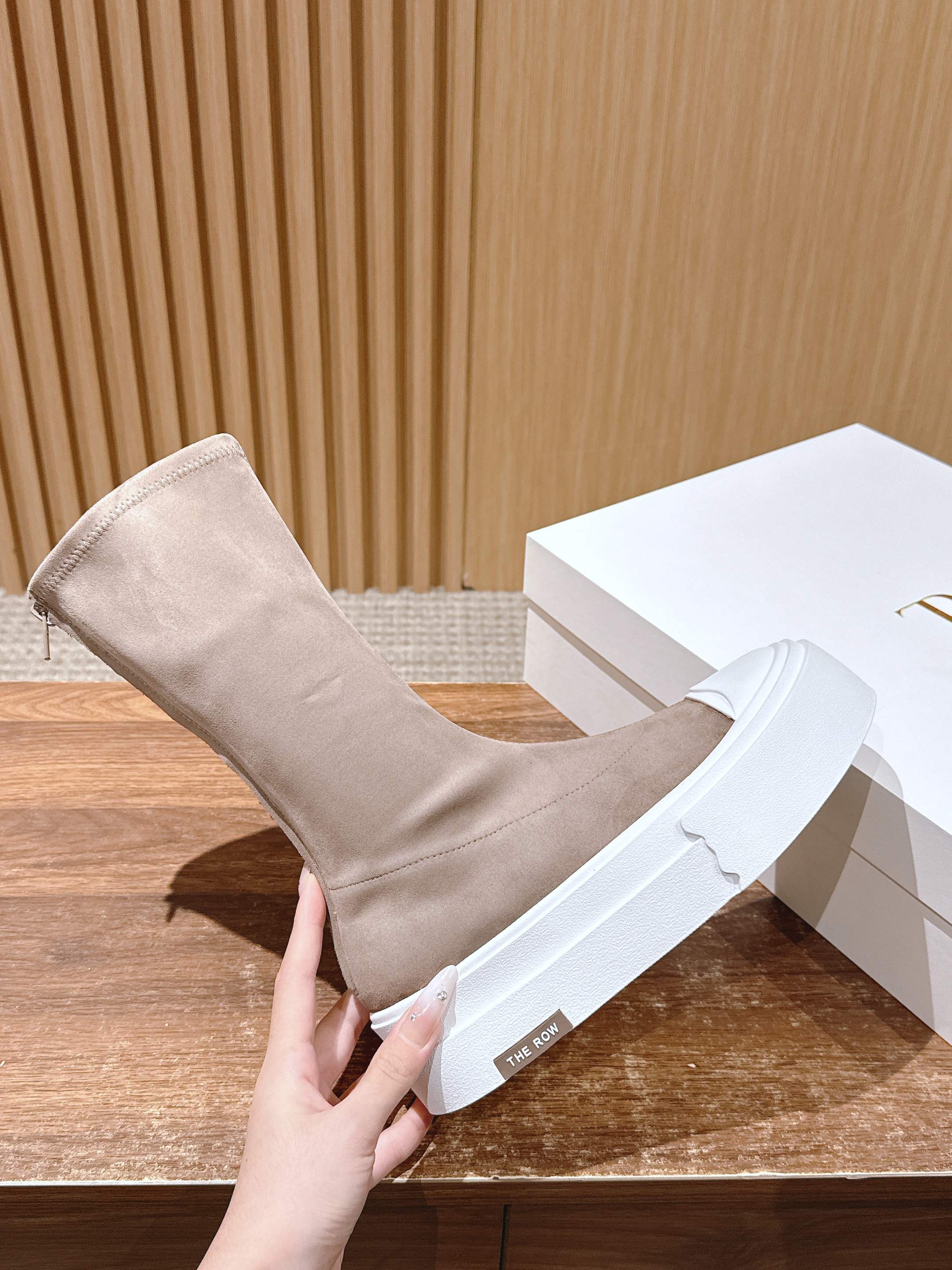 The Row Thick-soled Classic Round Toe Stretch Boots Light Brown White Suede 444174