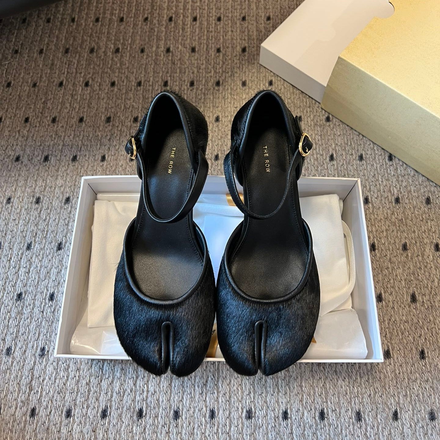 The Row Split-Toe Mary Jane 50mm Black Sheepskin And Horse Hair 333602
