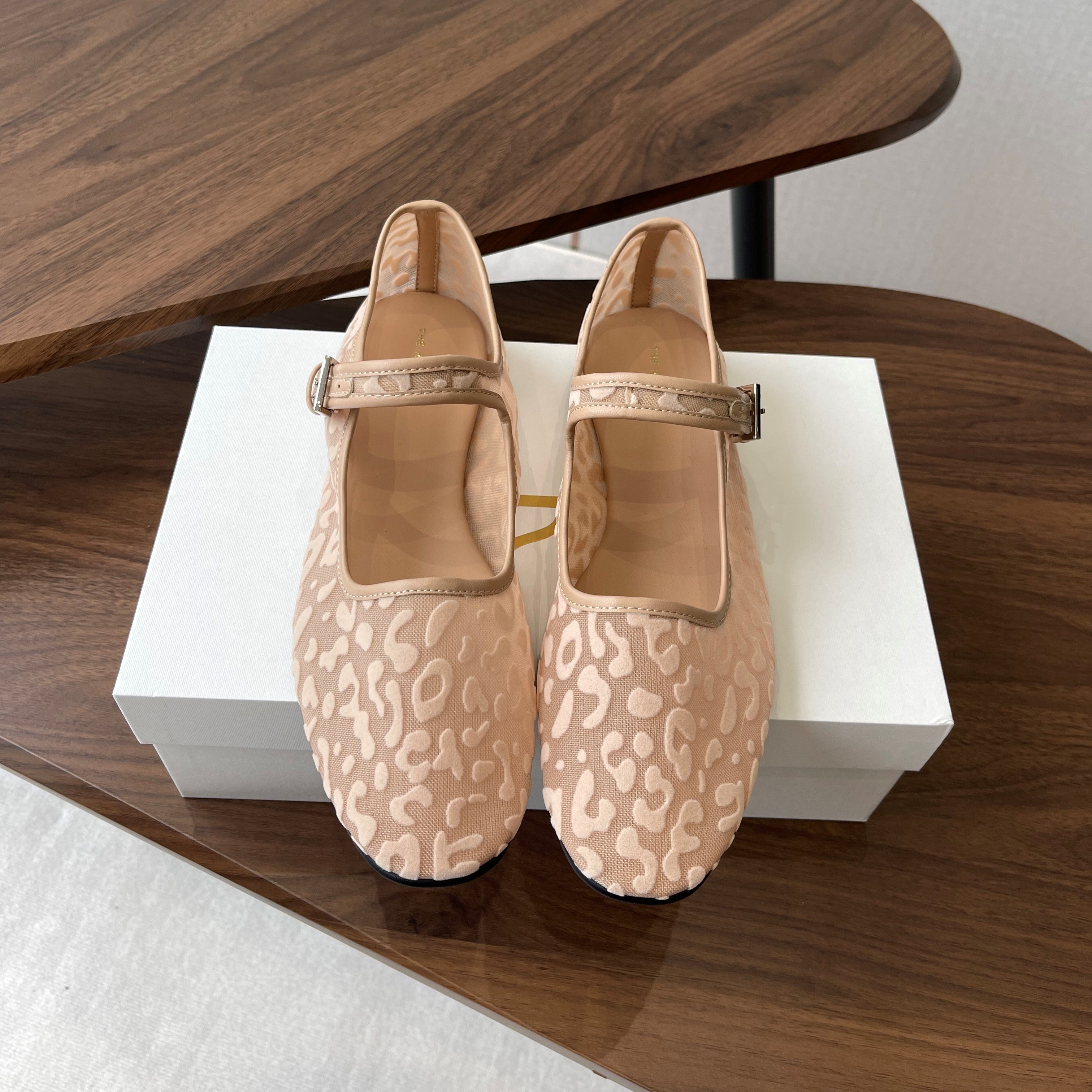 The Row Mary Jane Nude Beige Mesh And Sheepskin 330803