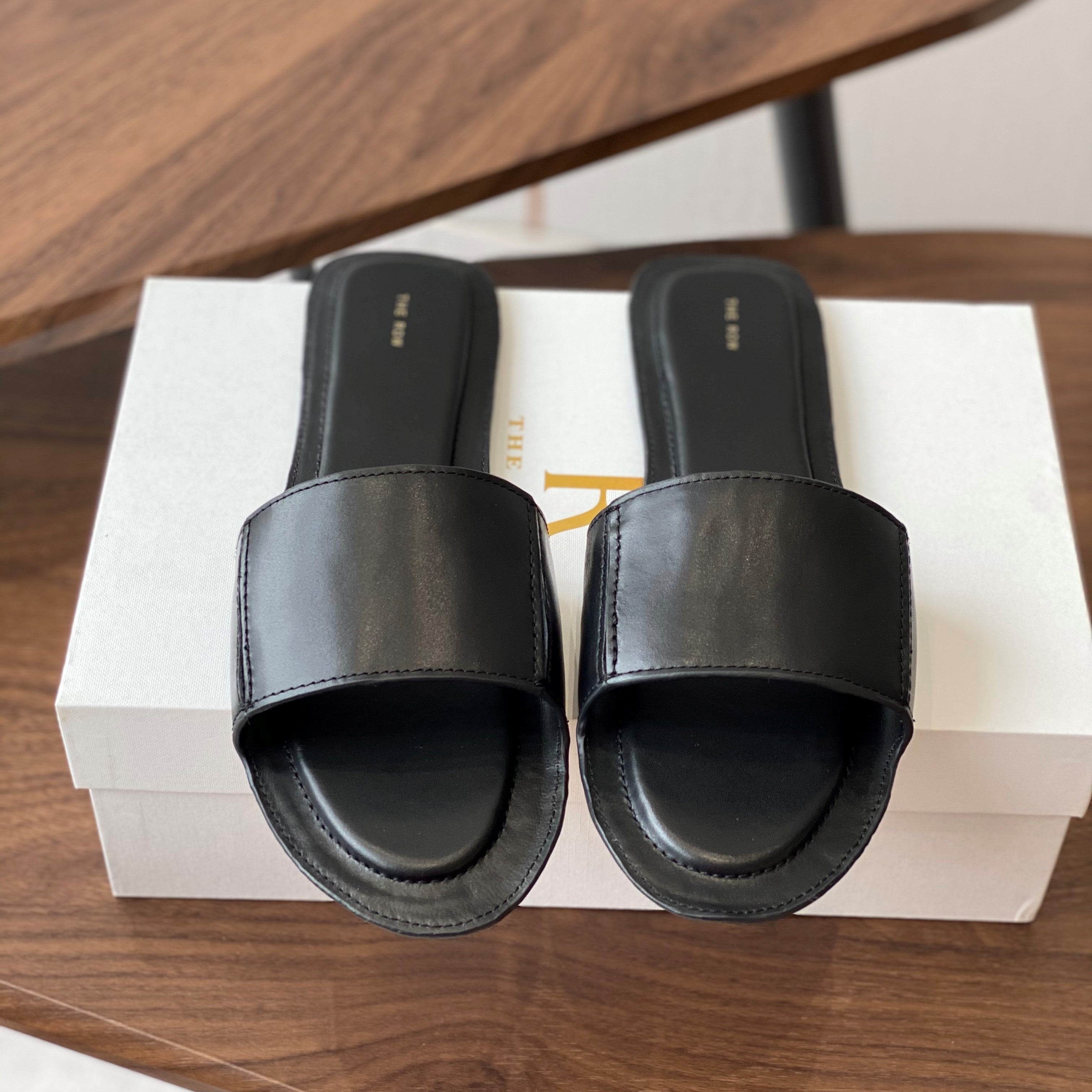 The Row Sara Strap Slide Sandal Black Cowhide 330806