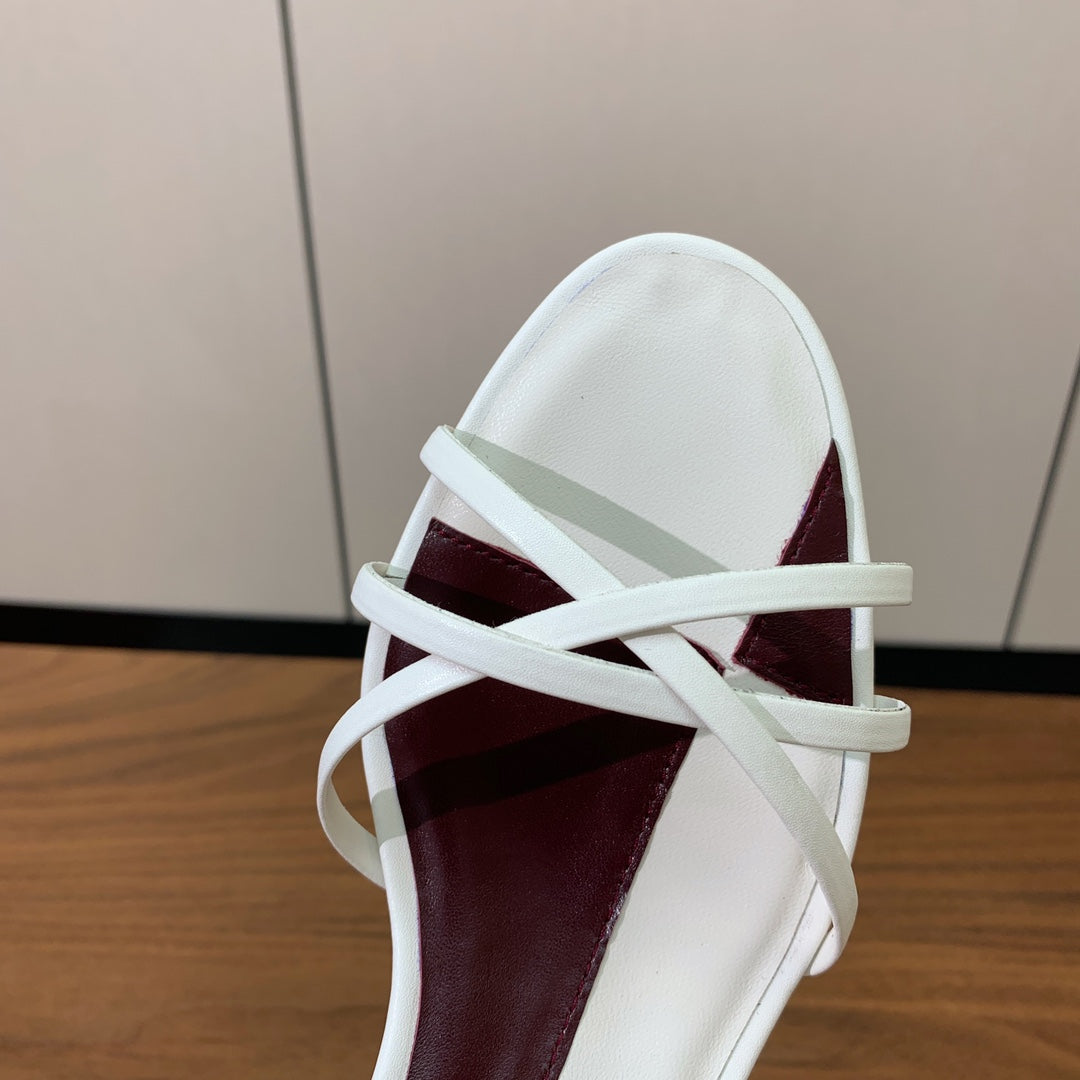 The Row Heel Sandals 30mm White Mix Burgundy Sheepskin 325422