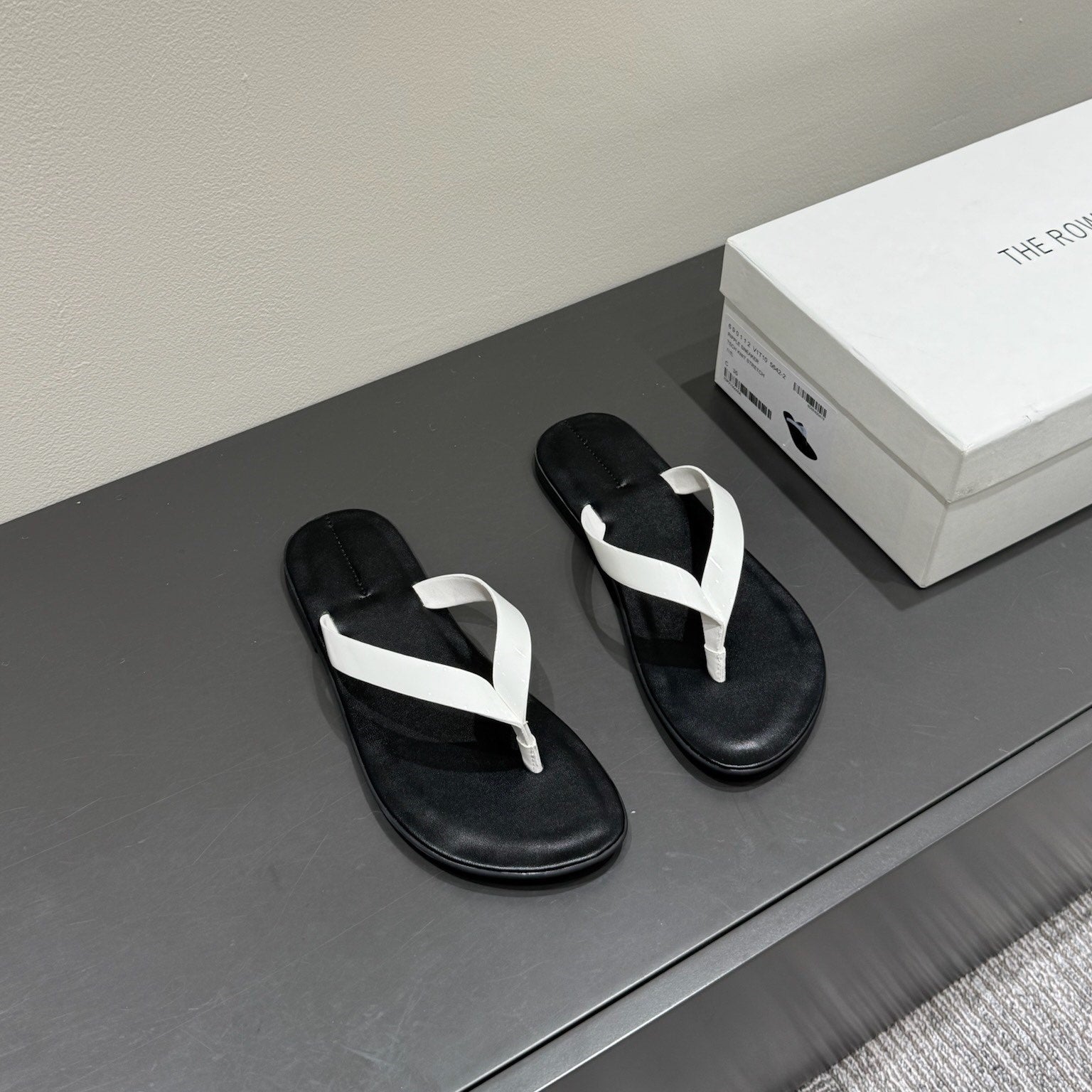 The Row Thong Sandal Black And White Patent leather 337445
